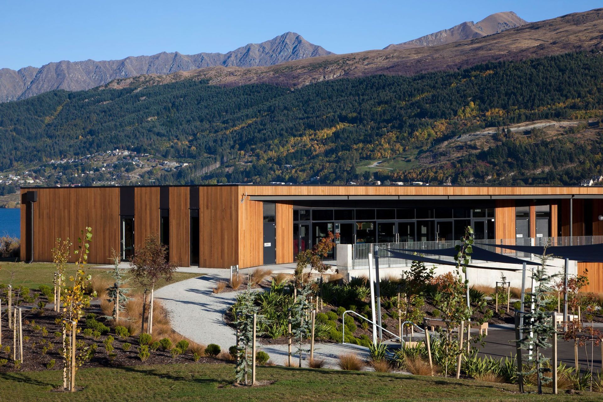ArchiPro Project Summary - Award-winning primary school designed by Babbage Architects, featuring an adaptable environment that embraces core educational values, set against the stunning backdrop of Lake Wakatipu and the Remarkables.