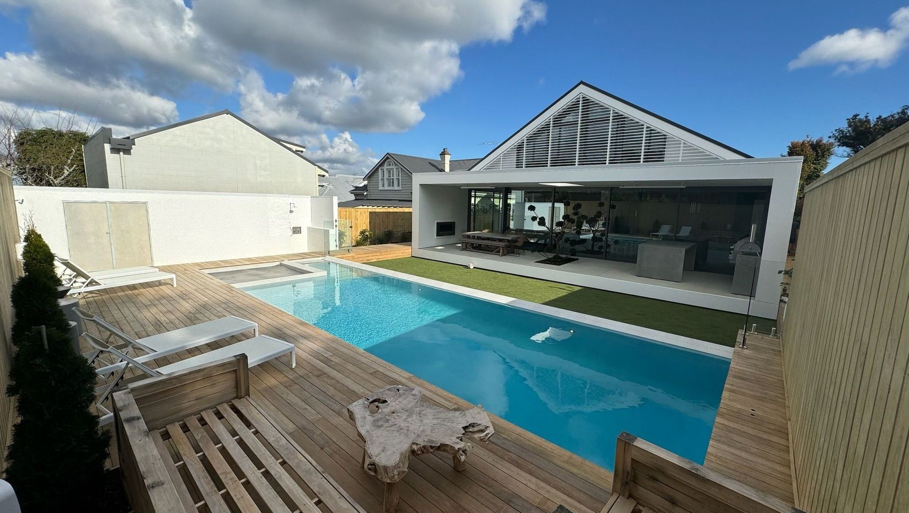 ArchiPro Project Summary - Luxurious concrete pool and spa combination in Remuera, featuring modern design, advanced heating and filtration systems, and beautifully landscaped surroundings for an enhanced leisure experience.