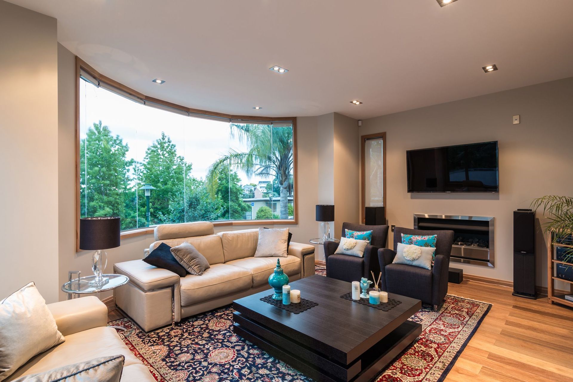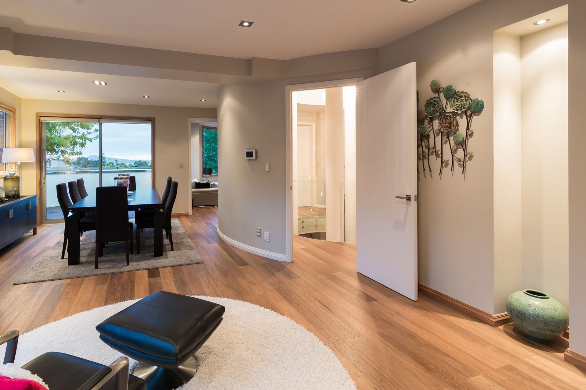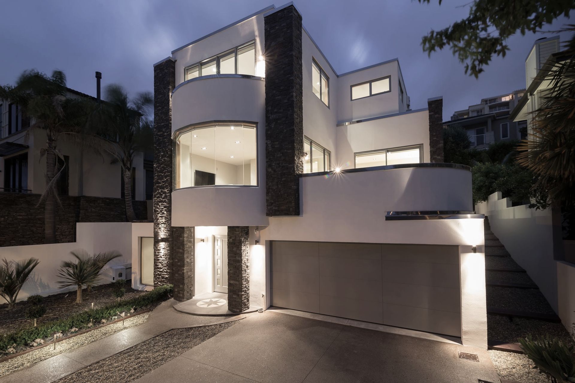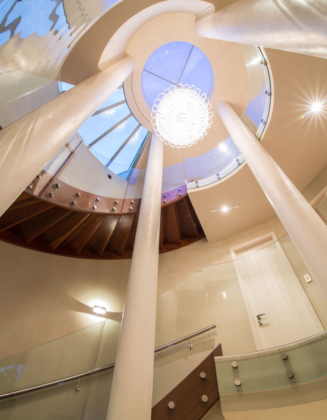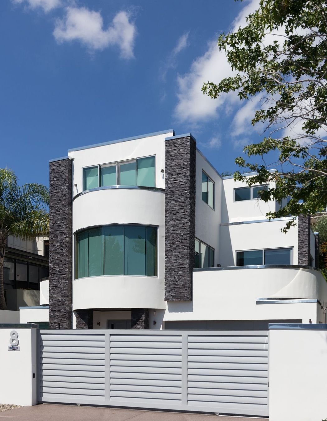 ArchiPro Project Summary - A stunning residence featuring a grand sweeping staircase, strategically designed to maximize views of the Waitemata Harbour, with seamless flow between interior spaces and outdoor living areas.