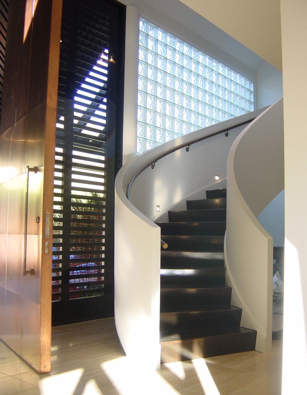 ArchiPro Project Summary - A luxurious tropical-inspired residence in Remuera, featuring a harmonious blend of modernist design, rich textures, and exquisite architectural details, including a stunning spiral staircase and a striking wine cellar.