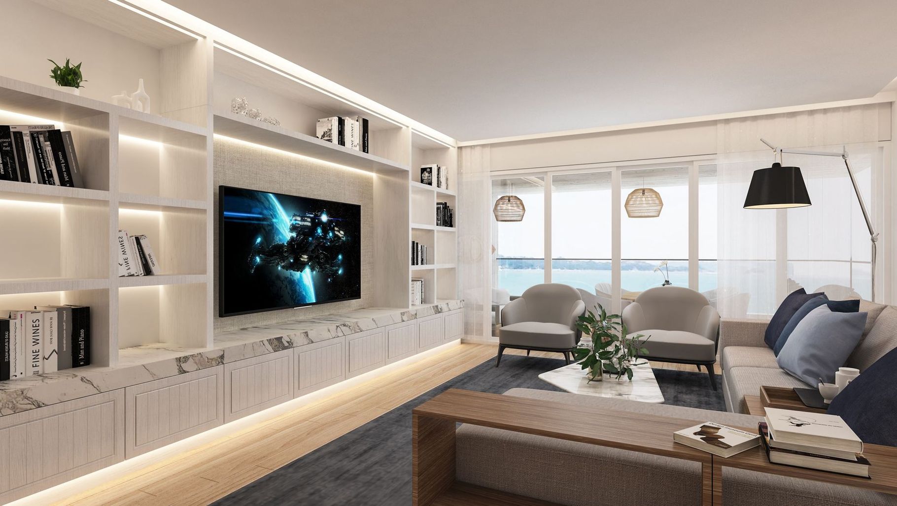 ArchiPro Project Summary - Luxurious 2200 SQ/FT family apartment featuring 3 bedrooms and 2.5 bathrooms, designed with a sophisticated blend of materials and stunning views of Repulse Bay, Hong Kong.