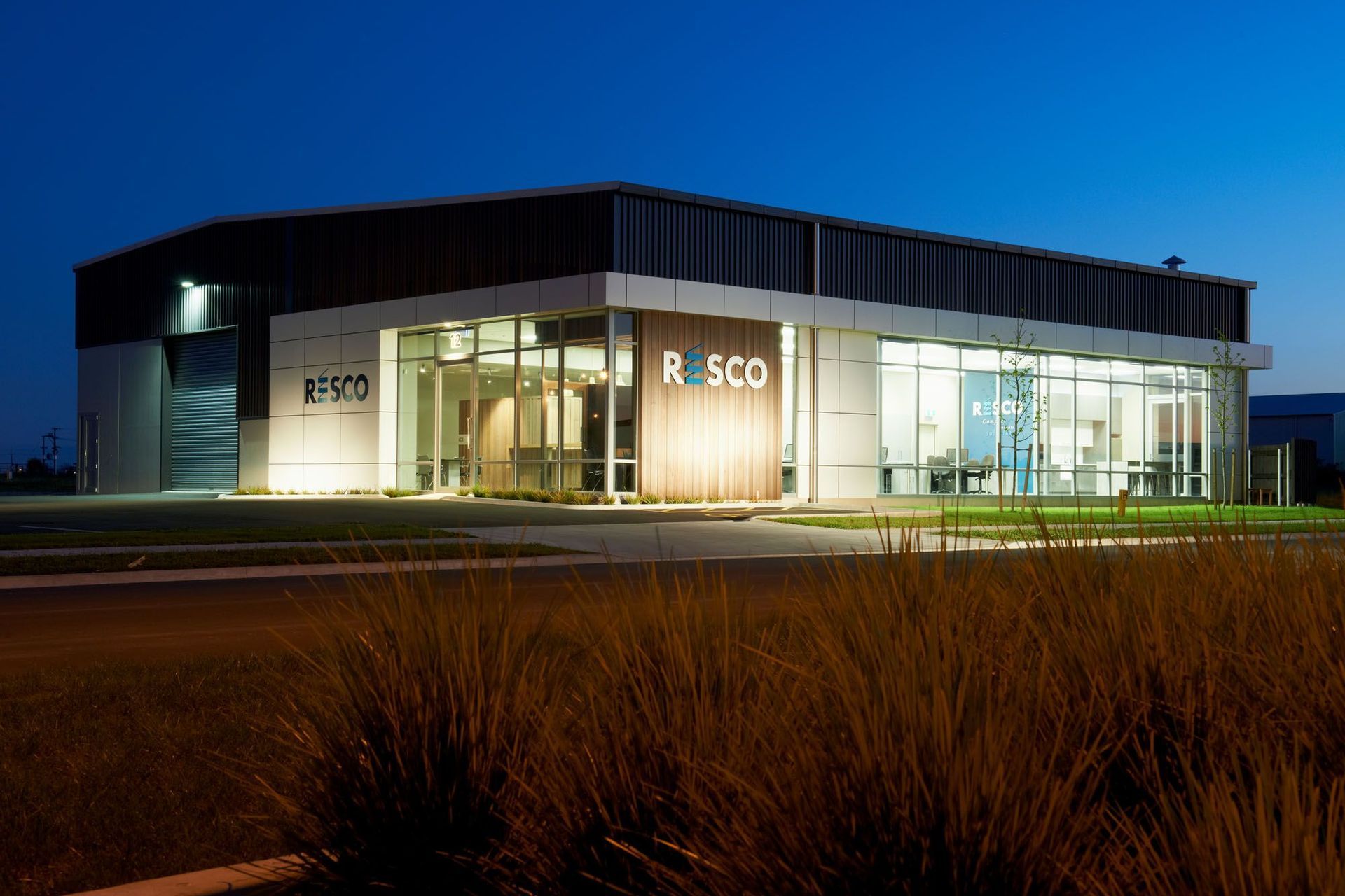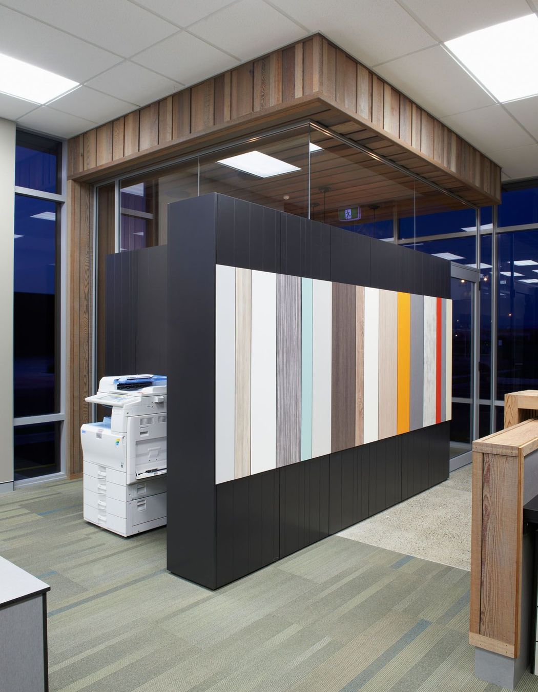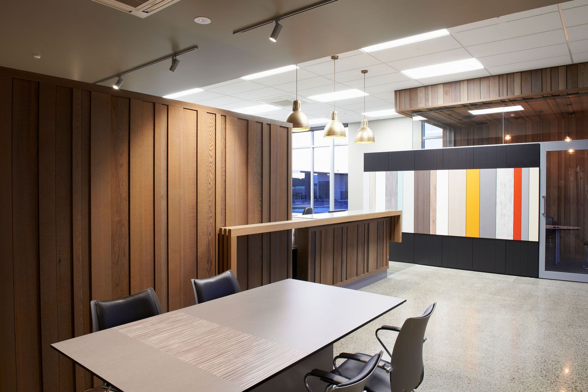 ArchiPro Project Summary - A welcoming and innovative office and factory space in Hamilton, showcasing compact laminate products in a unified environment that enhances employee collaboration and highlights the versatility of the materials used.