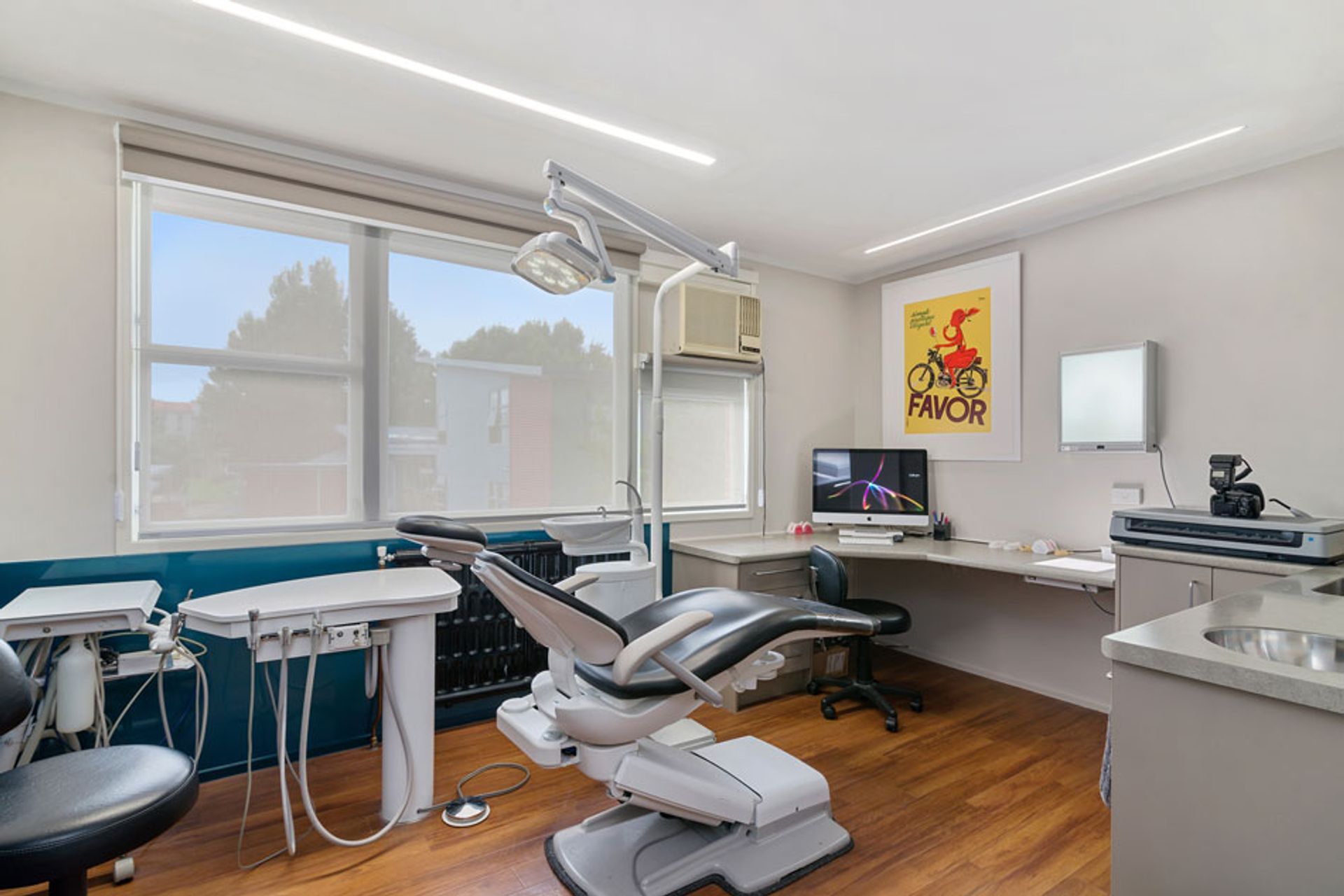 ArchiPro Project Summary - A vibrant modern, retro inspired orthodontic clinic designed for Tony Lund Orthodontist. Work involved updating the reception area and treatment rooms, enhanced lighting, and unique decor elements, completed in 2018 by Marlene Hudson Design.