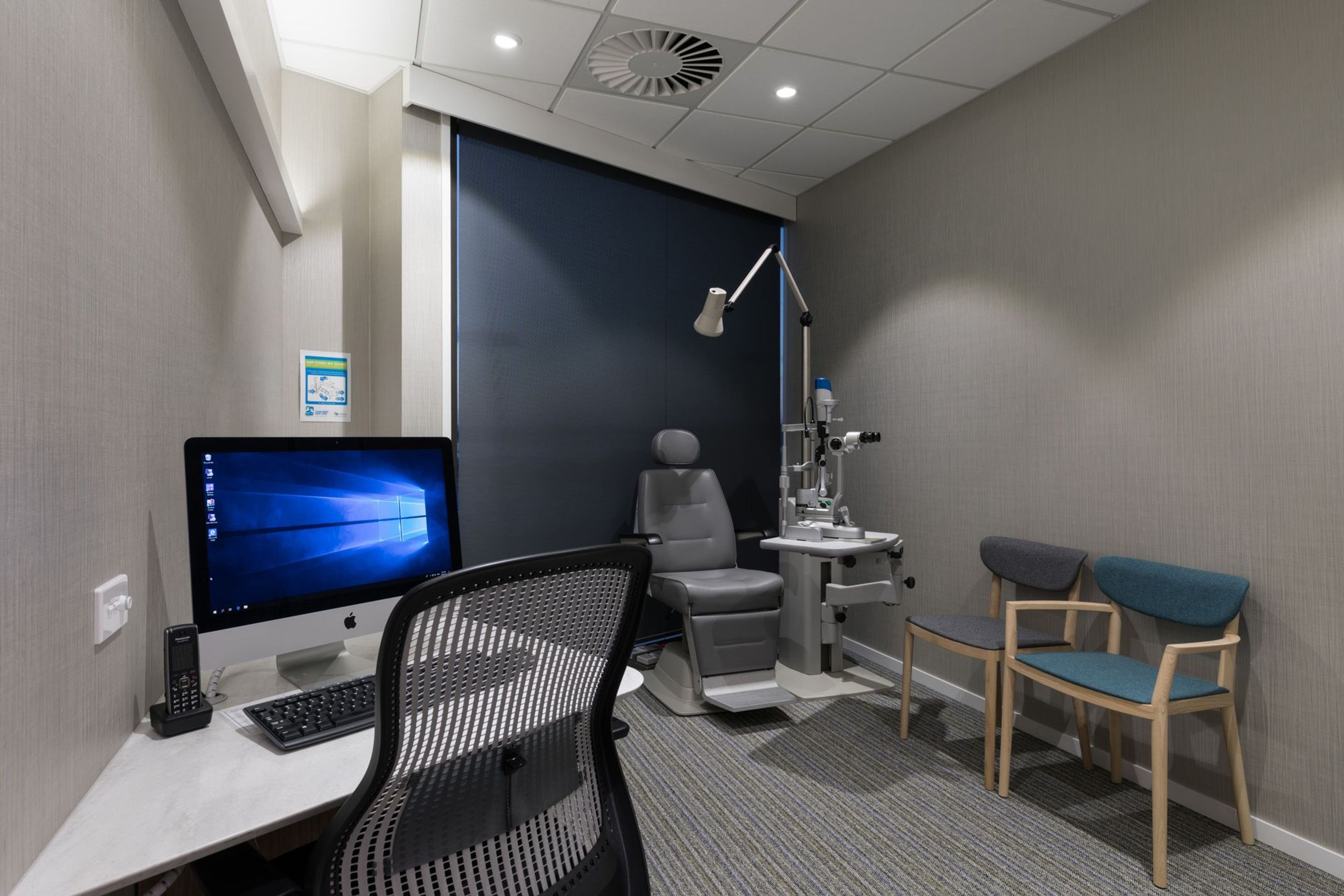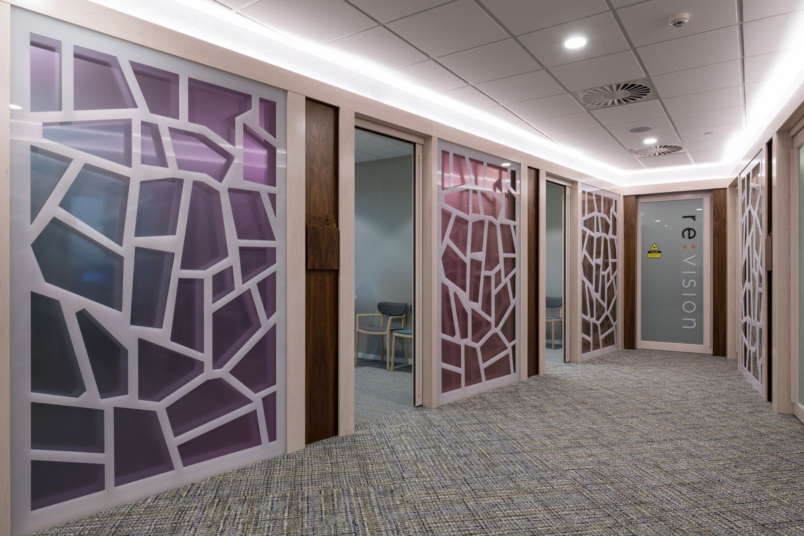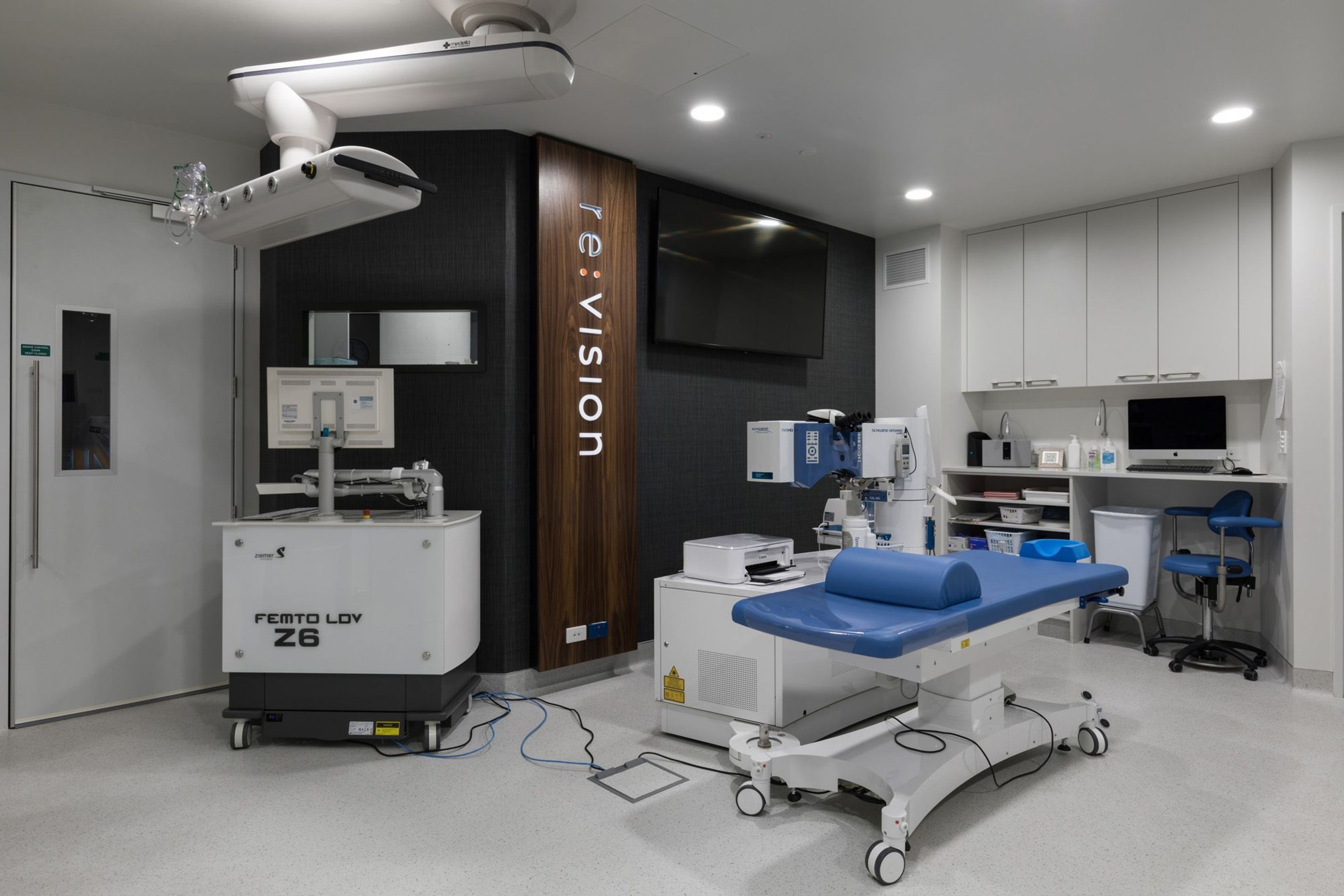 ArchiPro Project Summary - Re:Vision, a state-of-the-art eye clinic, features an open-plan design with floor-to-ceiling views, blending modern aesthetics with luxurious finishes to create an enjoyable experience for clients and staff alike.