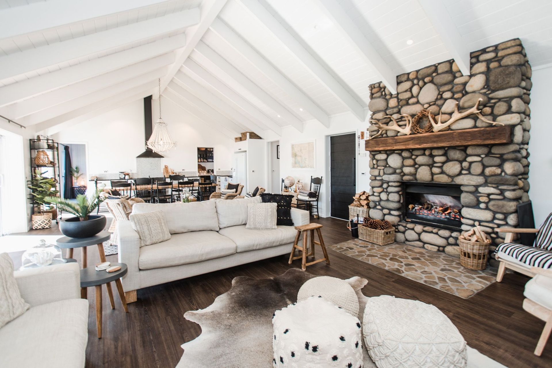 ArchiPro Project Summary - New build featuring a traditional board and batten design, three bedrooms plus a bunkroom, two bathrooms, and a spacious living/dining area with excellent indoor-outdoor flow, highlighted by a locally sourced Riverstone fireplace.