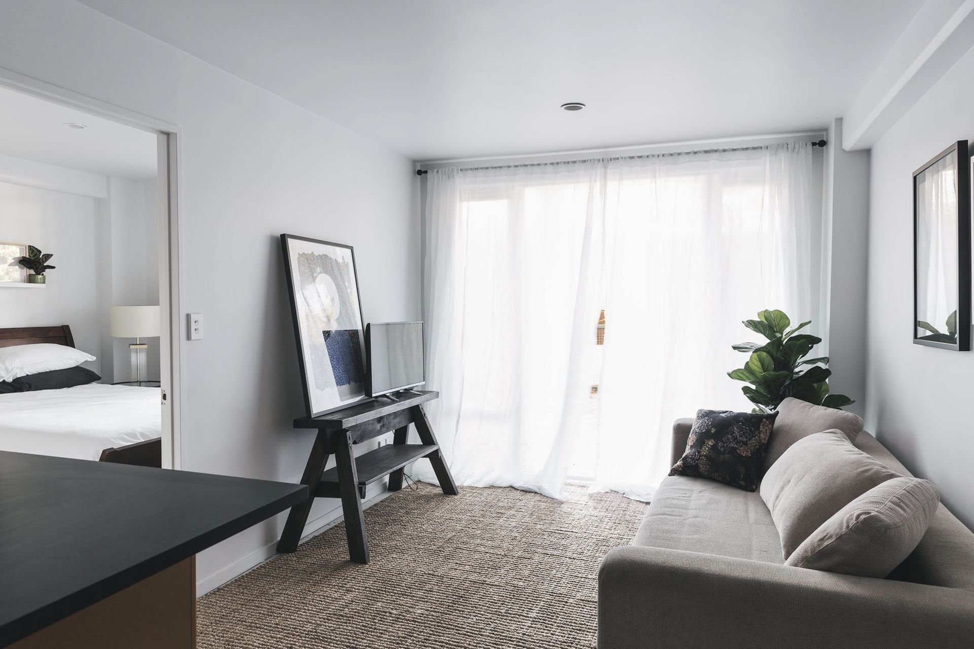 ArchiPro Project Summary - A stylish cosmetic refresh of a one-bedroom apartment, blending calming aesthetics with cutting-edge design elements, all while maximizing a modest budget for a French-inspired ambiance.