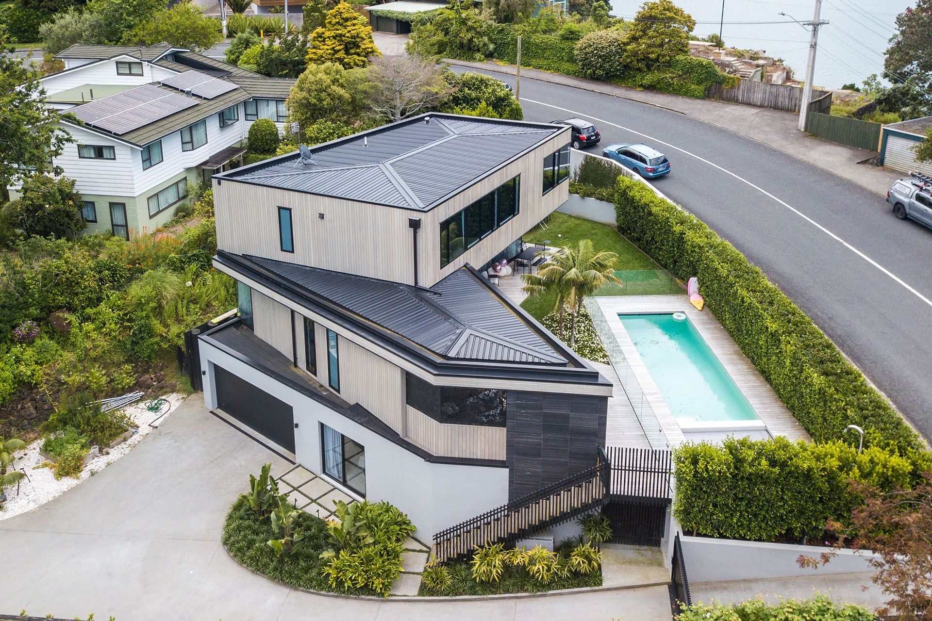 ArchiPro Project Summary - A three-storey architectural marvel in Glendowie, featuring innovative design solutions to address site challenges, extensive steelwork, and meticulous attention to detail, resulting in a stunning home with breathtaking views and elegant outdoor spaces.