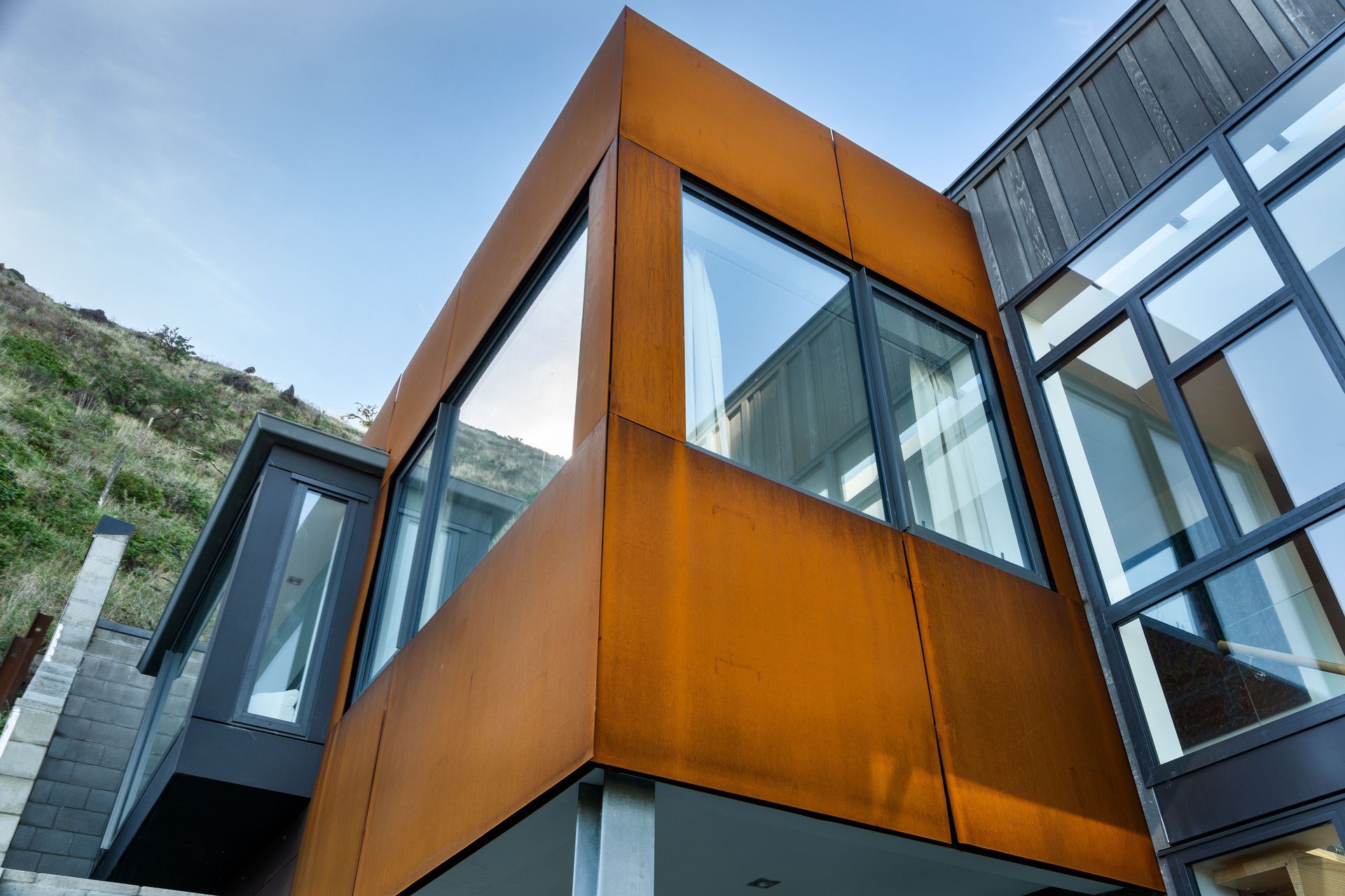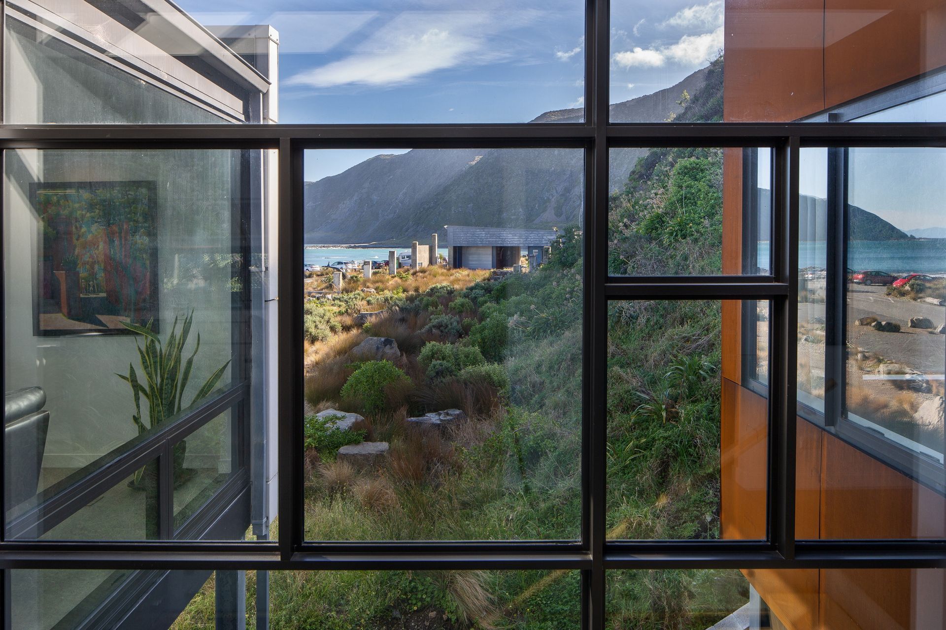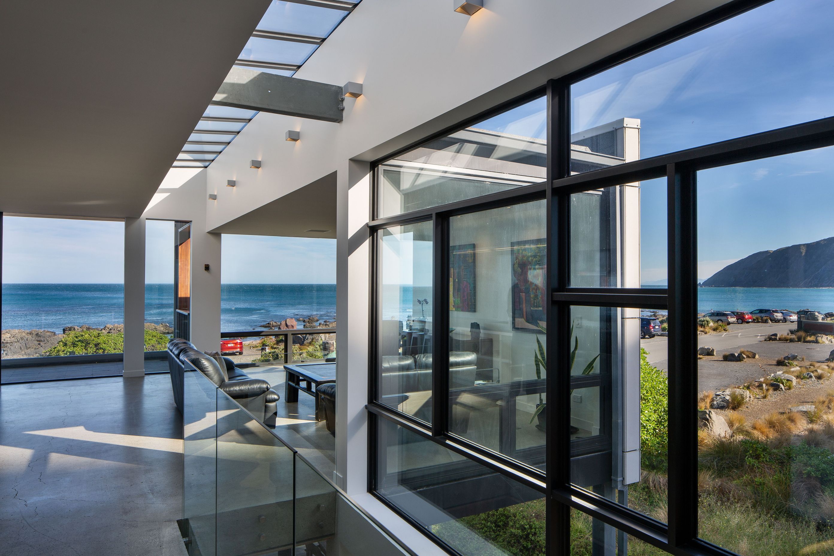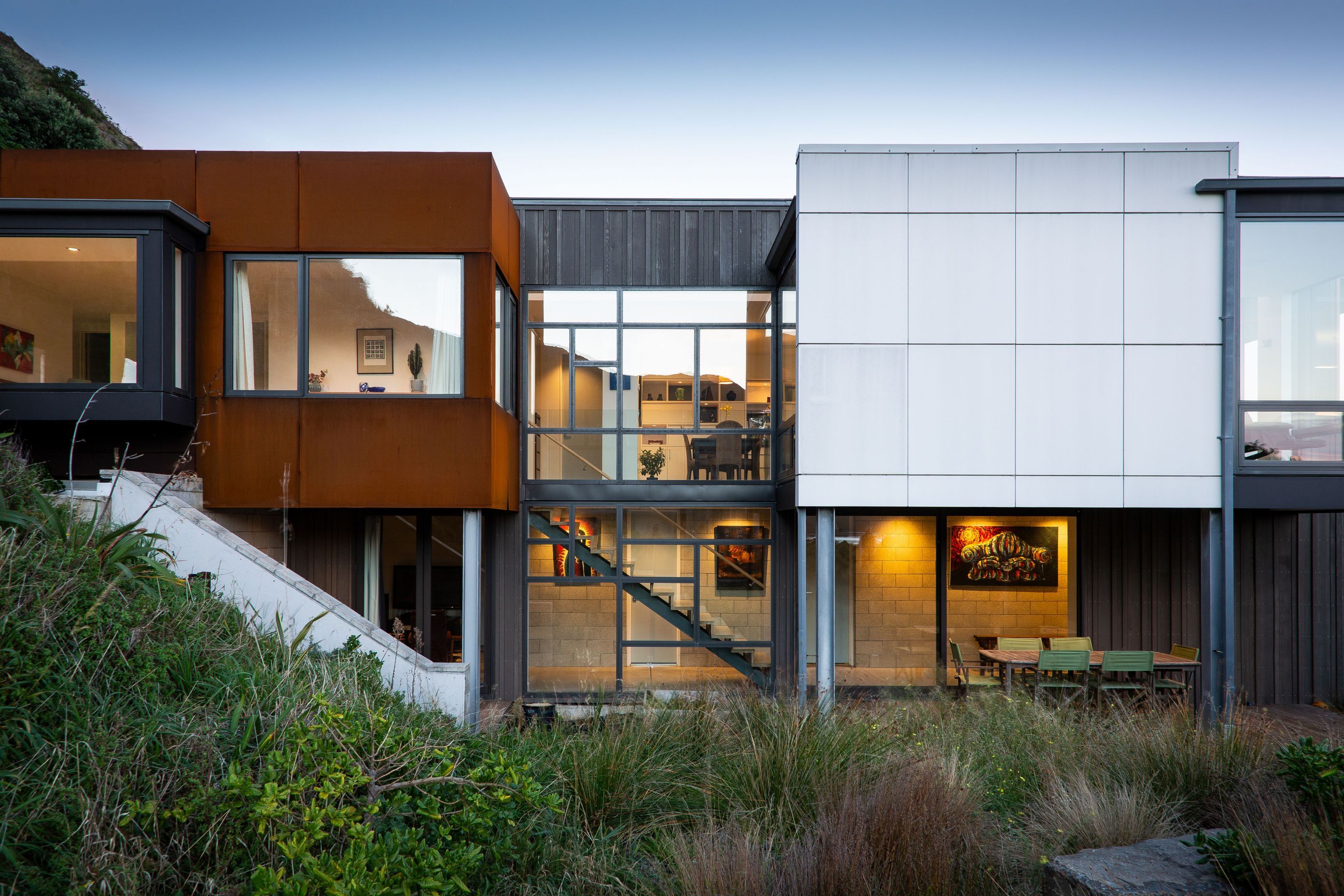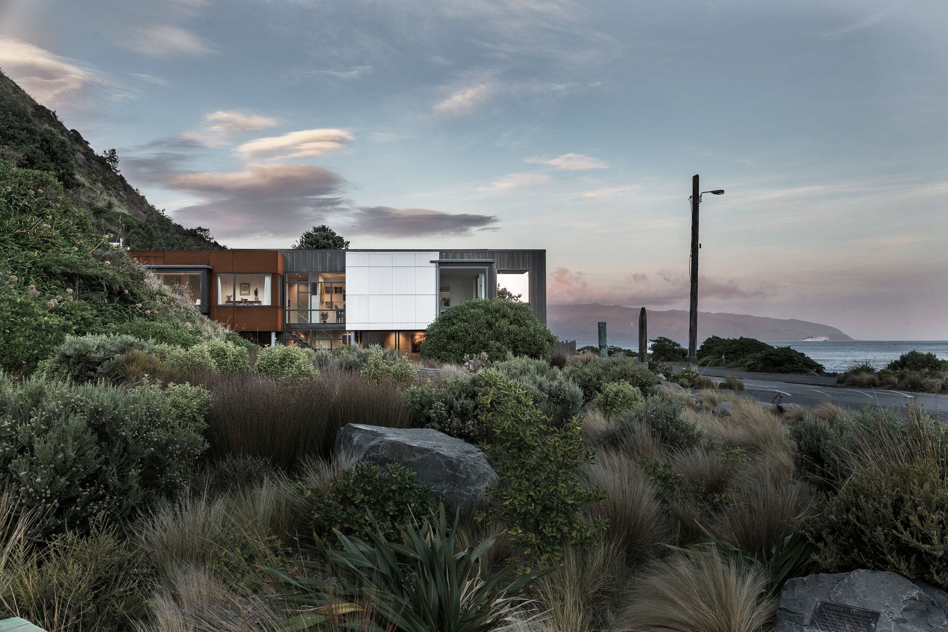 ArchiPro Project Summary - A contemporary coastal residence in Owhiro Bay, harmoniously blending with its rugged environment while reflecting the area's architectural history through robust materials and thoughtful design.