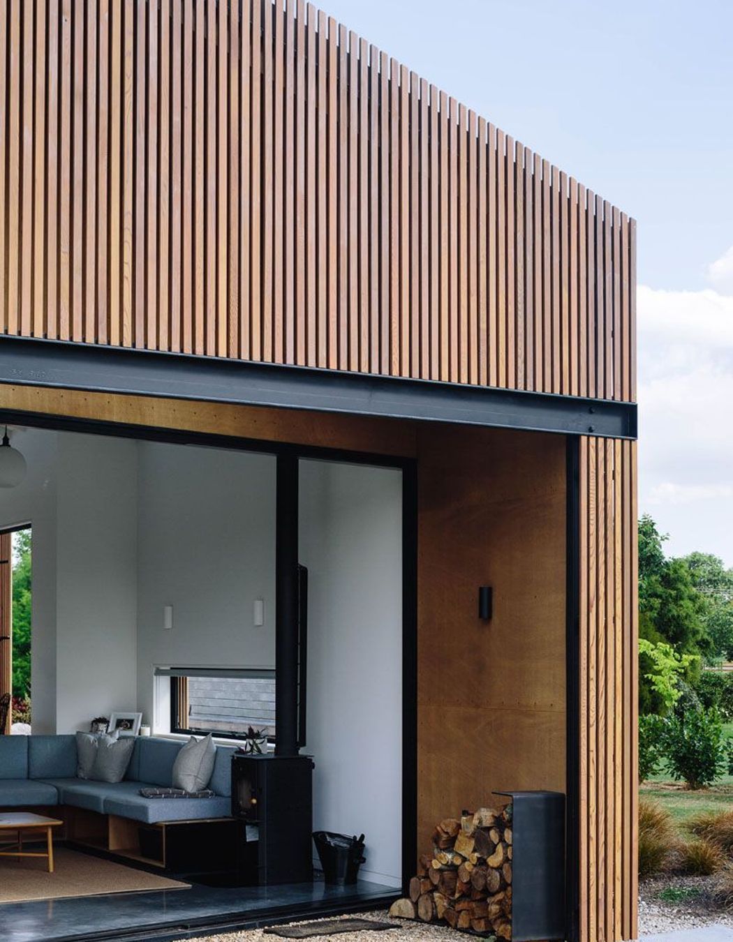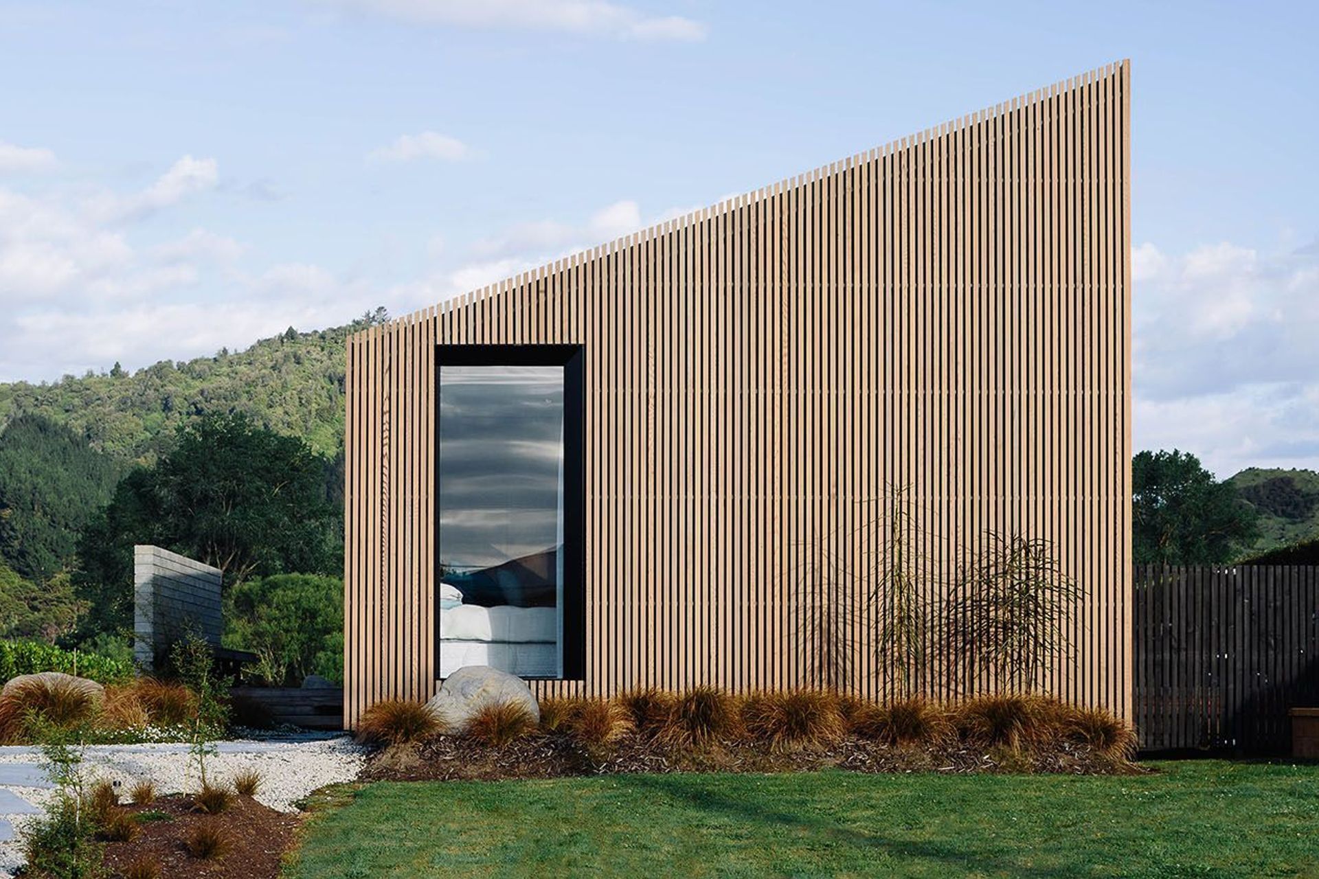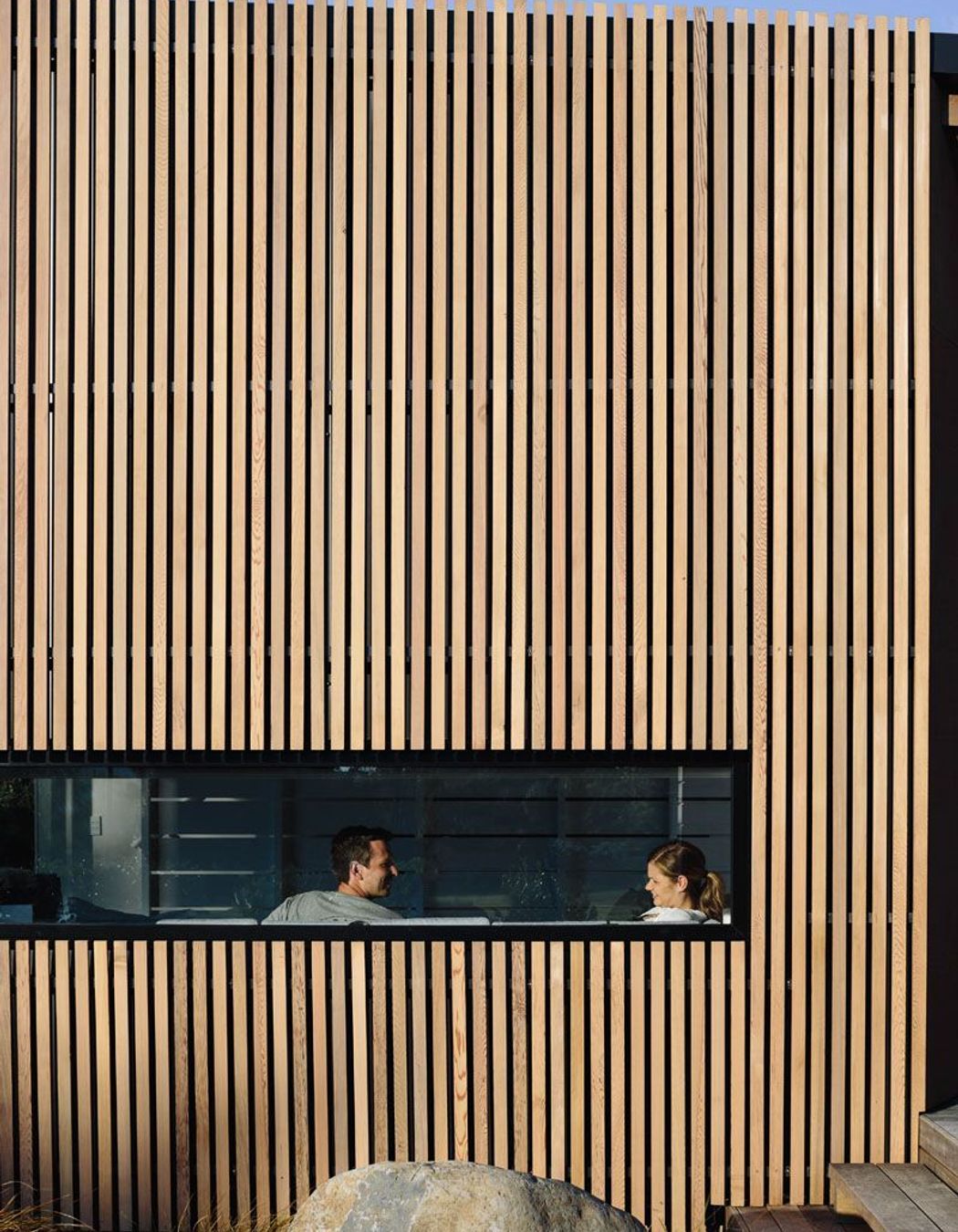 The rainscreen is a cedar-clad form that covers the flashing details very well. It’s almost like the ring of a tree with the ‘bark’ being the battens and the smoother surface underneath the plywood. We clad the entire house firstly in bullet-proof Diamond Colorsteel, as it is weathertight, with the cedar rainscreen added last.