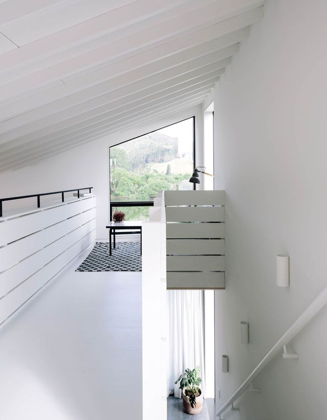 The open shelving that runs along the mezzanine makes the house feel homely and, at the same time, prevents clutter in the small living area – it’s a perfect spot for photos, books and plants.