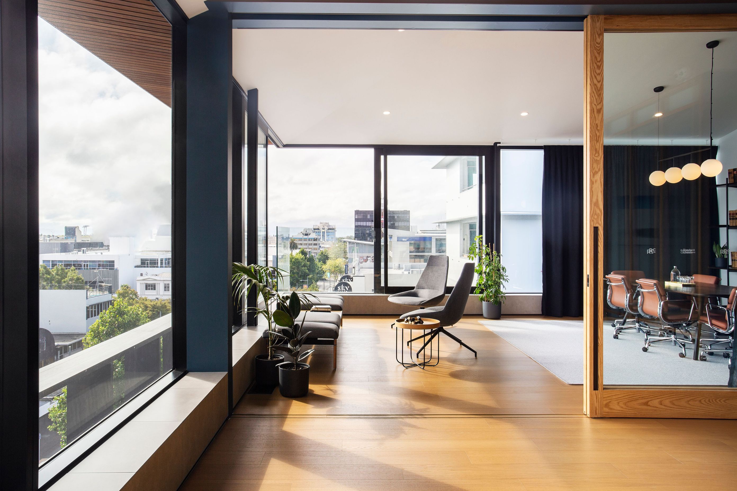 ArchiPro Project Summary - A comprehensive refurbishment of a 1960's building in Hamilton's CBD, enhancing its structural potential with a new floor, elegant design elements, and modern meeting spaces while respecting traditional barrister office aesthetics.