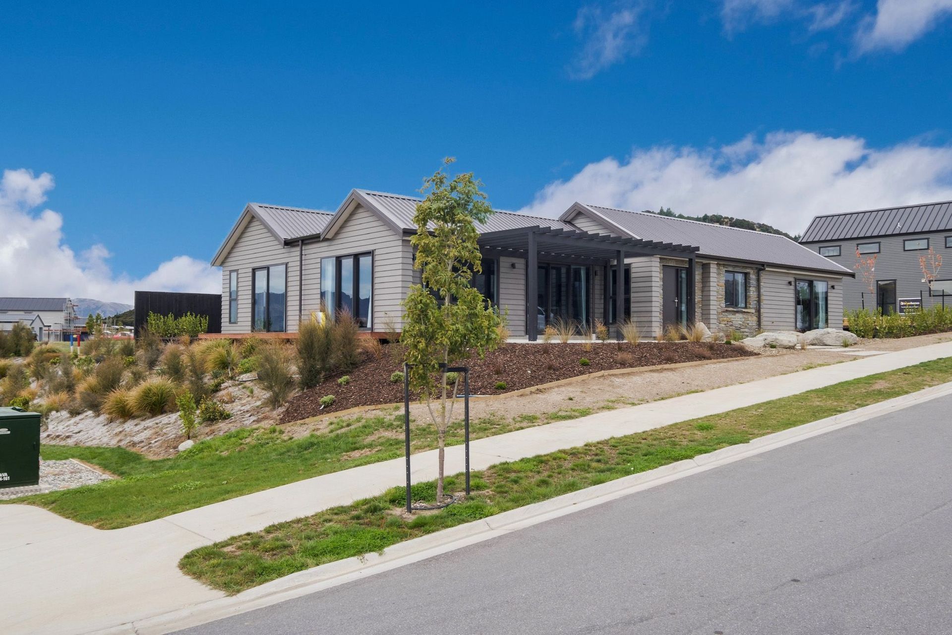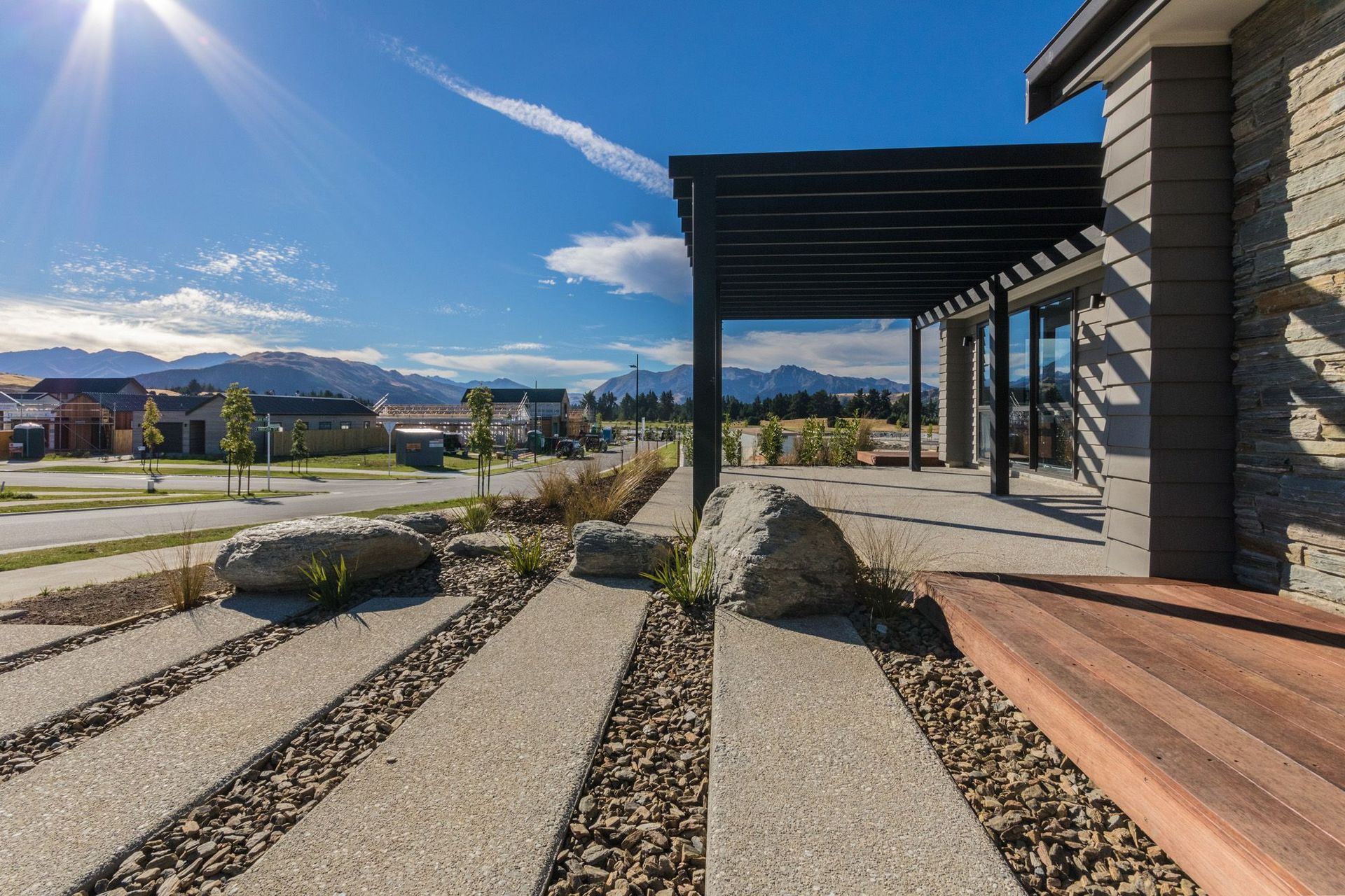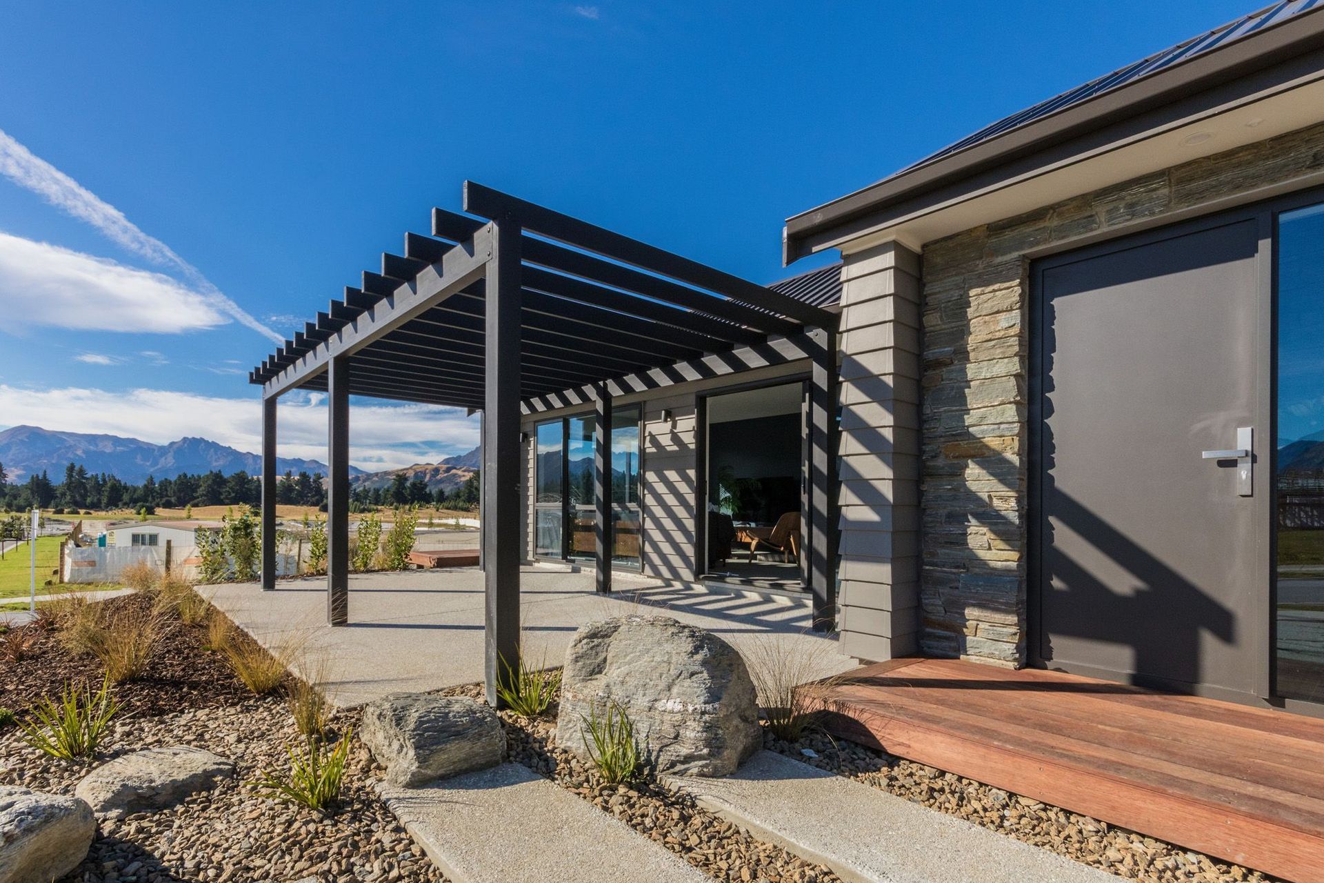 ArchiPro Project Summary - Thoughtfully designed Northlake property harmonizing with Wanaka's stunning mountain vistas and natural landscapes, featuring a minimalist aesthetic, a privacy-enhancing pergola, and strategic planting for future natural seclusion.