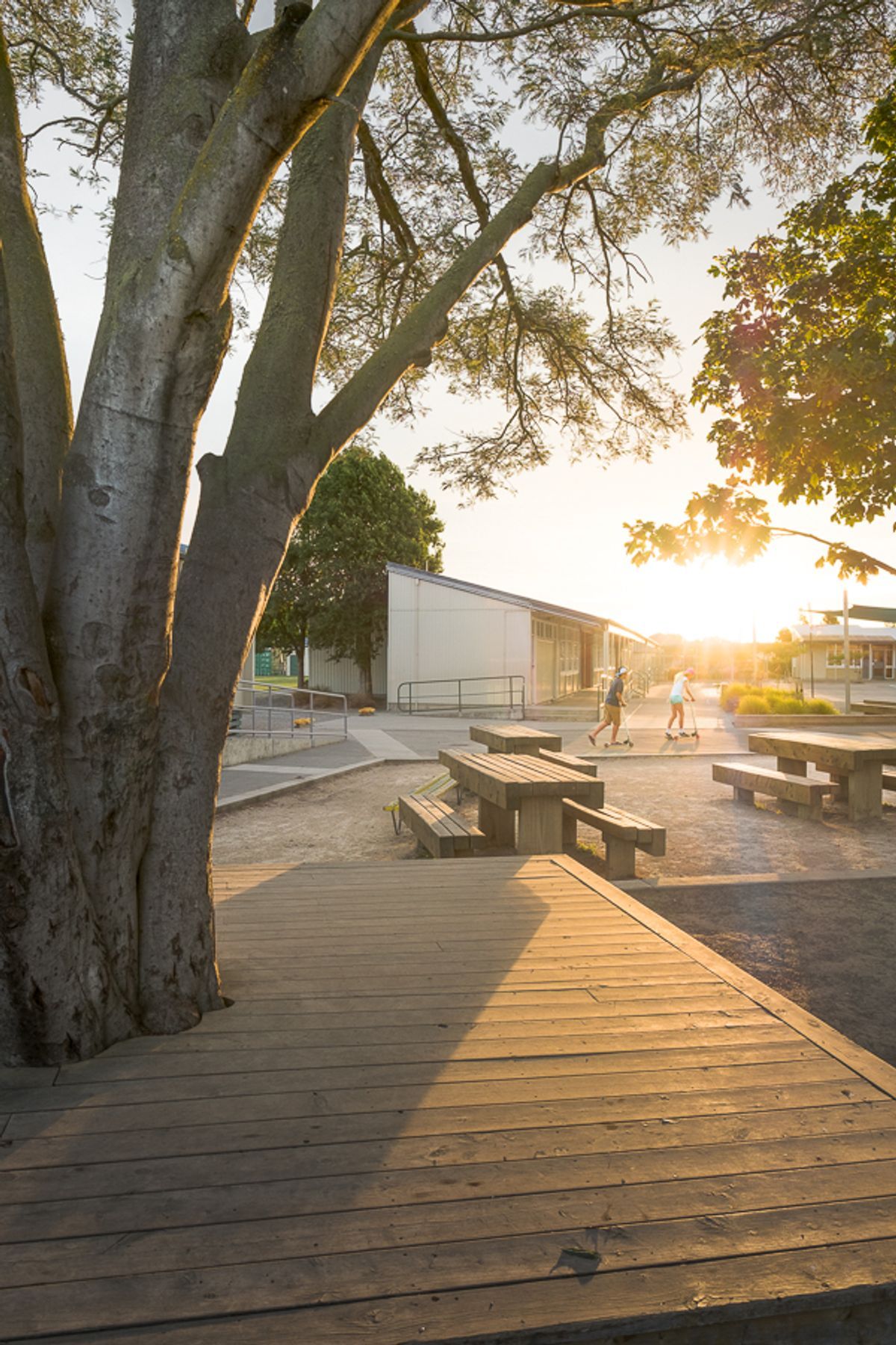 ArchiPro Project Summary - Thoughtfully designed school playground landscape that honors local history and the school motto, emphasizing safety, durability, and aesthetic appeal while reflecting the significance of the nearby railway to the community.
