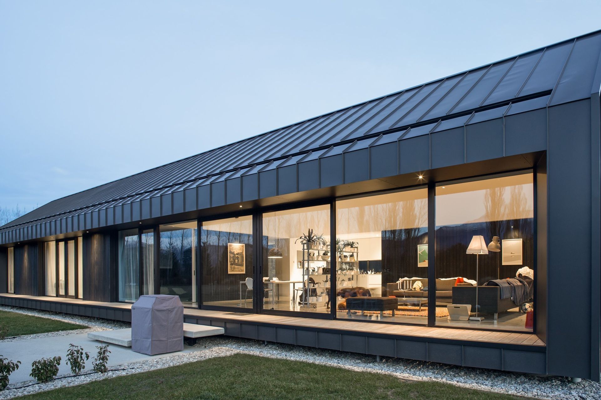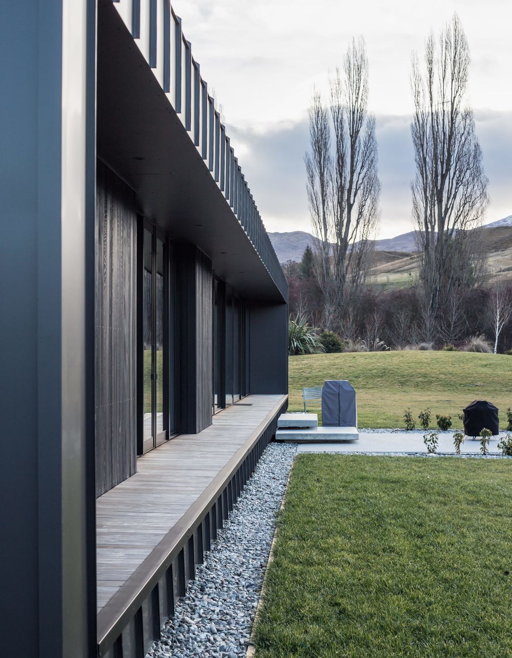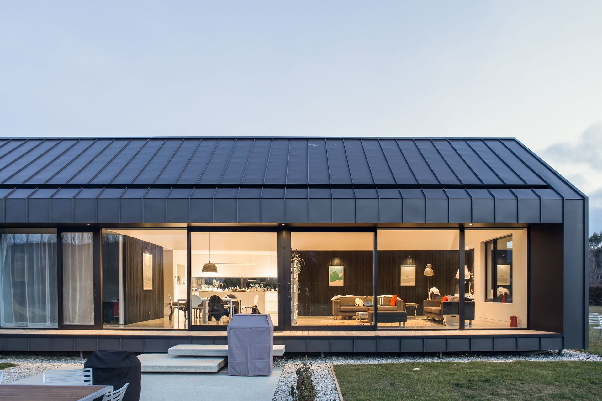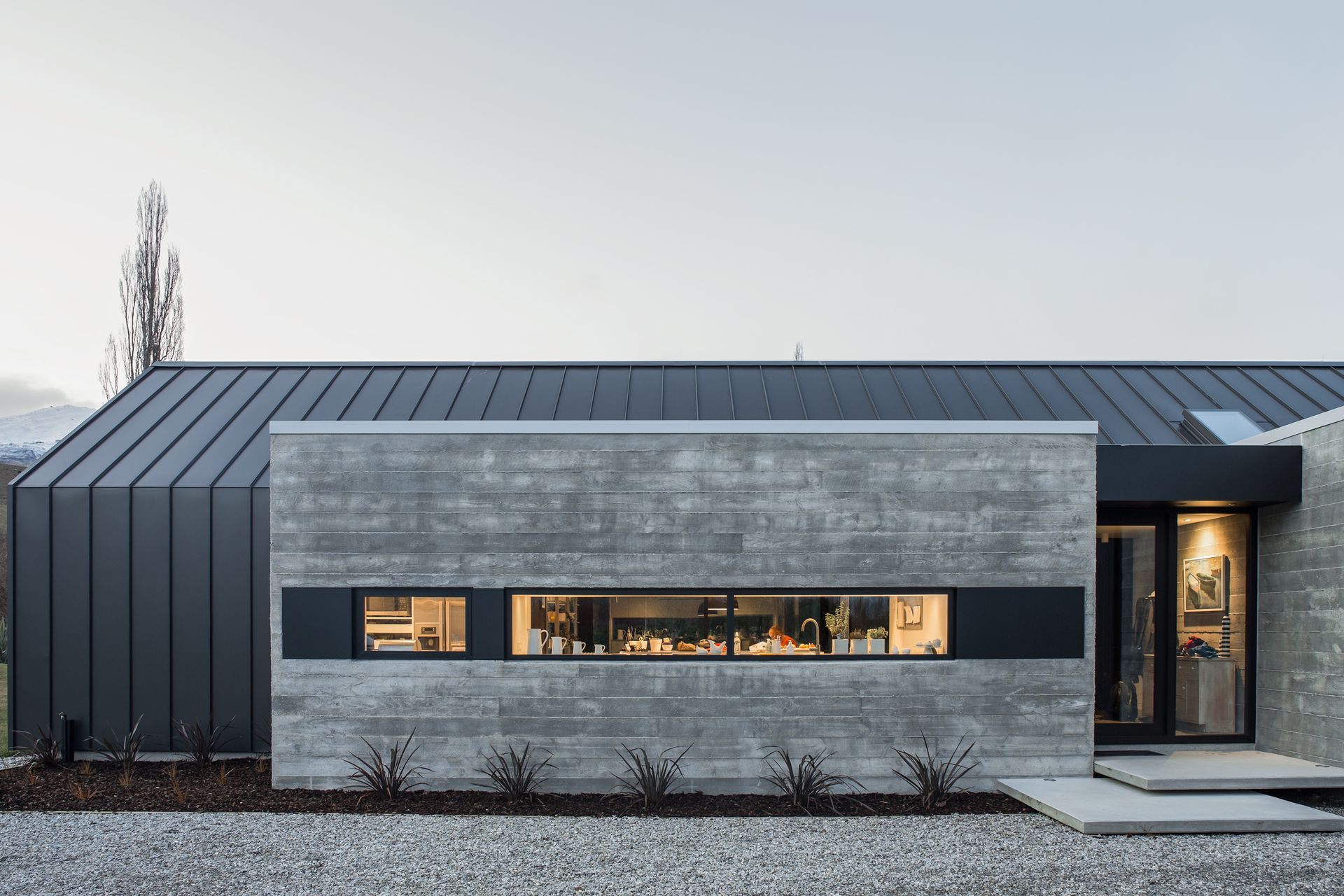 ArchiPro Project Summary - Elegant family home in Queenstown featuring seamless Eurotray® Angle Seam cladding, designed by Dravitzki Brown and expertly installed by RoofingSmiths, showcasing impeccable detailing and craftsmanship.