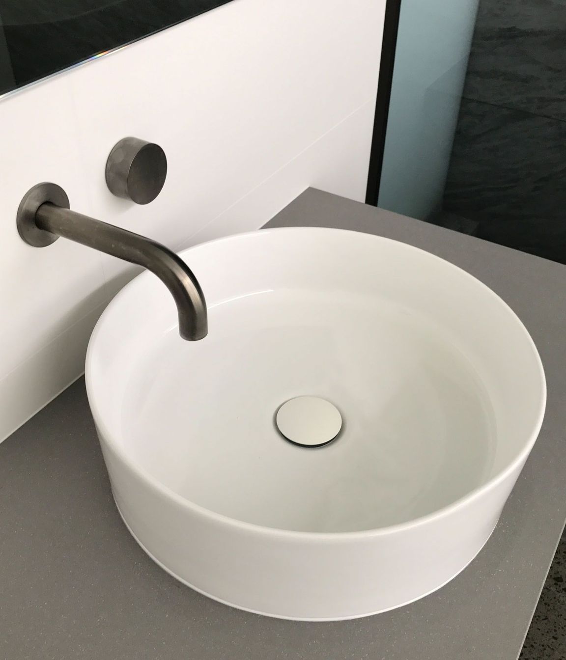 ArchiPro Project Summary - A sophisticated bathroom renovation at Rossgrove Terrace, featuring a minimalist monochrome design, handcrafted gunmetal fittings, a stunning marble wall, and a custom vanity, all enhancing the space's functionality and aesthetic appeal.