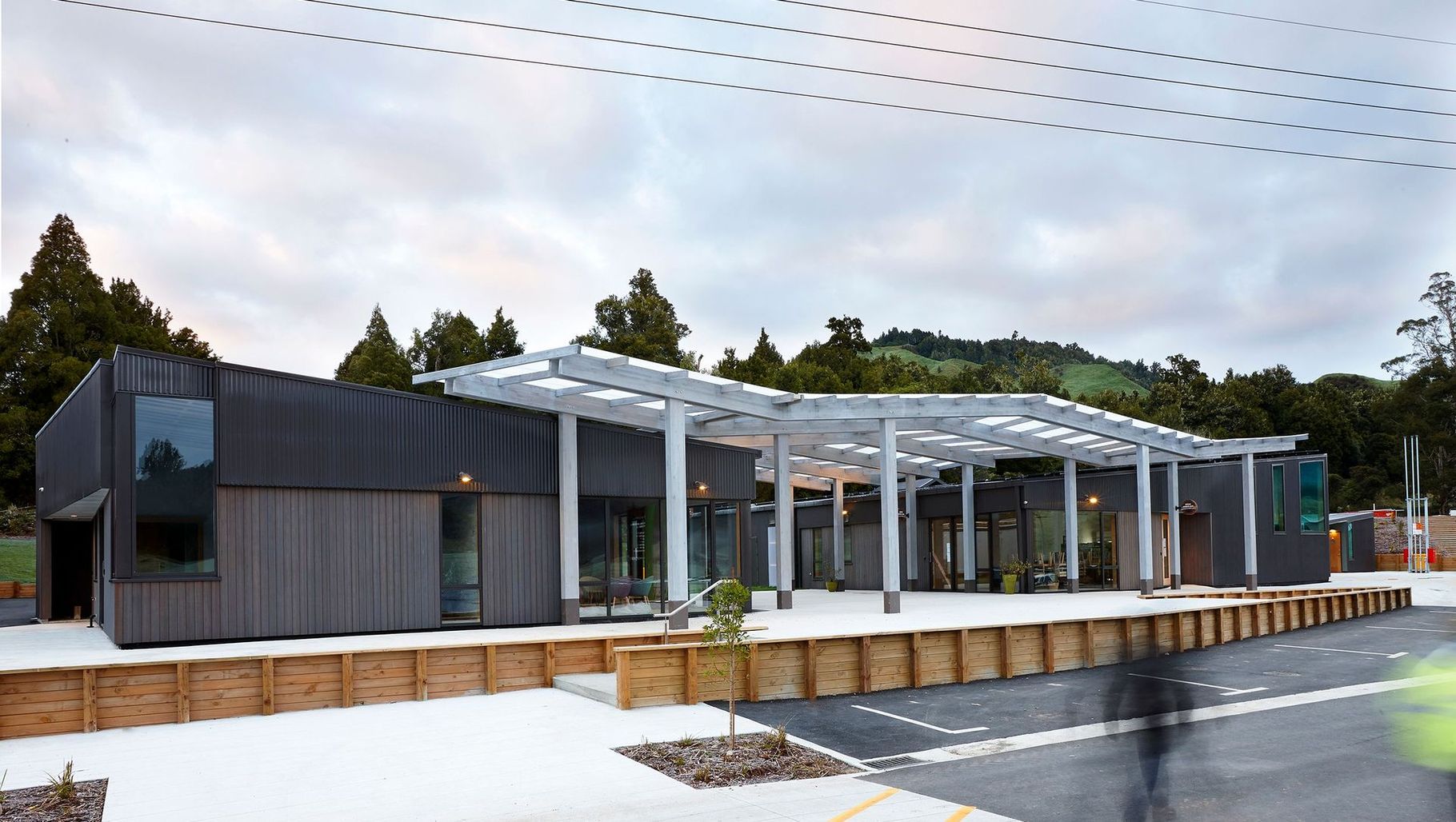 ArchiPro Project Summary - Revitalizing Ruatāhuna: A community-focused development featuring a petrol station, Tribal Office, local shop, café, and chalets, built with sustainable methods and materials in partnership with Tuhoe.