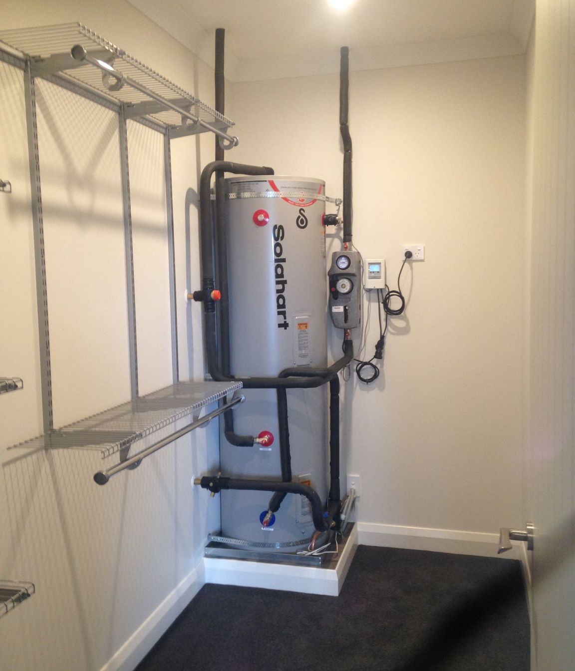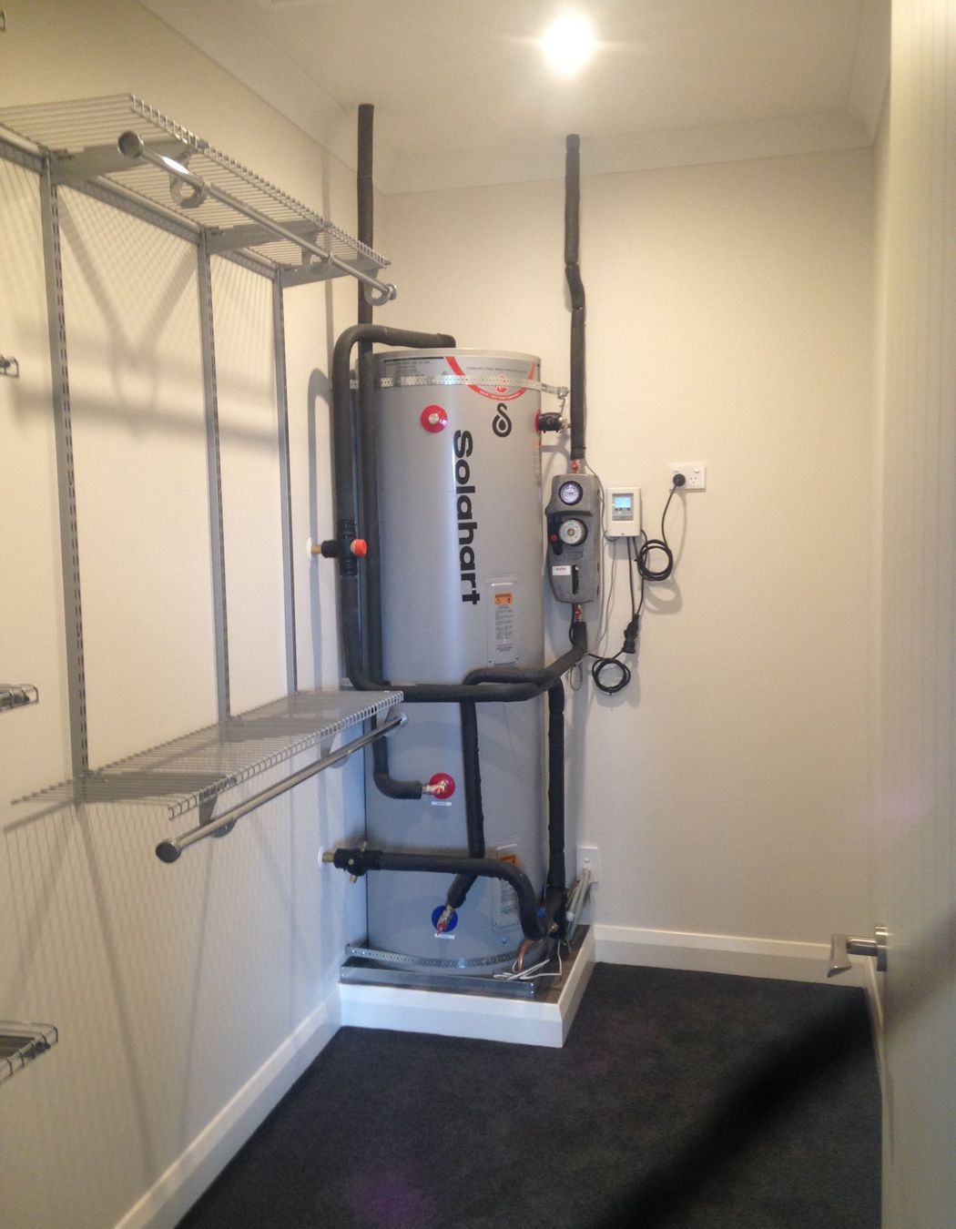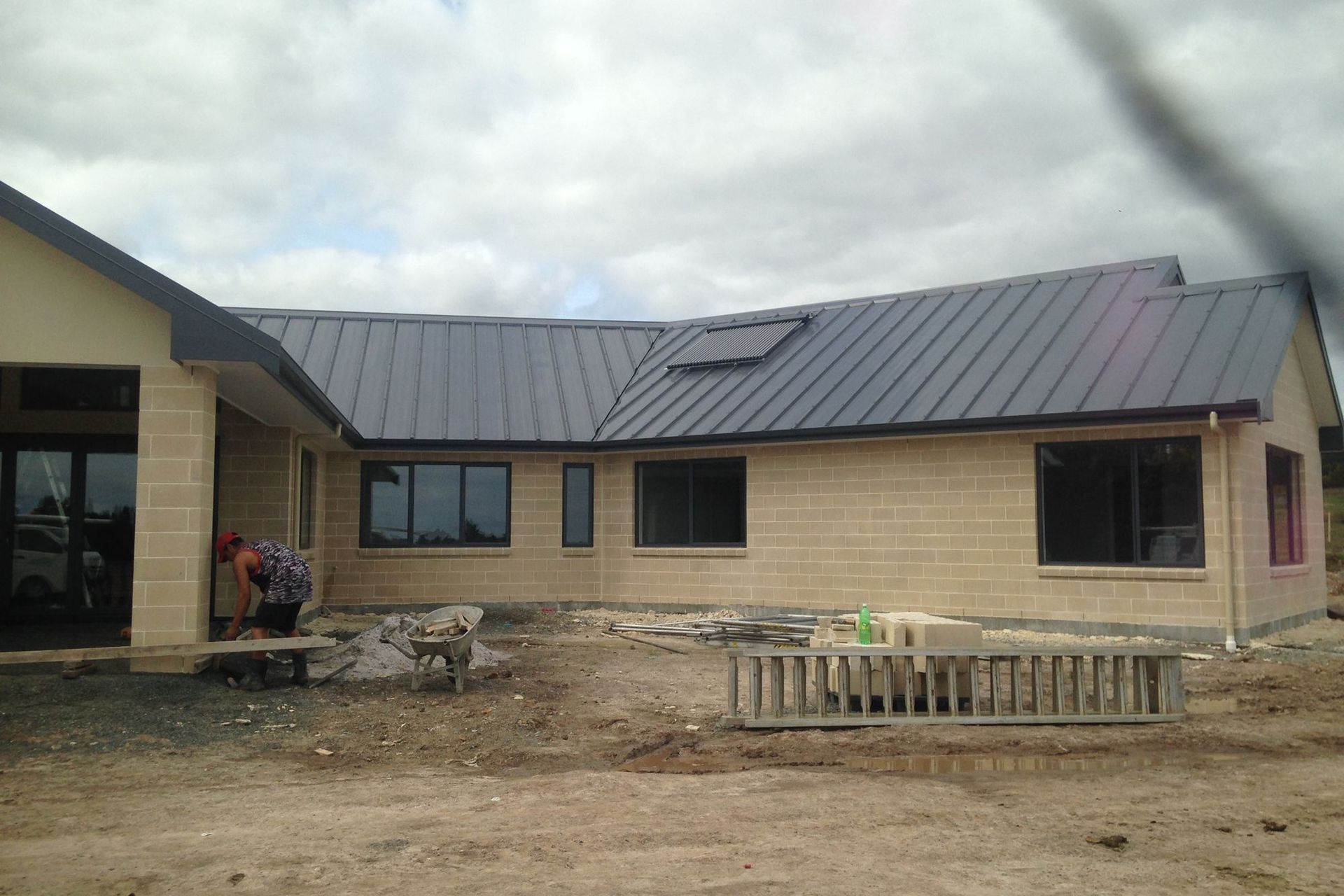 ArchiPro Project Summary - Installation of Diamond Solar-Rib roofing, Solahart V300 solar hot water system, Solatube skylight, and plumbing for a rural living project.