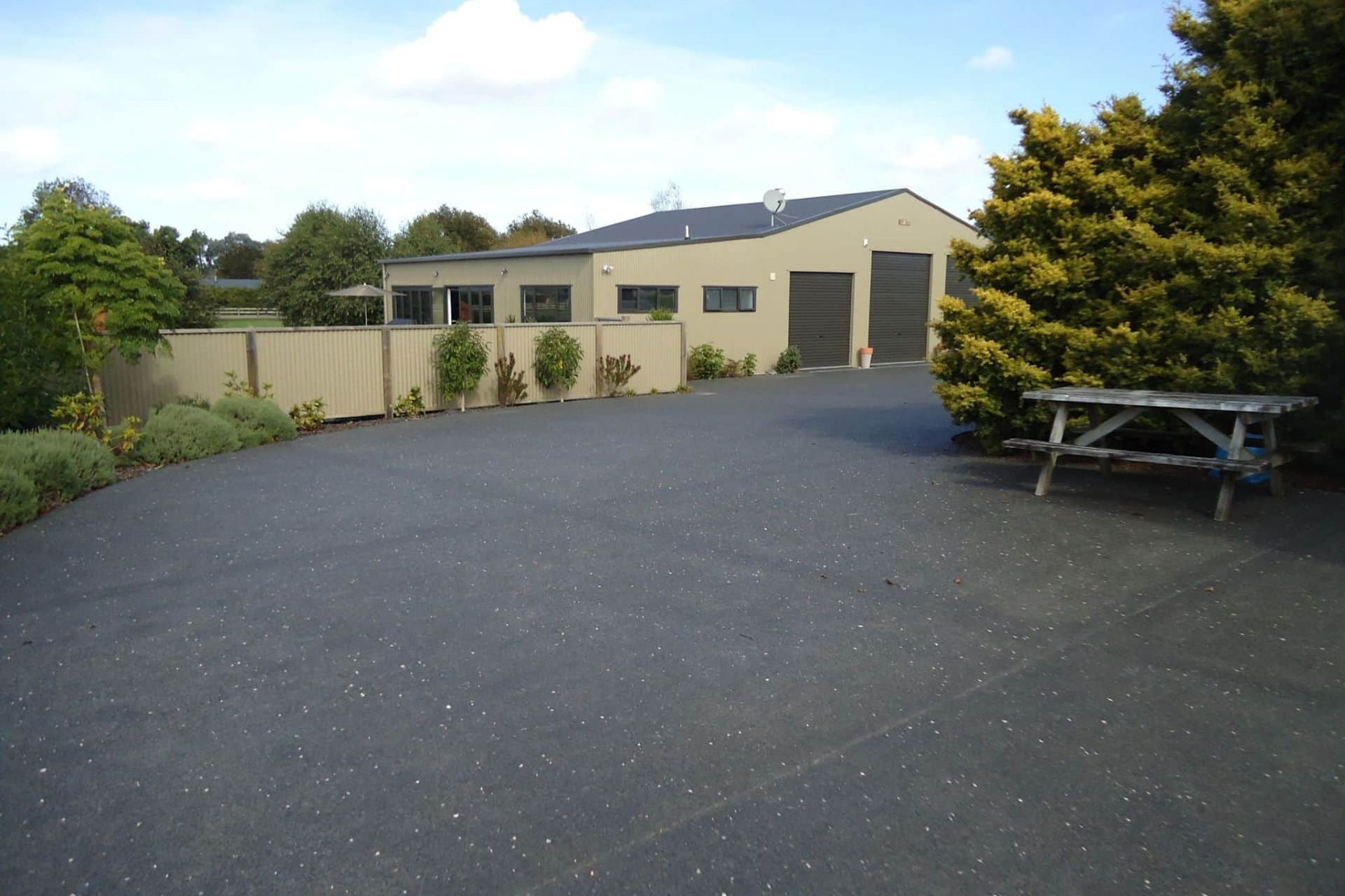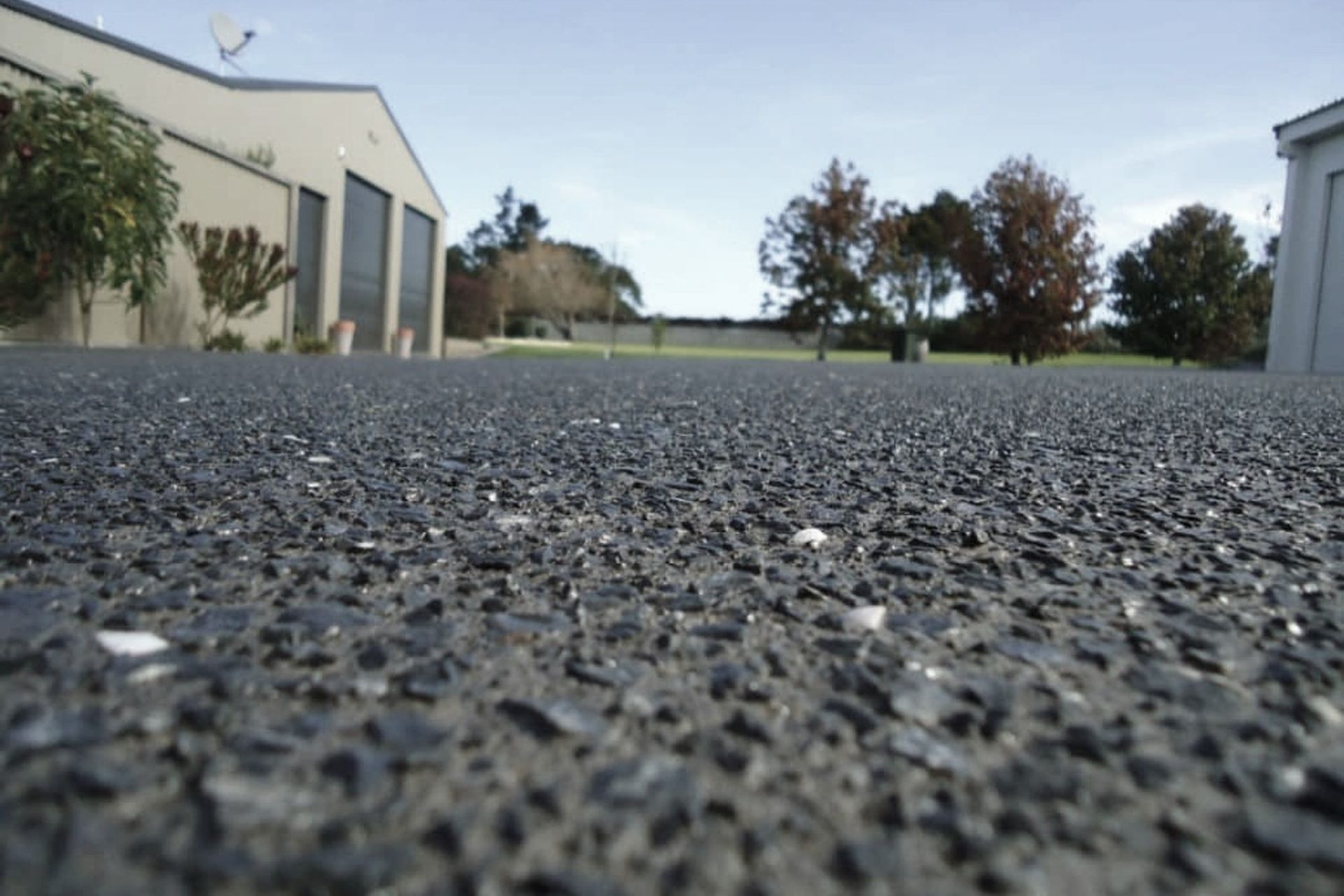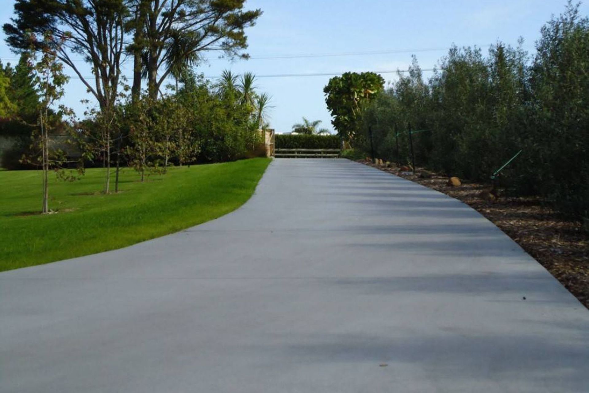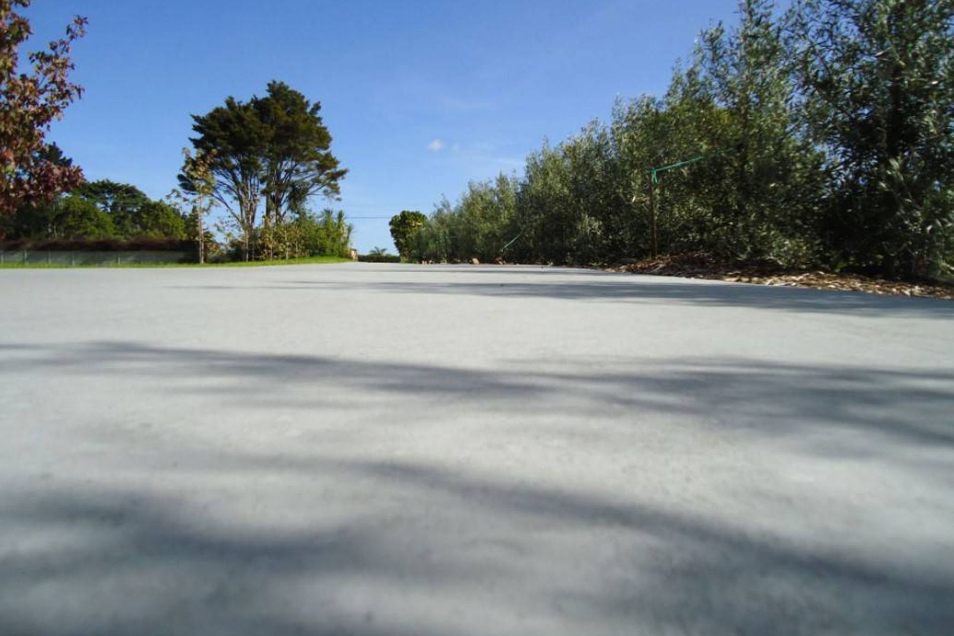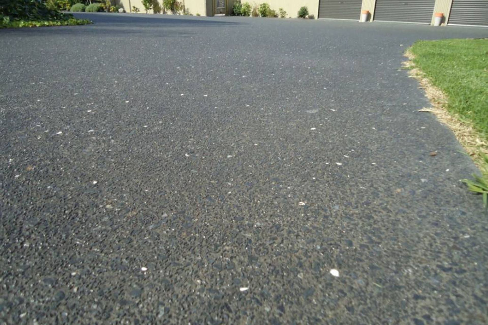 ArchiPro Project Summary - Concrete enhancement of a Riverhead rural property featuring an exposed mix with black oxide and crushed shell, complemented by an extended driveway using a non-exposed standard mix.