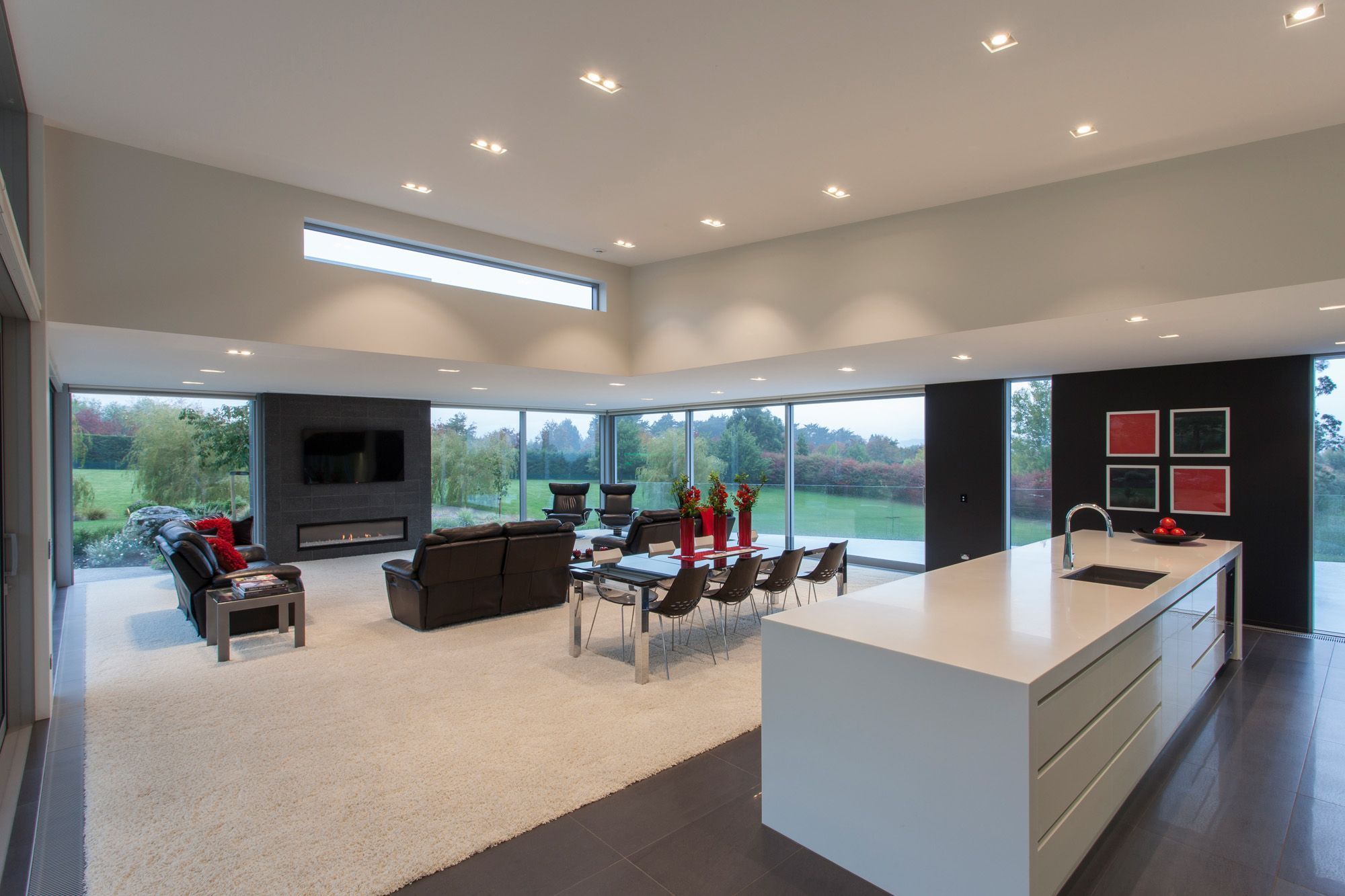 ArchiPro Project Summary - Award-winning contemporary family home on the Taieri Plains, designed by Reece Warnock to maximize stunning 360-degree views of the rural landscape, featuring expansive glass walls and strategically positioned living areas.
