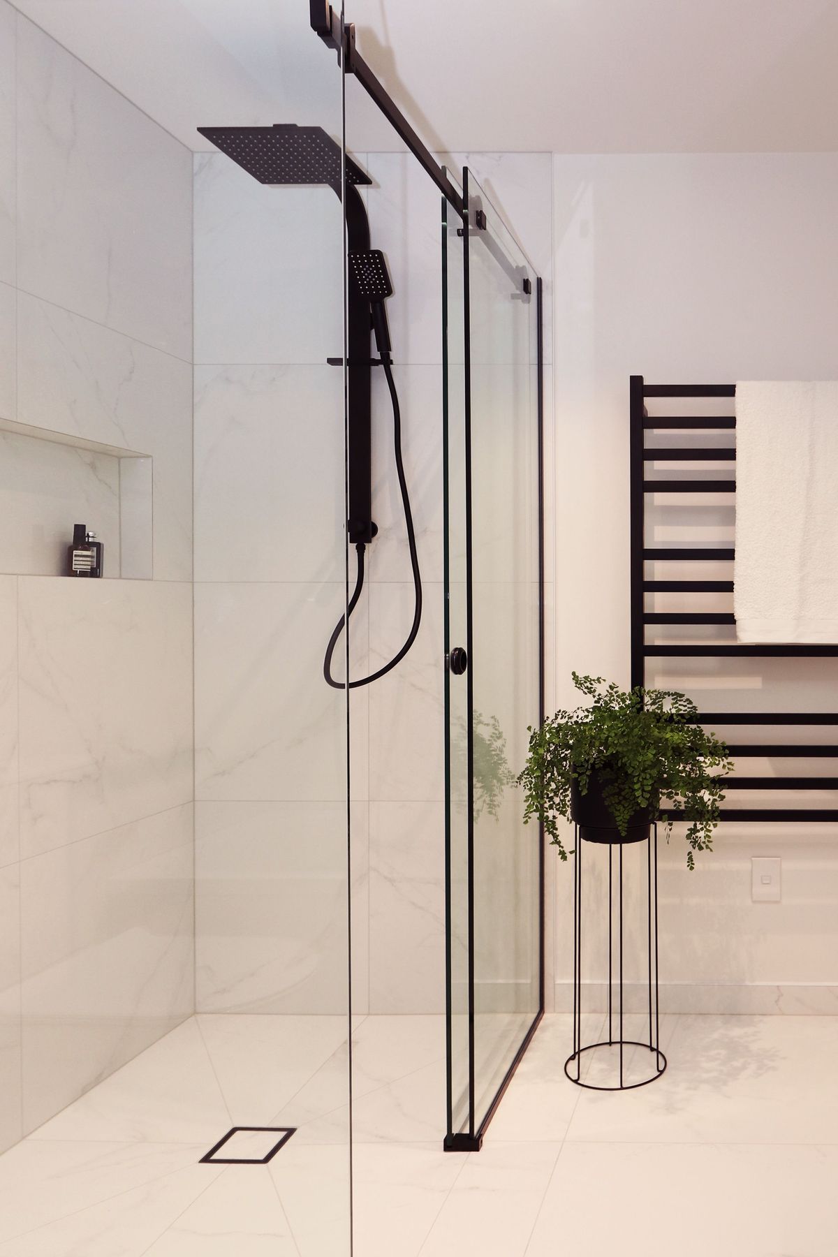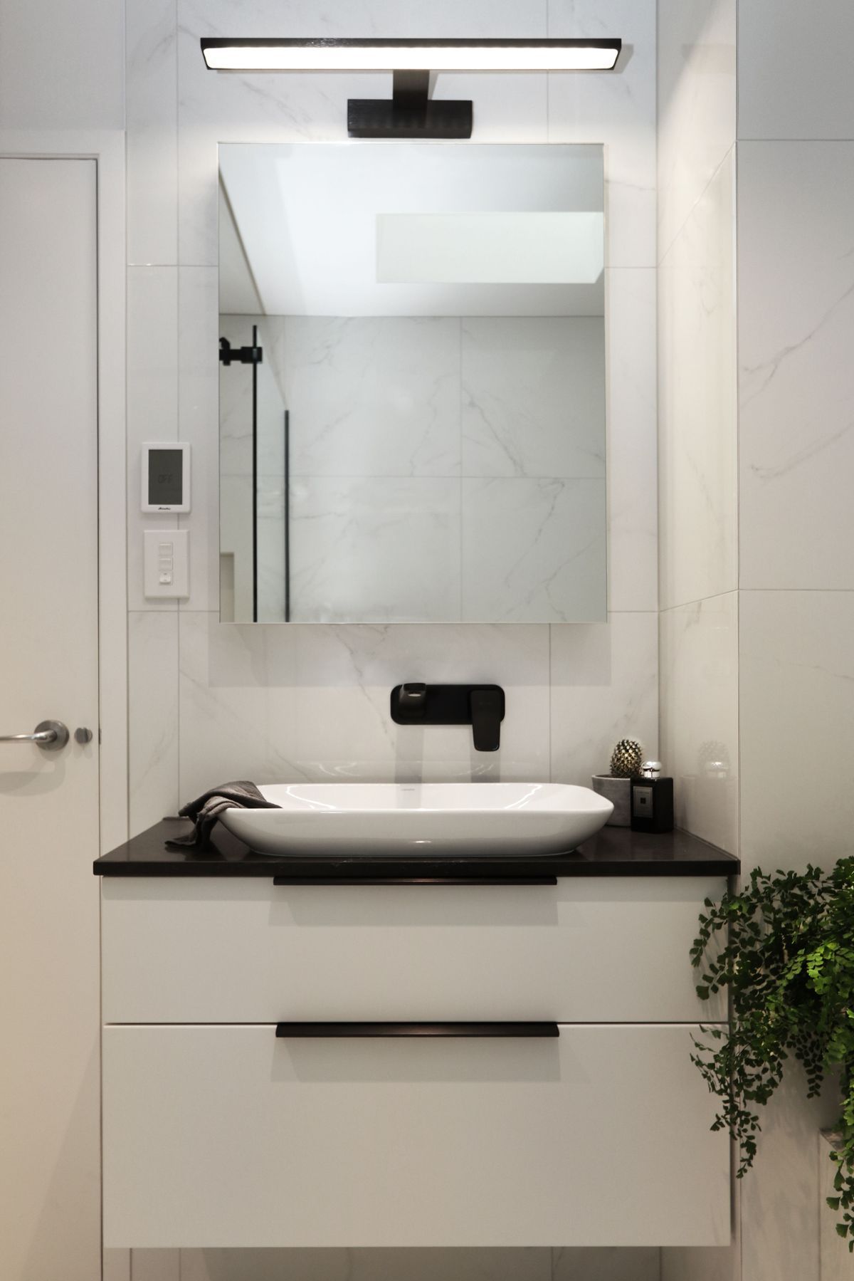 ArchiPro Project Summary - A sophisticated renovation in Grey Lynn featuring a contemporary monochromatic design, enhancing space with modern black fixtures and elegant finishes for a bright, functional bathroom.