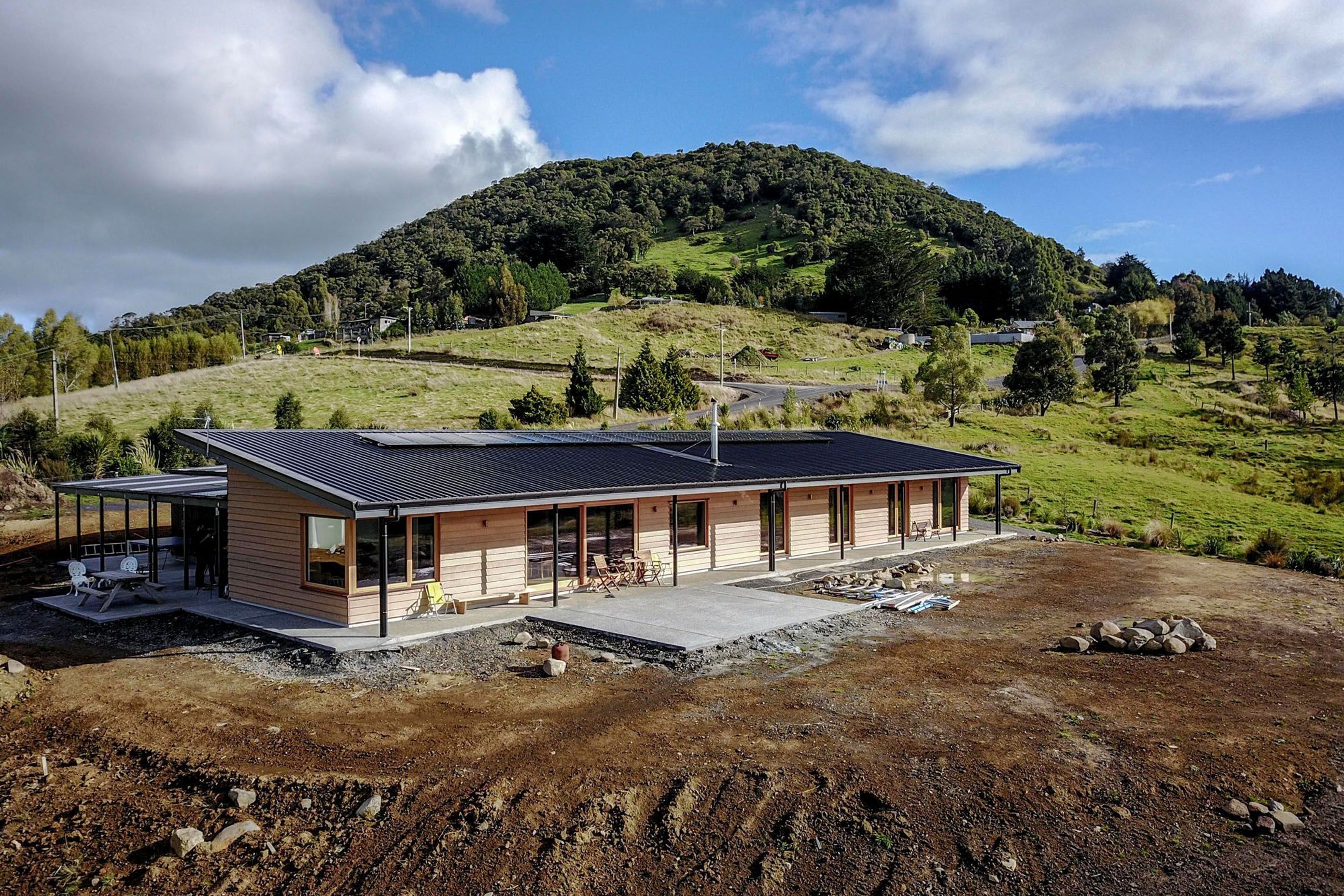ArchiPro Project Summary - A thoughtfully designed family home nestled into the Taieri Plains, featuring passive solar principles, high-performance insulation, and innovative ventilation systems for optimal comfort and energy efficiency.