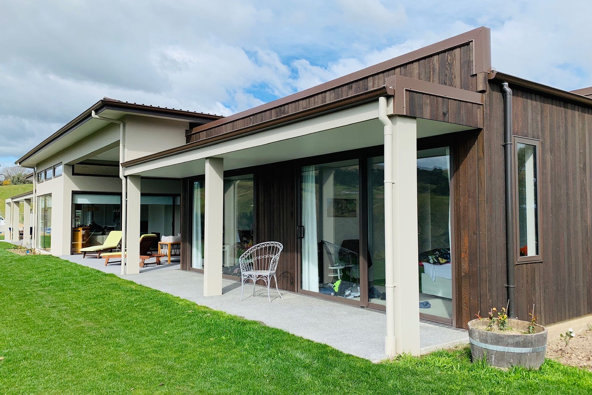 ArchiPro Project Summary - Spacious 4-bedroom home designed by Simon Clarkson, featuring shiplap cedar and Celcrete cladding, nestled in the scenic Havelock Hills.
