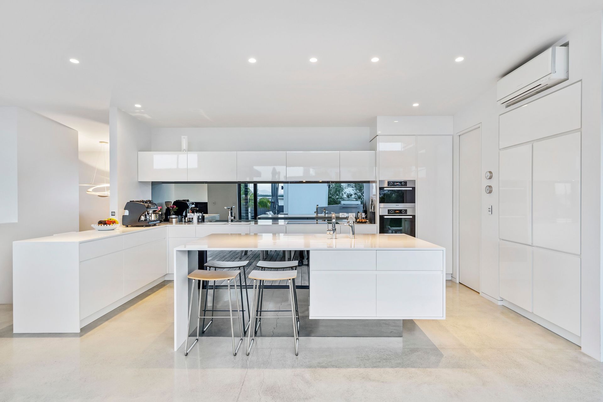 Structurally, this is a very low maintenance, easy-care concrete house with walls of mainly precast concrete finished with Rockcote plaster for an immaculate look that can withstand the coastal environment.