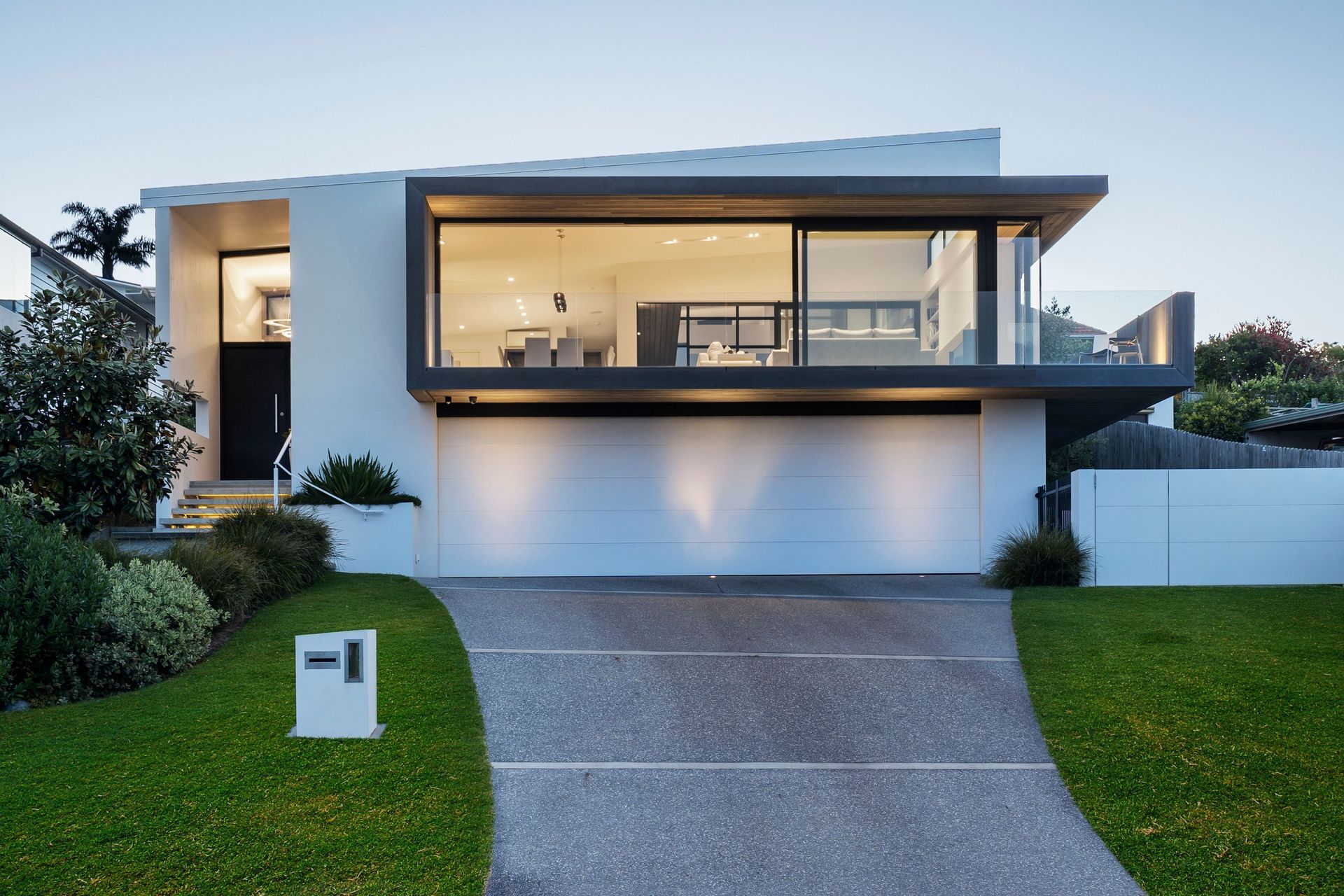 A double challenge of a steep, raking site and large garaging requirements led Guthrie to tuck the spacious basement underneath and lift the level of the building to create a single-level, four-bedroom residence that maintains its privacy from the road below and celebrates its fantastic ocean views.