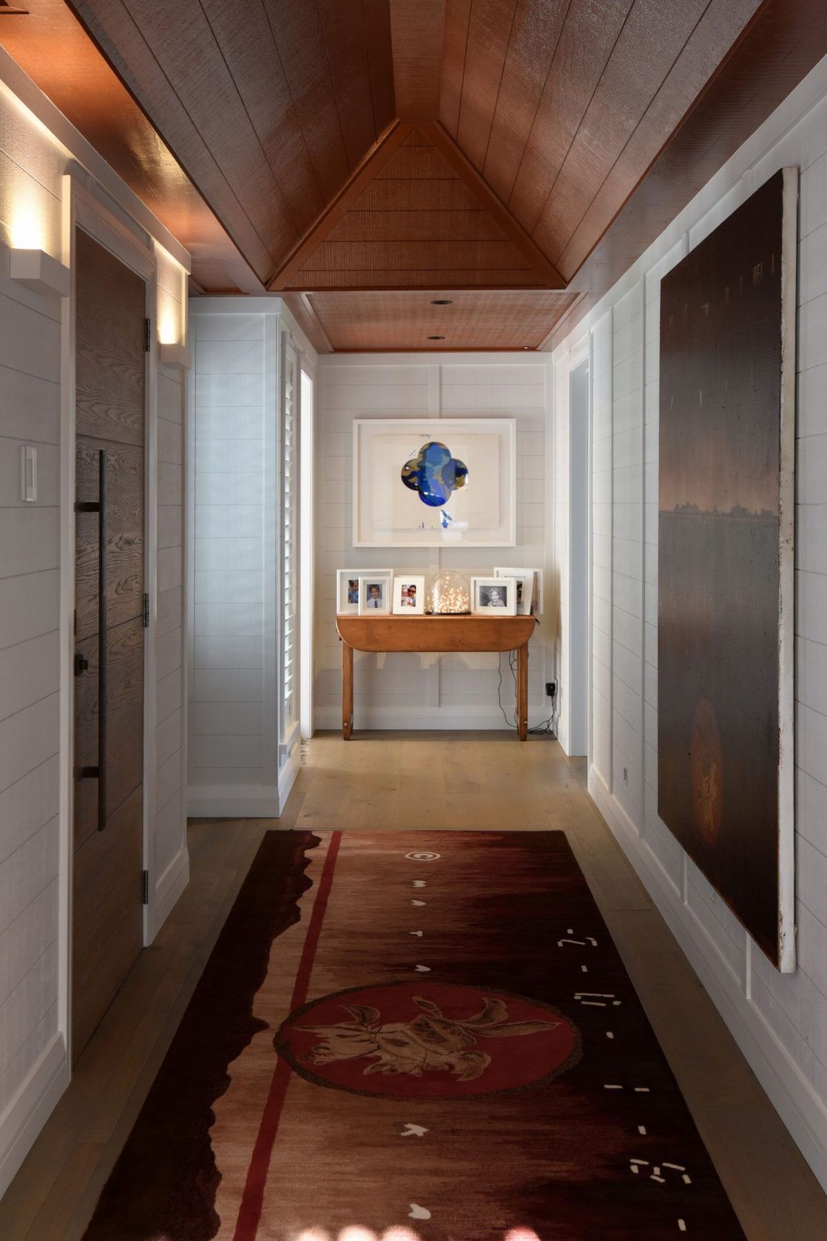 ArchiPro Project Summary - A relaxed family home designed around a central courtyard, featuring a swimming pool and scenic views of the Sandspit Estuary, utilizing band sawn plywood and timber elements for a lodge-style appeal.