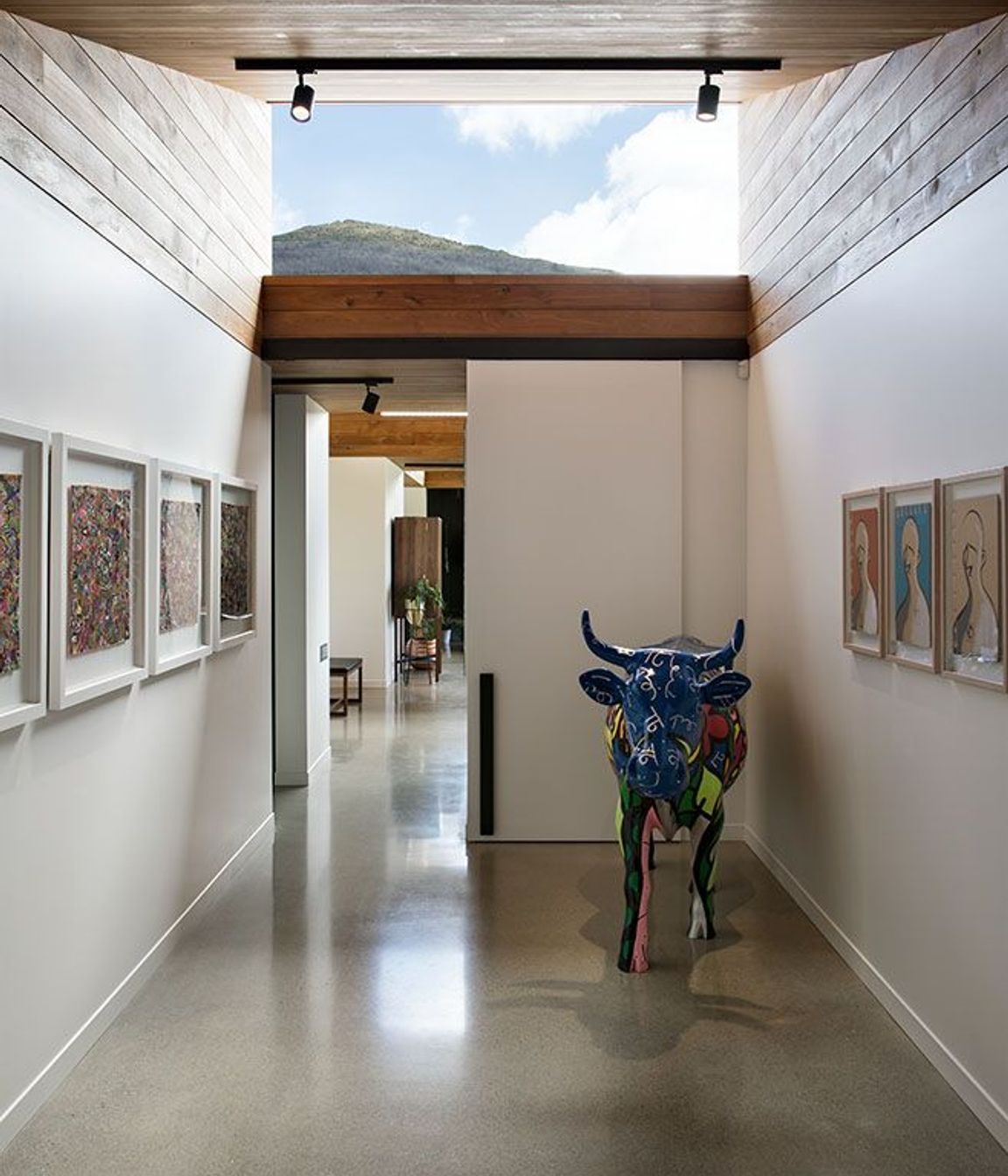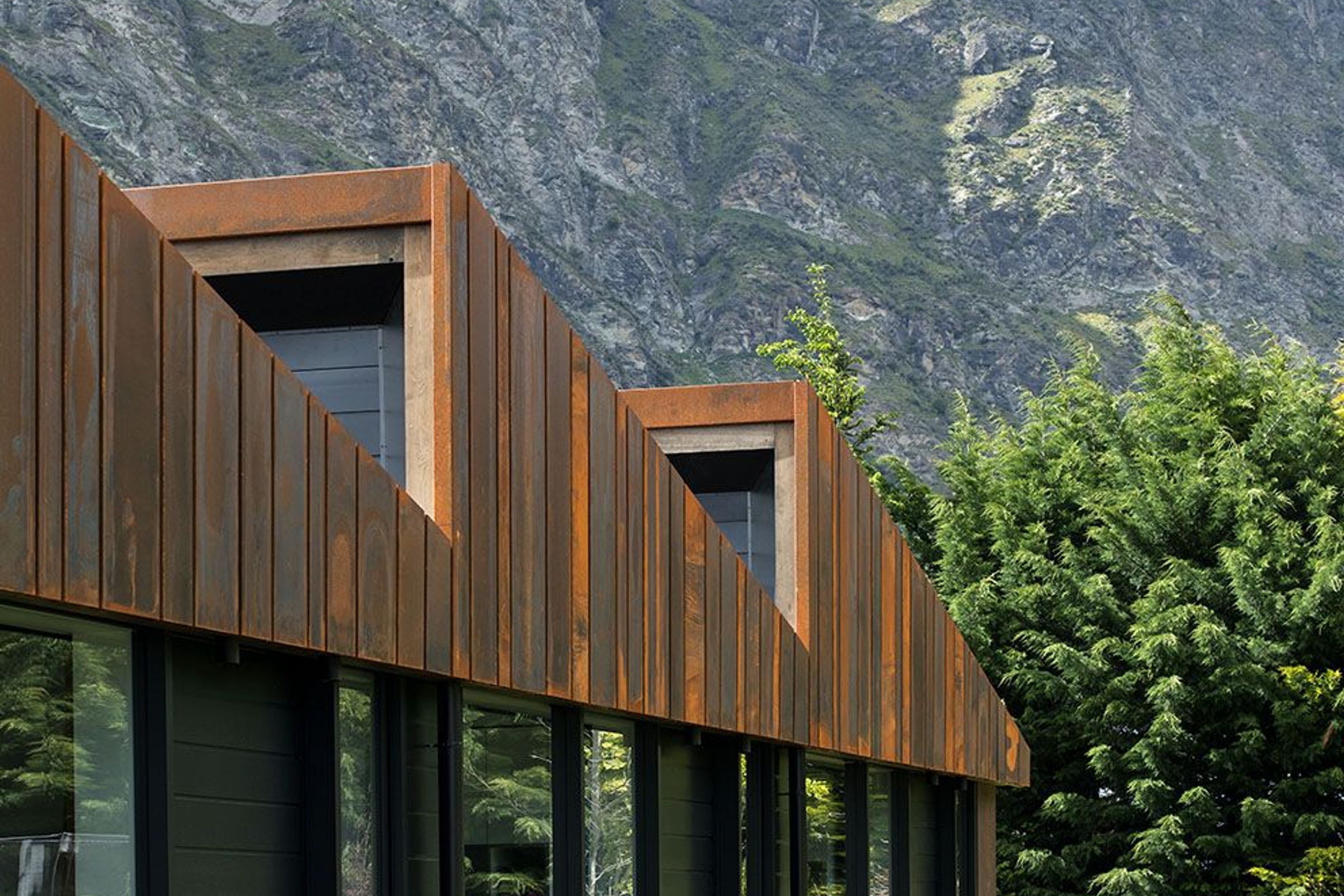 ArchiPro Project Summary - A stunning family residence in Queenstown, featuring a unique sawtooth roof design that harmonizes with the alpine landscape, offering a blend of independent living spaces and communal areas, while showcasing a collection of art.