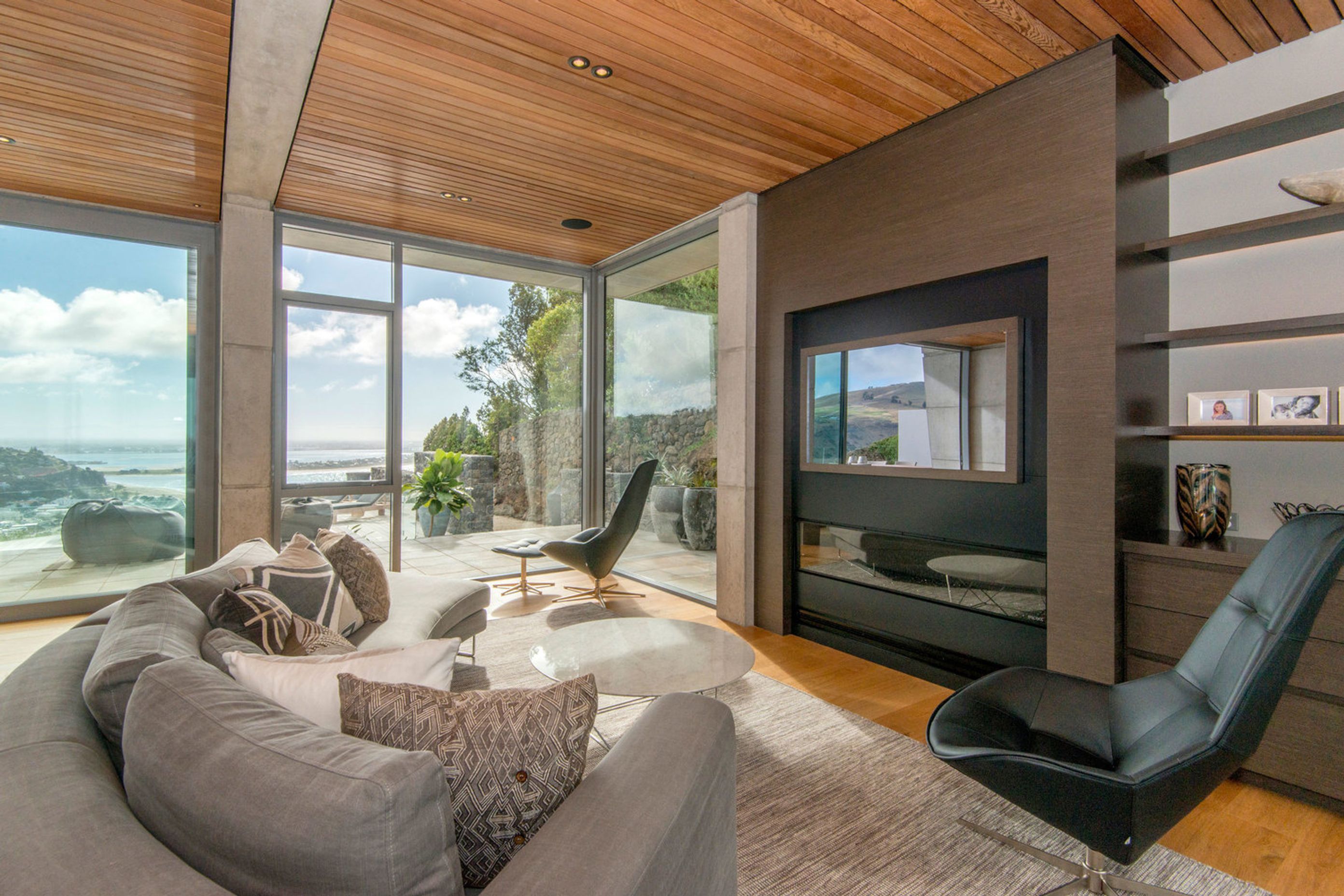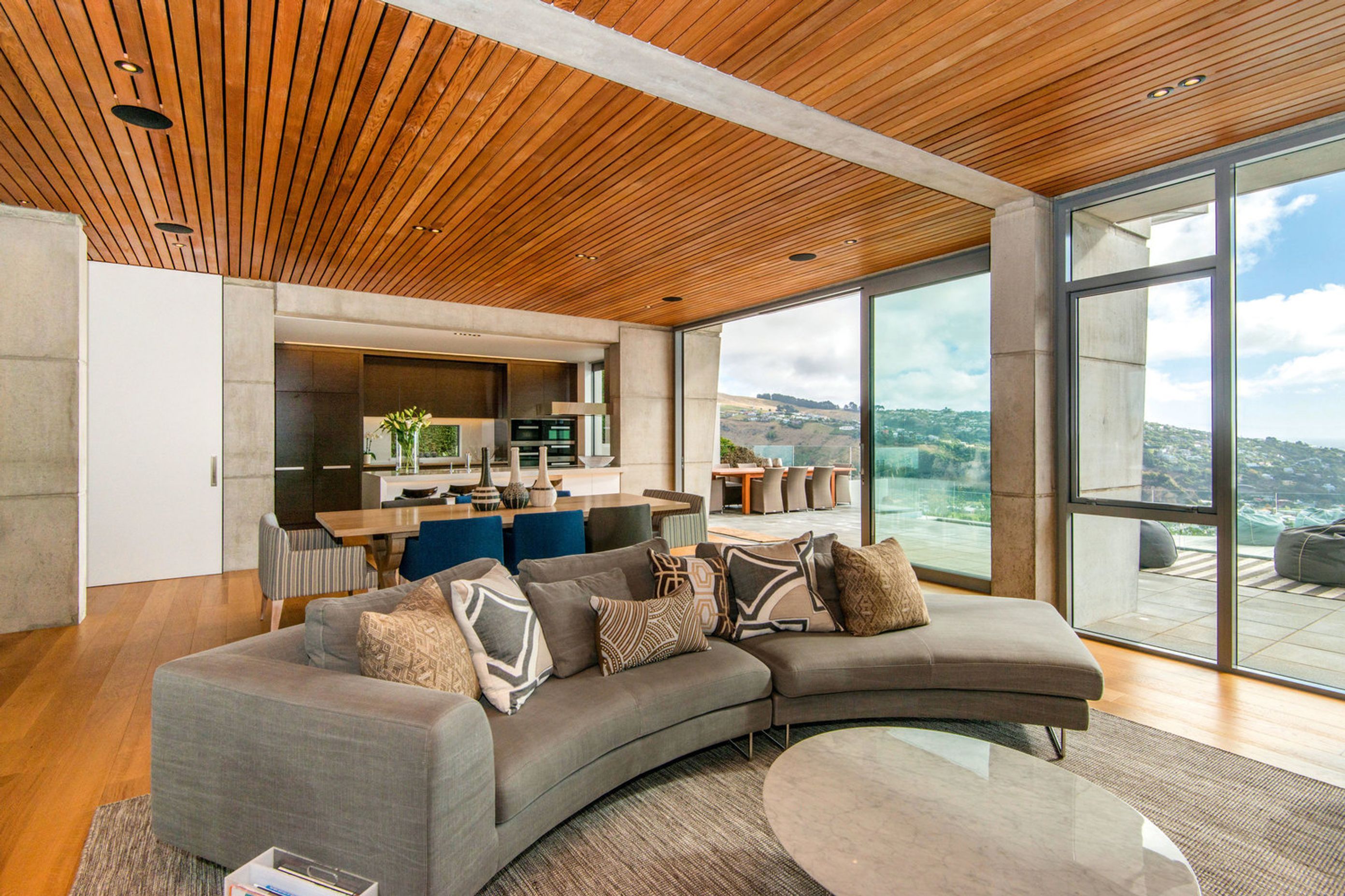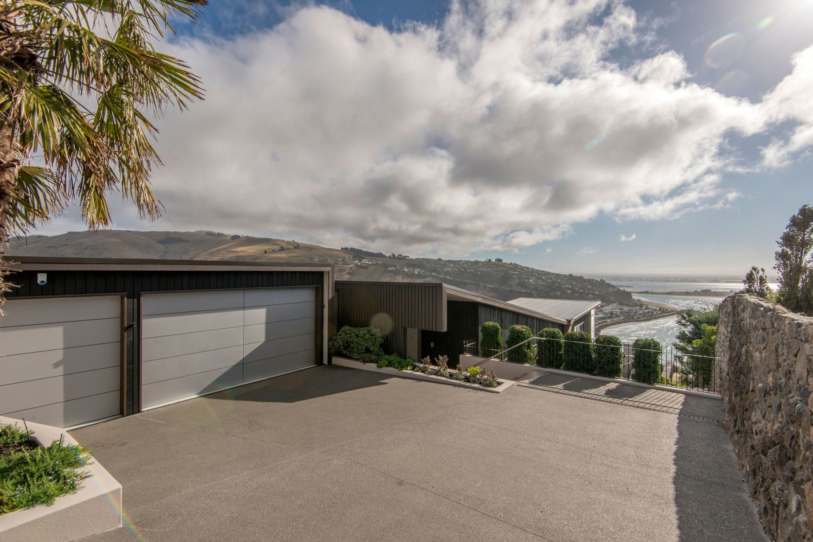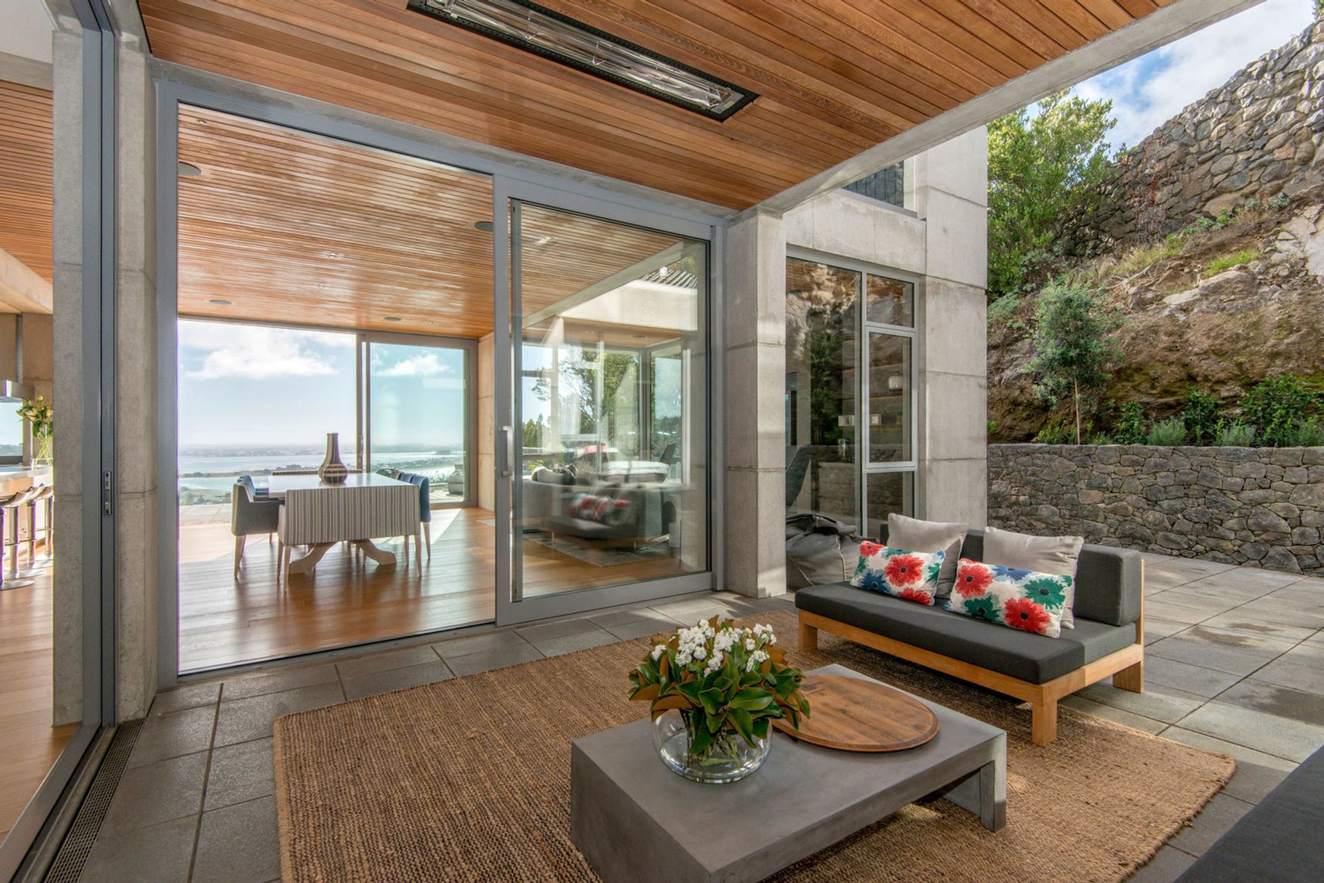 ArchiPro Project Summary - Award-winning Scarborough Residence designed for family living, featuring robust in-situ concrete and structural steel, stunning views of Sumner and the mountains, and thoughtfully designed outdoor spaces.