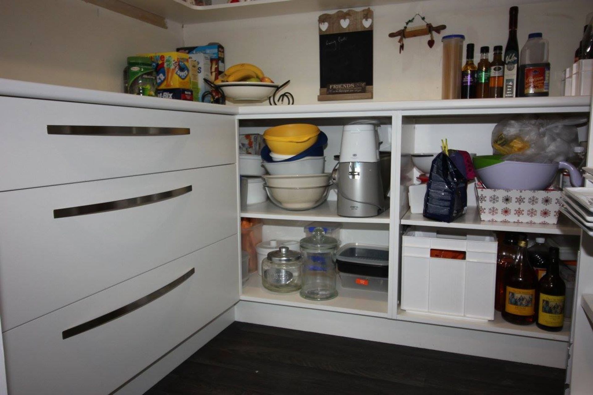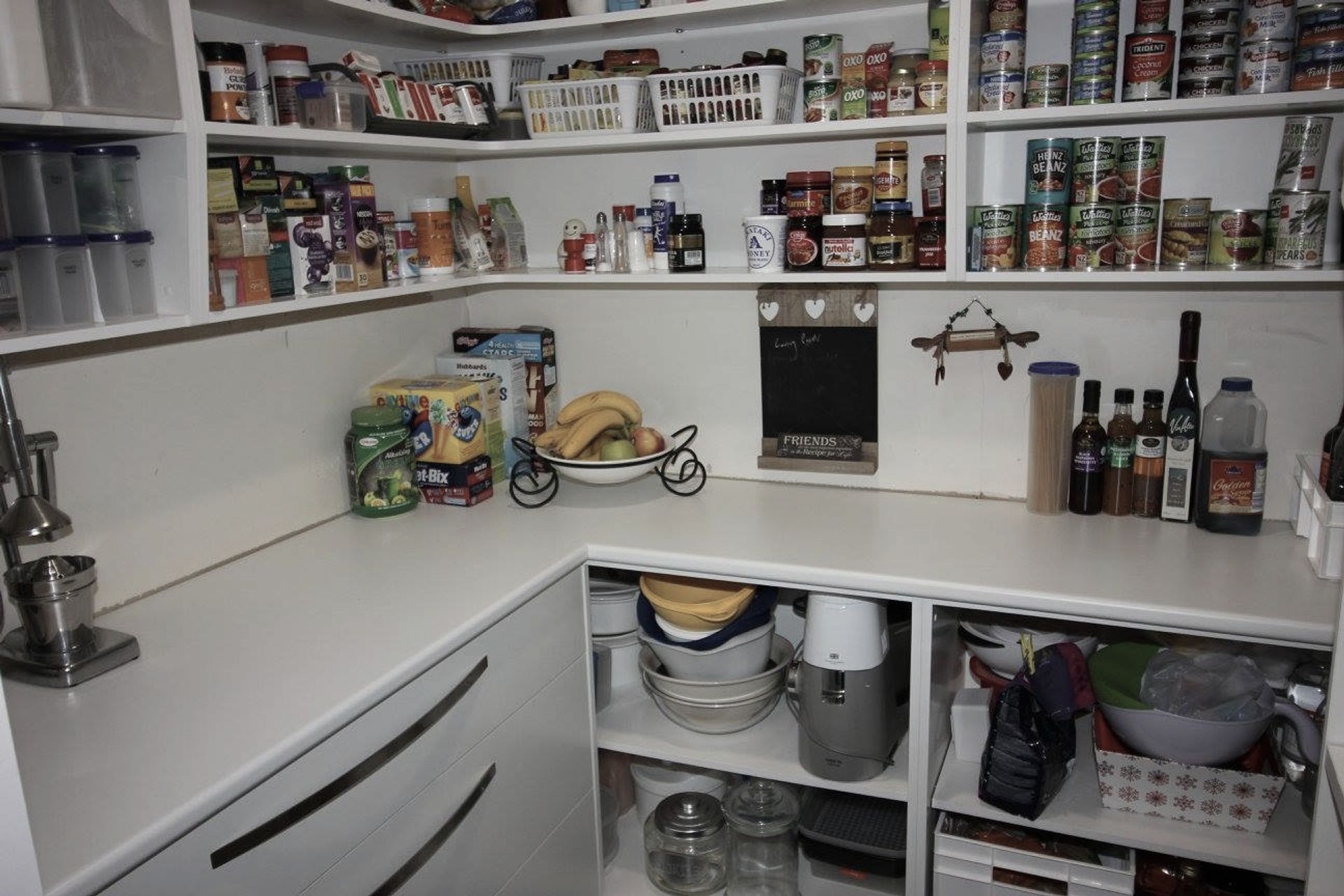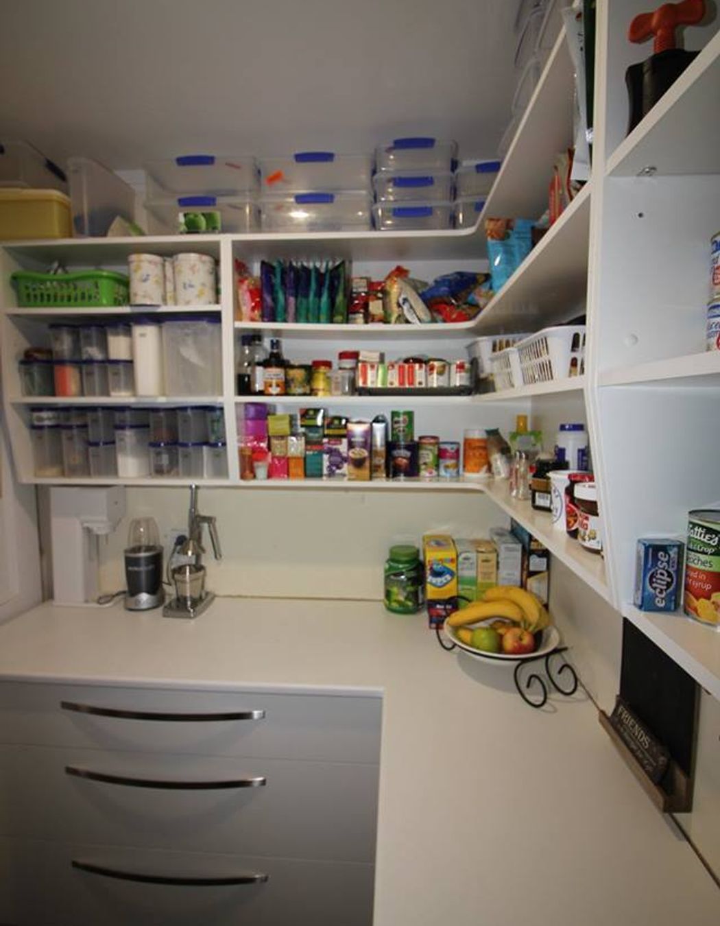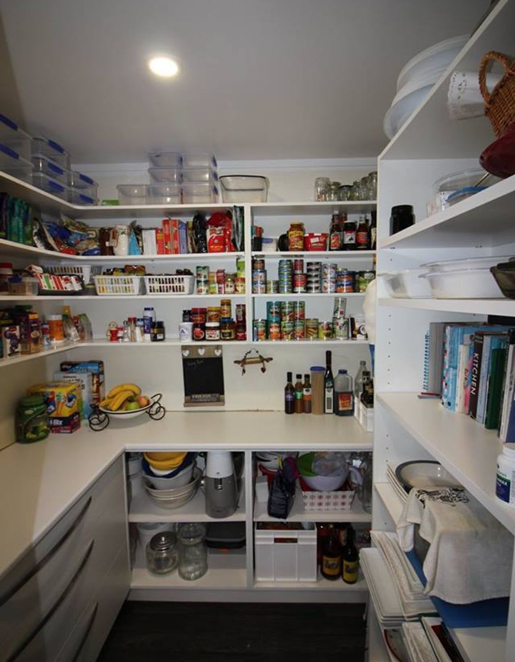 ArchiPro Project Summary - Elegant walk-in pantry featuring a sleek white board finish, designed to enhance functionality and aesthetics in your kitchen space.