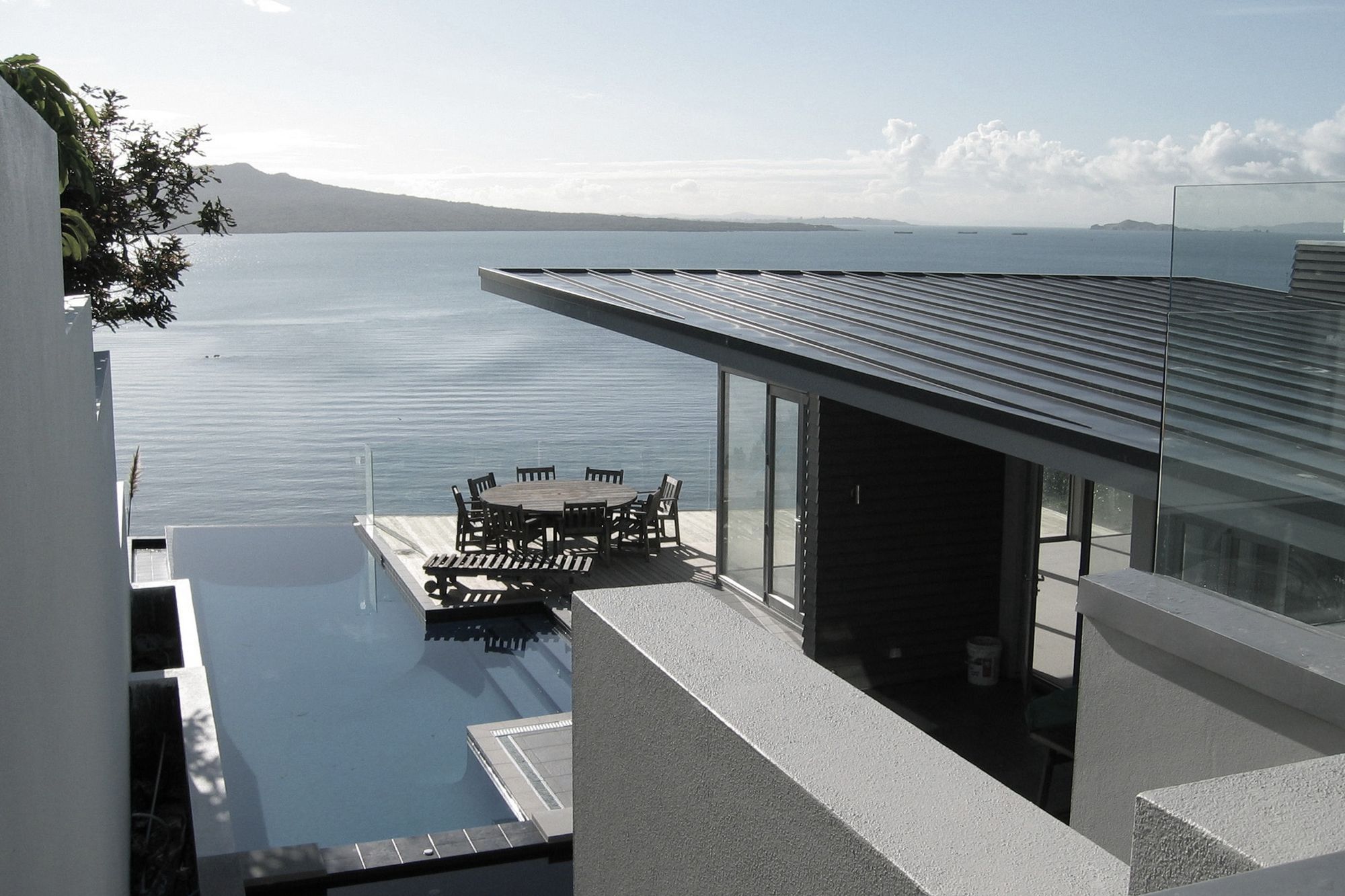 ArchiPro Project Summary - A stunning clifftop residence designed to maximize breathtaking views of the Hauraki Gulf and Rangitoto Island, featuring a functional layout with entertaining spaces, a guest suite, and seamless indoor-outdoor living.