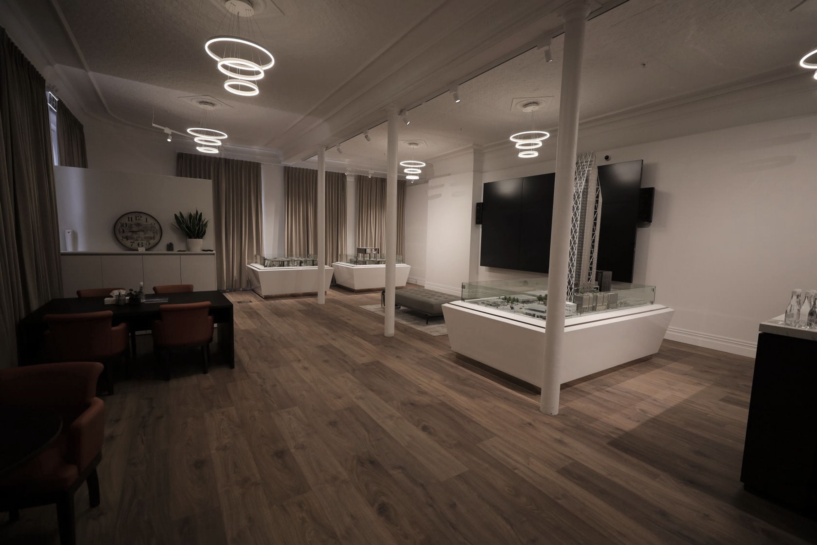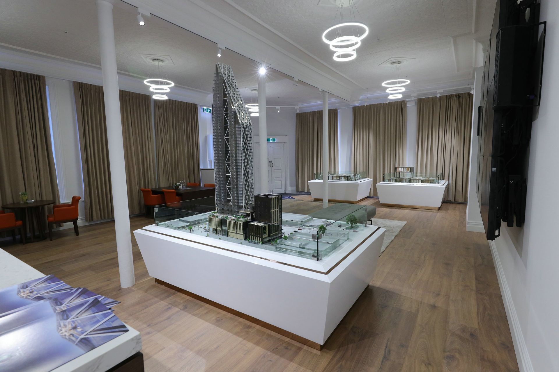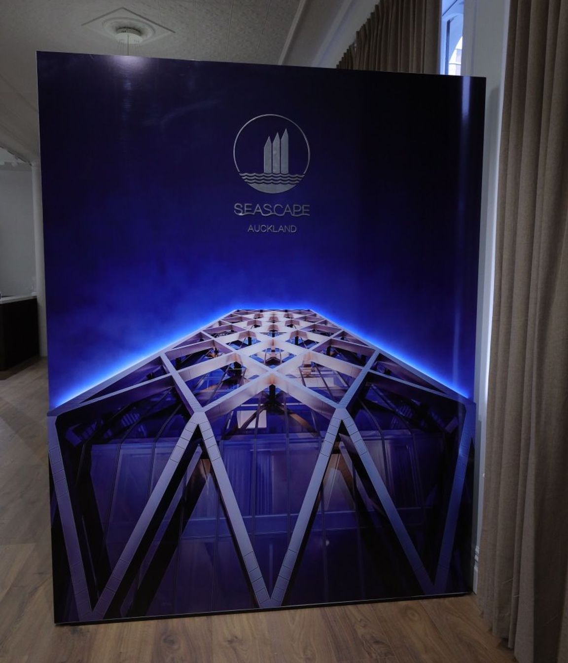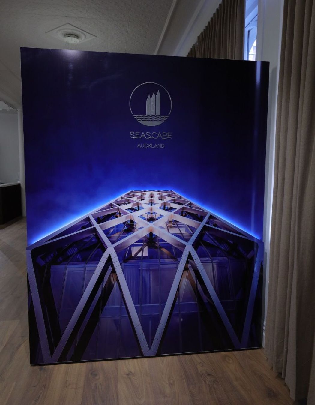 ArchiPro Project Summary - Seascape Apartments Display Suite: A landmark residential tower in downtown Auckland, standing 187 metres tall with 221 luxurious apartments, including 15 penthouses, complemented by a mixed-use podium featuring retail and commercial spaces.