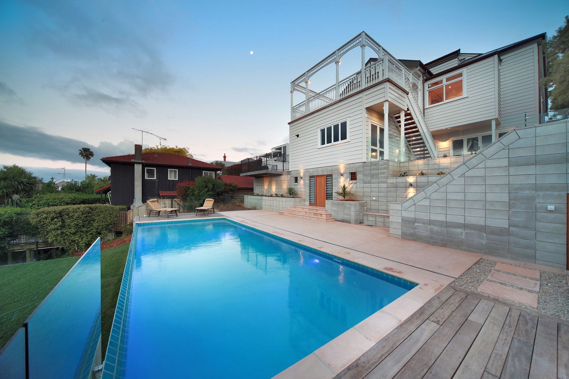 ArchiPro Project Summary - Renovation of a fire-damaged villa in Remuera into a luxurious 5-bedroom executive home with modern amenities, including a home theatre, expansive swimming pool, and beautifully landscaped grounds, valued at $4.6 million.