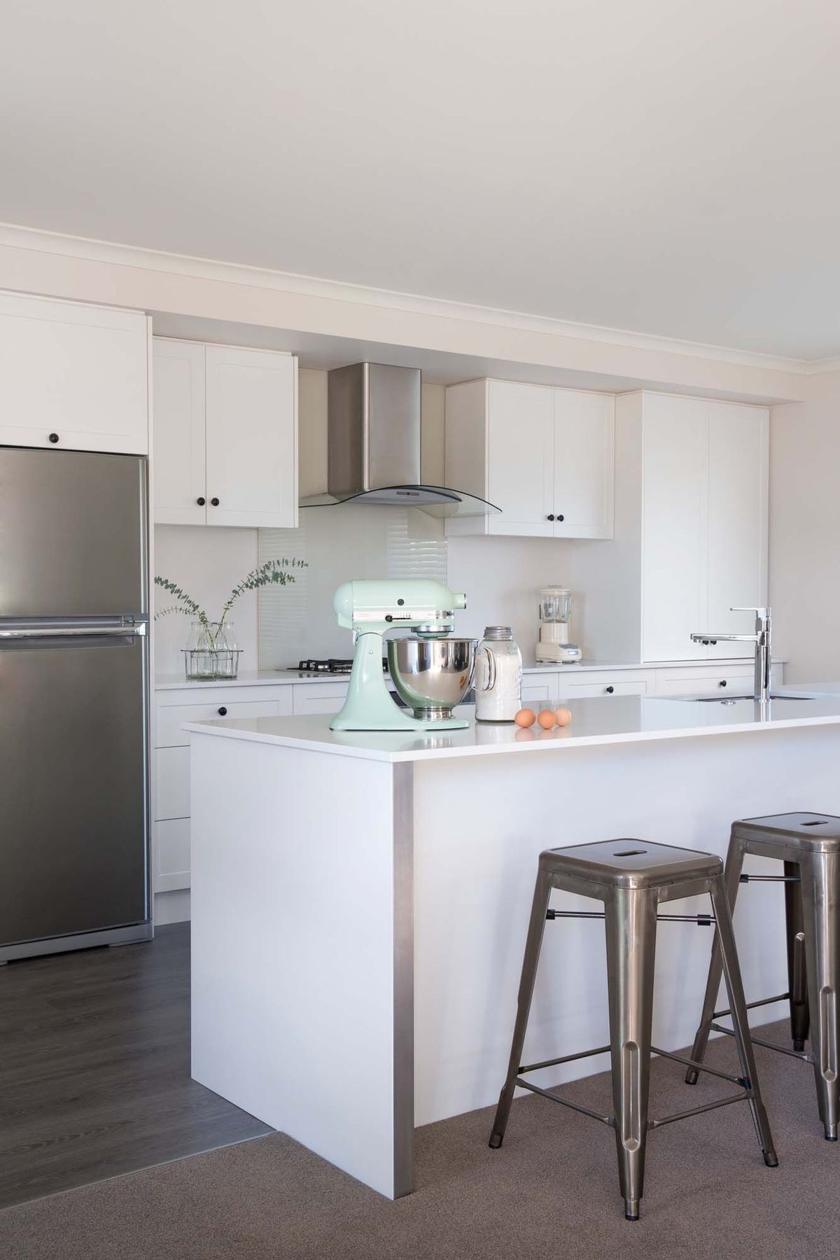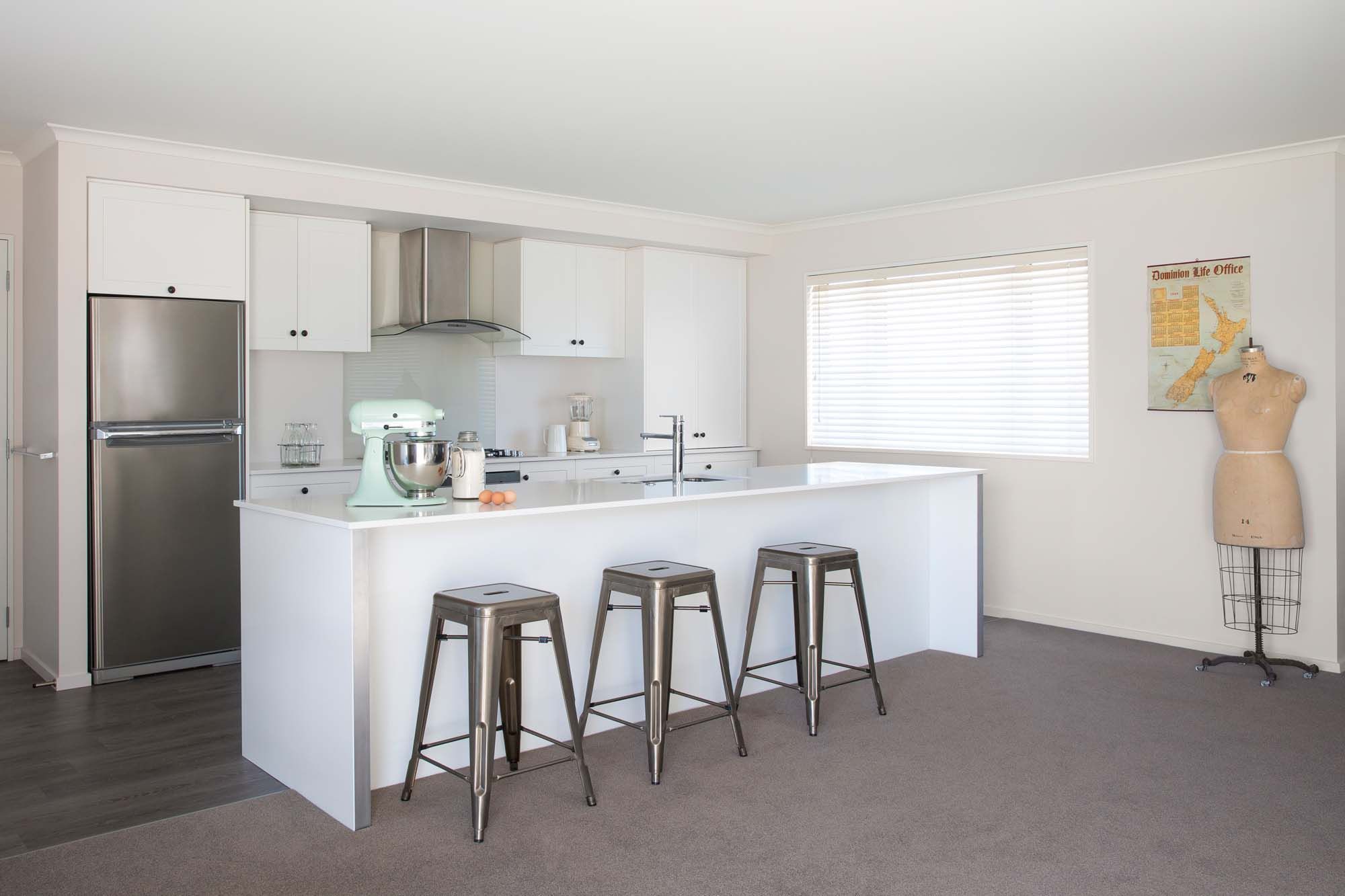 ArchiPro Project Summary - Elegant Shaker Style Kitchen featuring Kendal door style in a pristine Arctic White finish, located in the charming town of Rangiora, Canterbury.