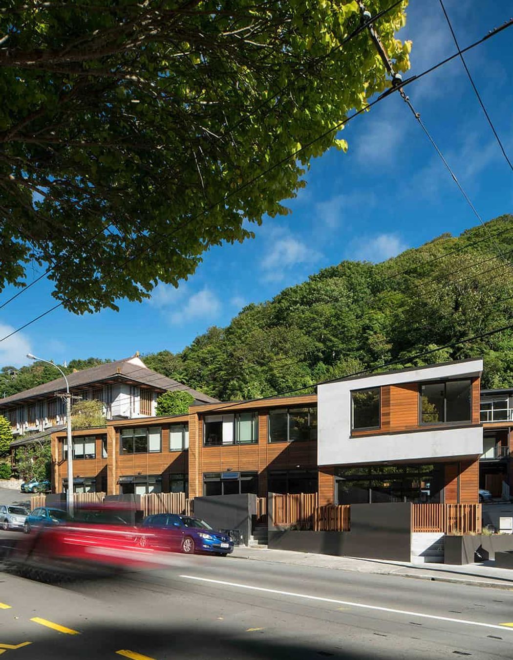 ArchiPro Project Summary - A modern multi-unit residential development featuring seven townhouses and 12 apartments, strategically located near Wellington CBD and the Botanic Gardens, designed with a focus on urban engagement and innovative planning solutions.