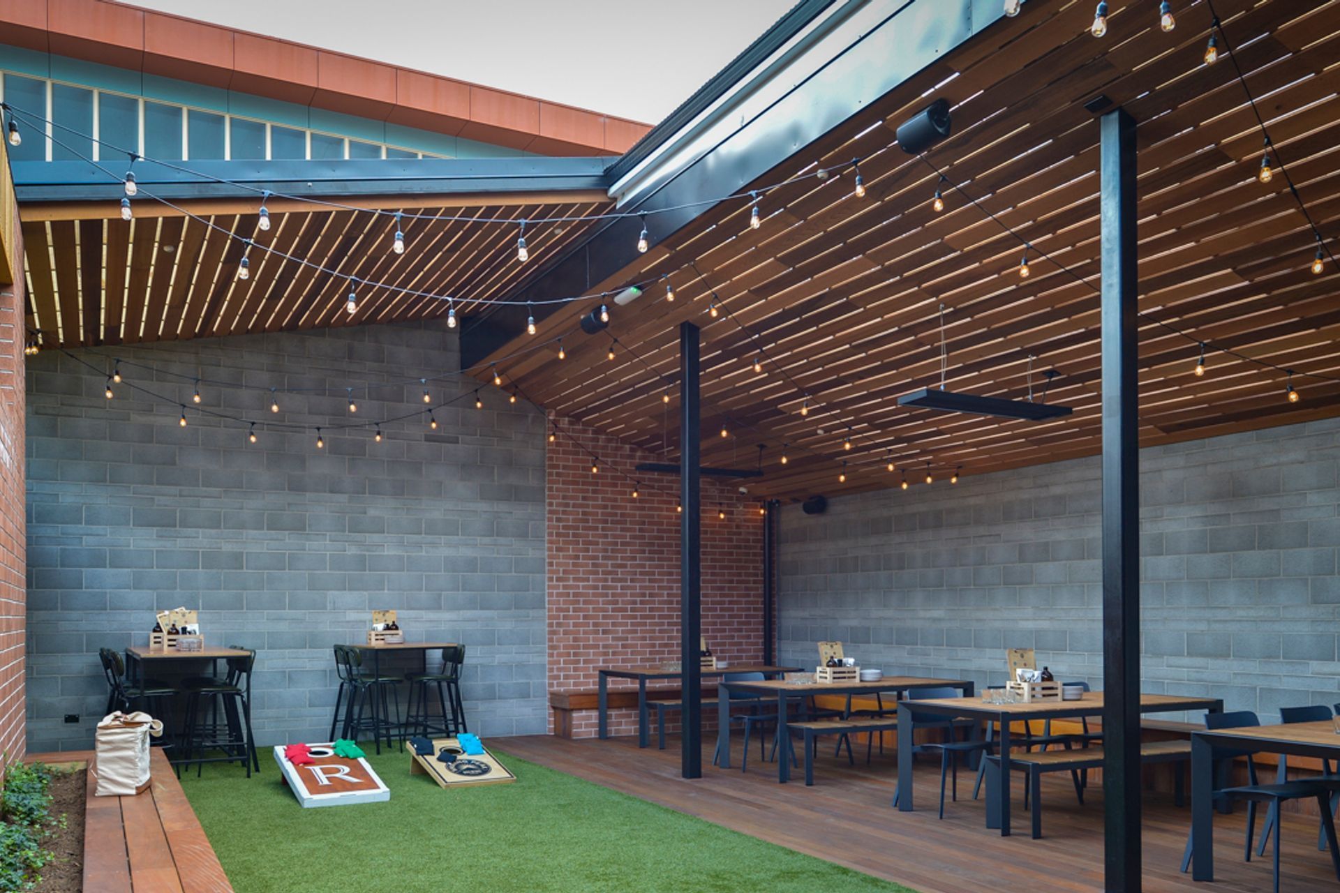 ArchiPro Project Summary - Adaptive reuse of an old warehouse transformed into Shining Peak Brewing, featuring a craft brewery, restaurant, bar, and a versatile courtyard with both fixed and retractable roofing, blending industrial charm with modern functionality.