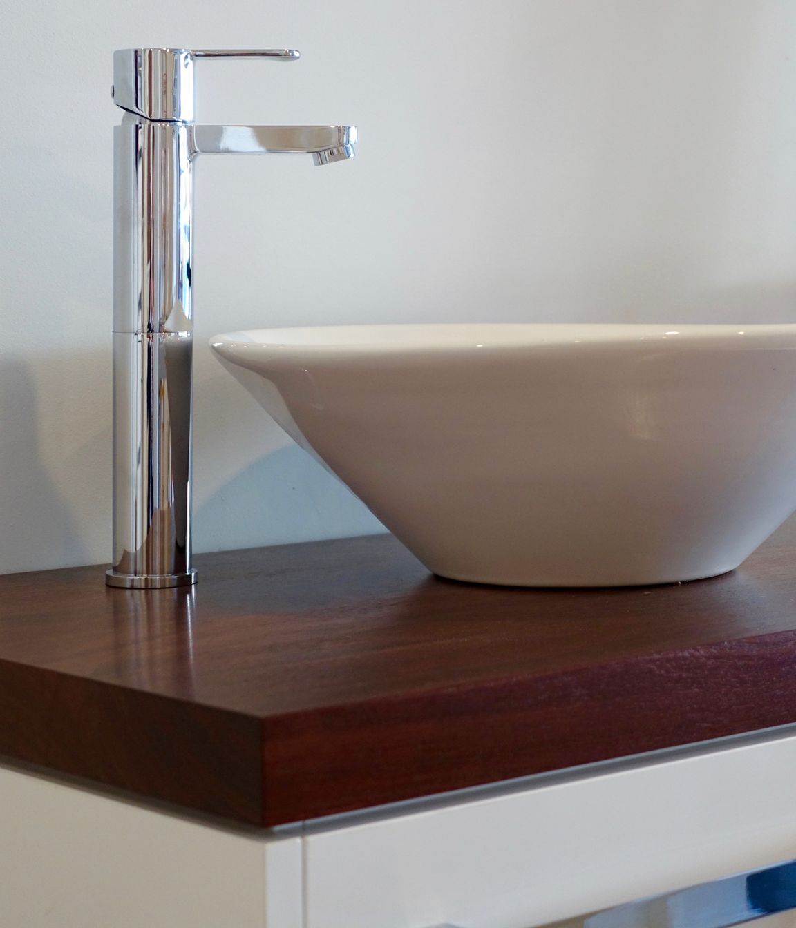 ArchiPro Project Summary - Showroom Bathroom featuring a diverse selection of materials for vanities, including wood, acrylic, natural stone, and marble, with comprehensive services from design to supply of bowls and tapware.