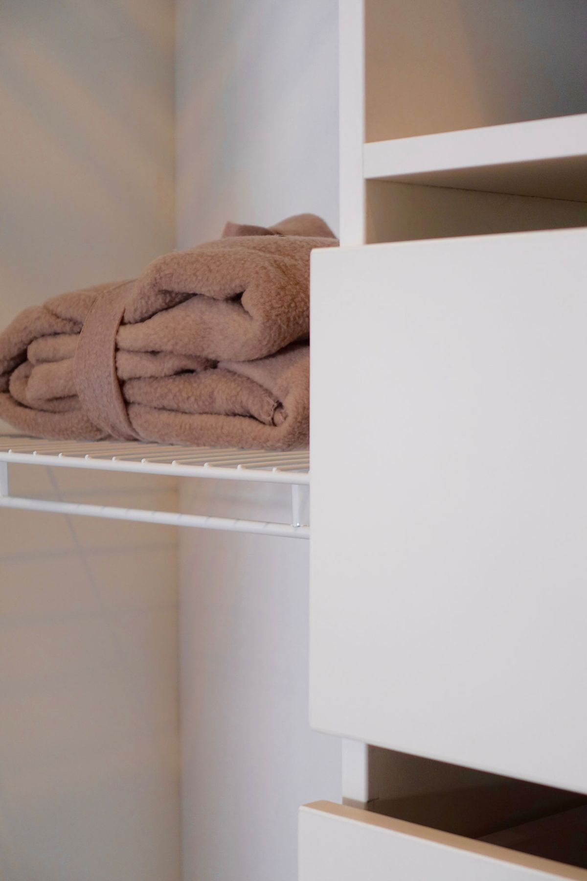 ArchiPro Project Summary - Showroom Wardrobe featuring stylish white painted doors, expertly kitted out by Homeplus Aburns in Dunedin, available for professional installation or flat pack delivery.