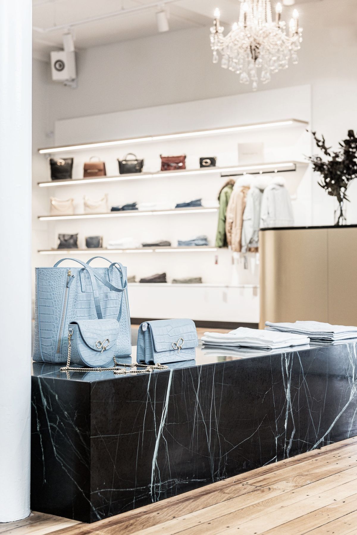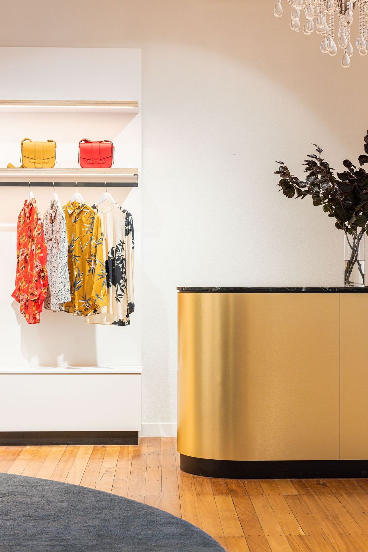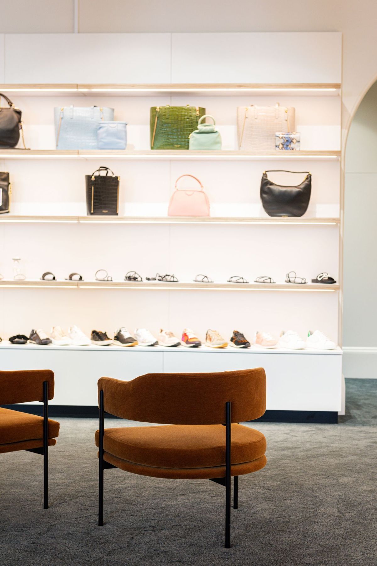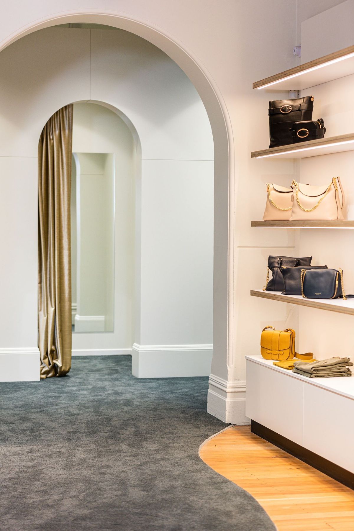 ArchiPro Project Summary - A modern boutique design for Sisters & Co Cambridge, blending high-end fashion with the historic charm of a 1908 Post Office building, featuring bespoke elements and luxurious finishes that enhance the store's unique character.