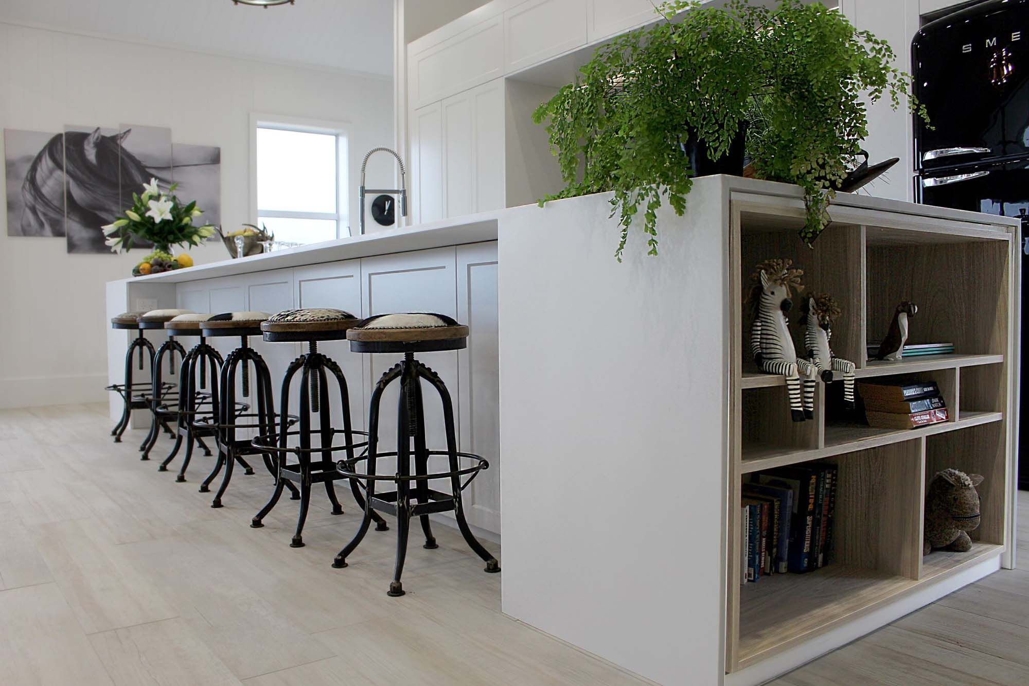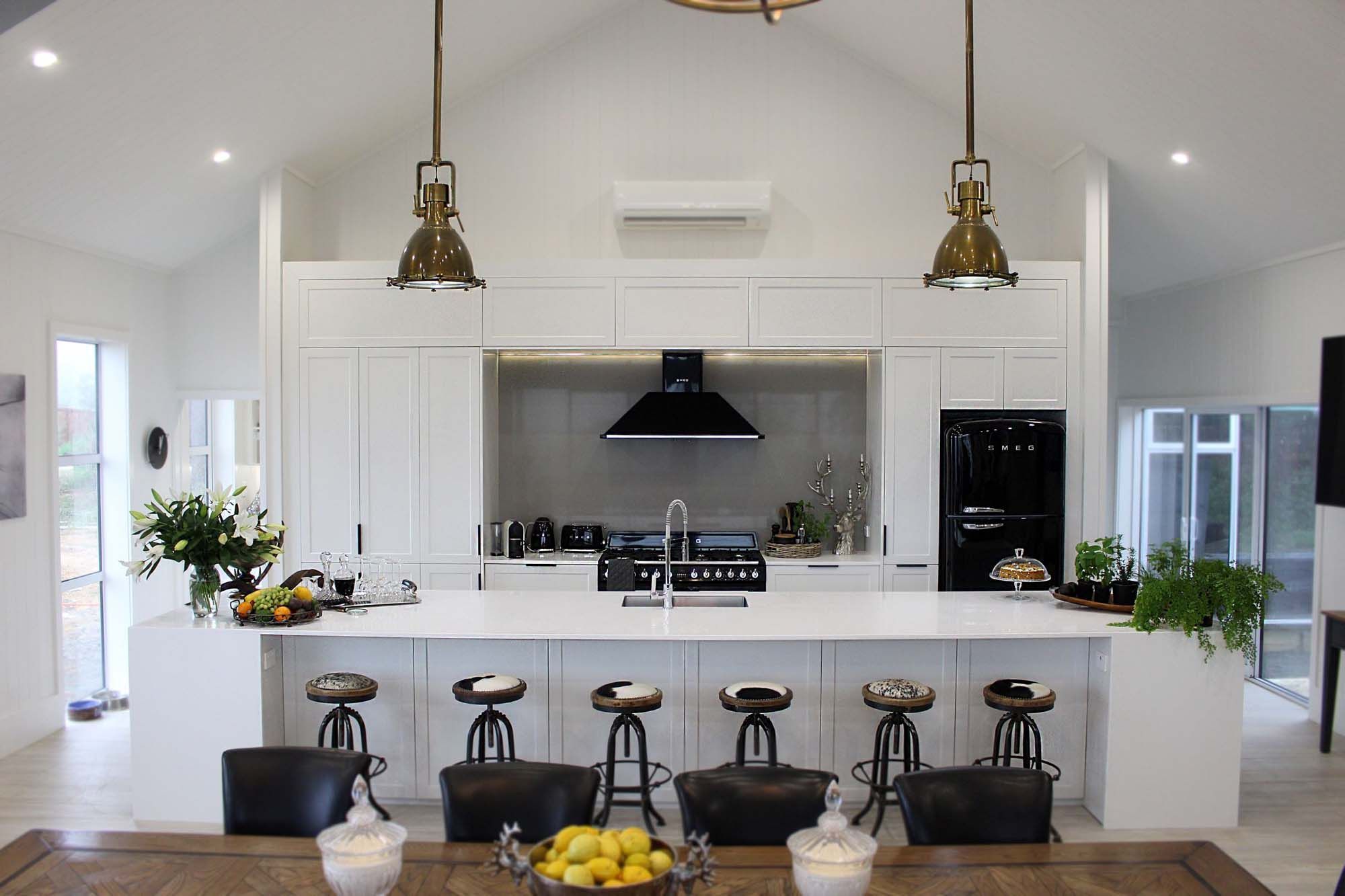 ArchiPro Project Summary - A sleek country barn style kitchen featuring Panelform’s Kendal profile door, designed by Alison Turner and installed by Counties Kitchens in Clevedon, Auckland, showcasing simplicity and clean lines for a modern aesthetic.