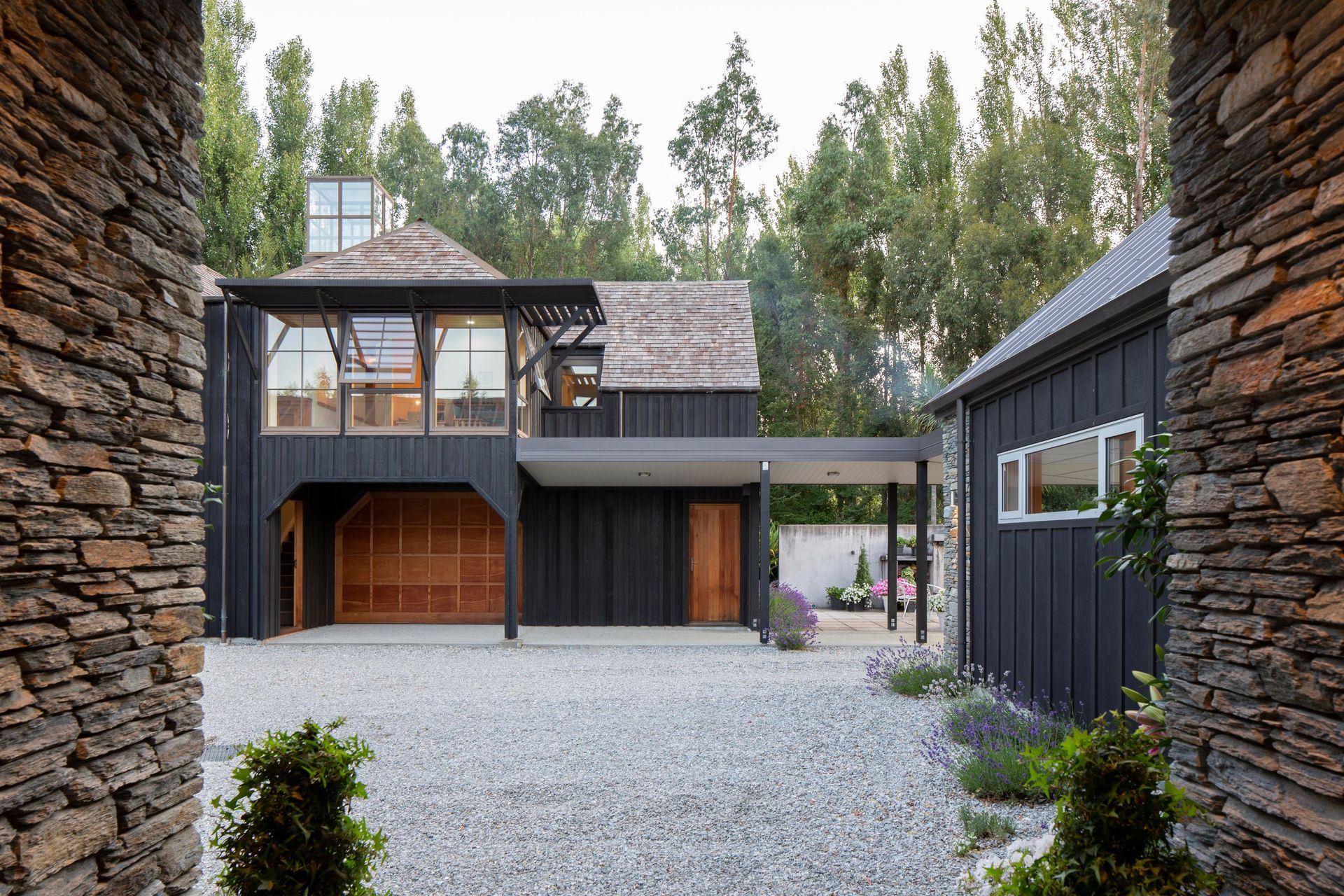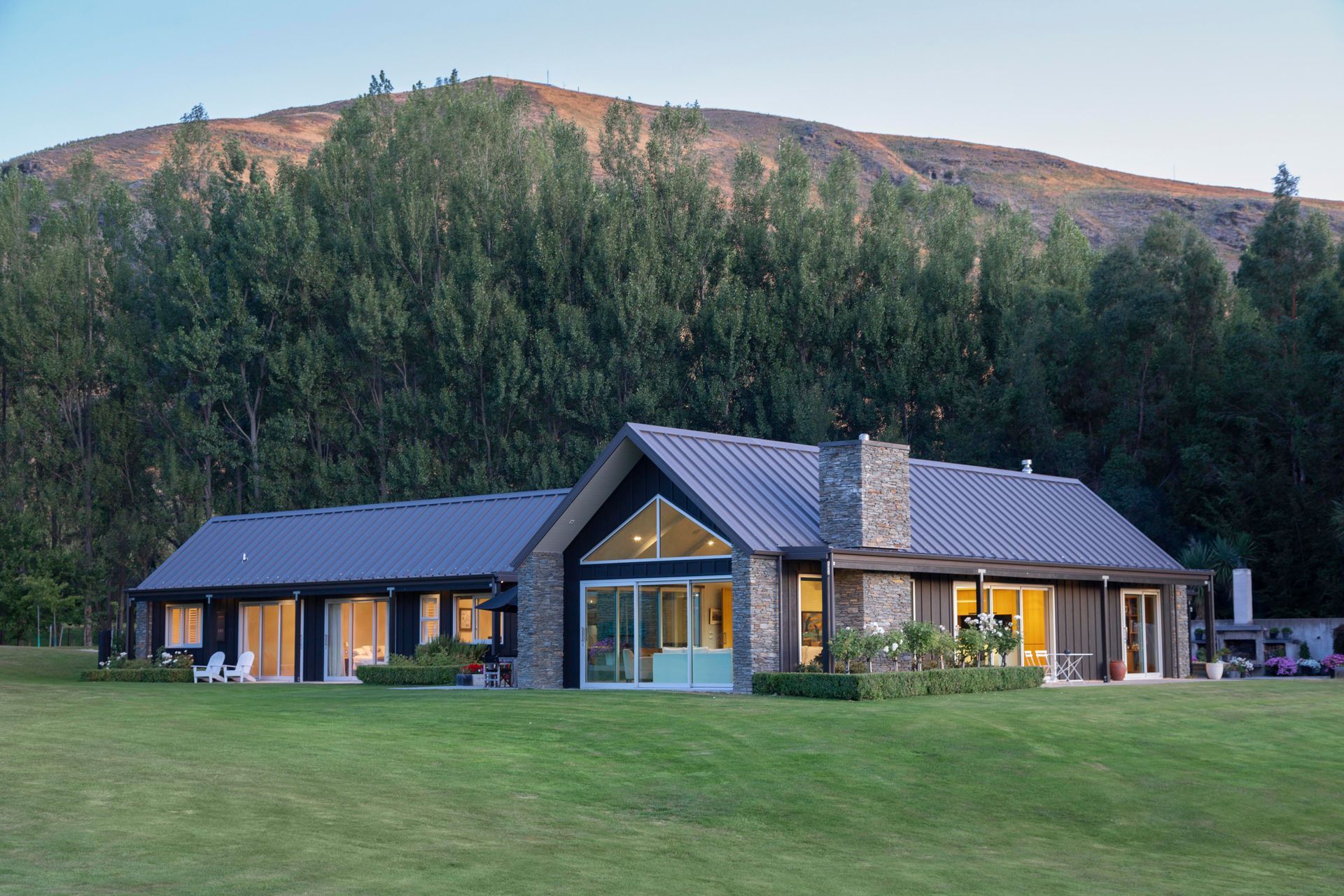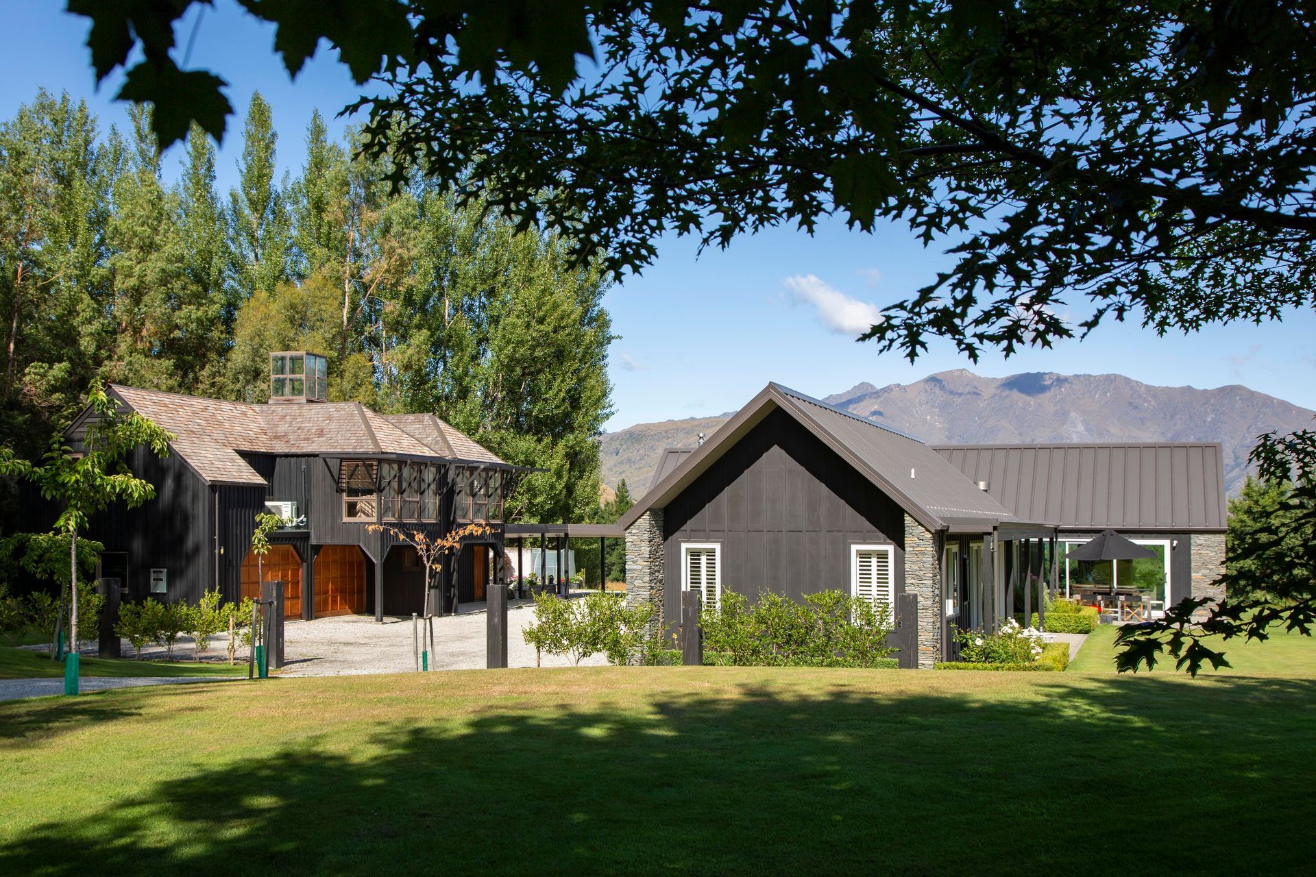 ArchiPro Project Summary - A stunning rural retreat in Queenstown featuring two independent dwellings connected by a covered walkway, seamlessly blending into the picturesque countryside.