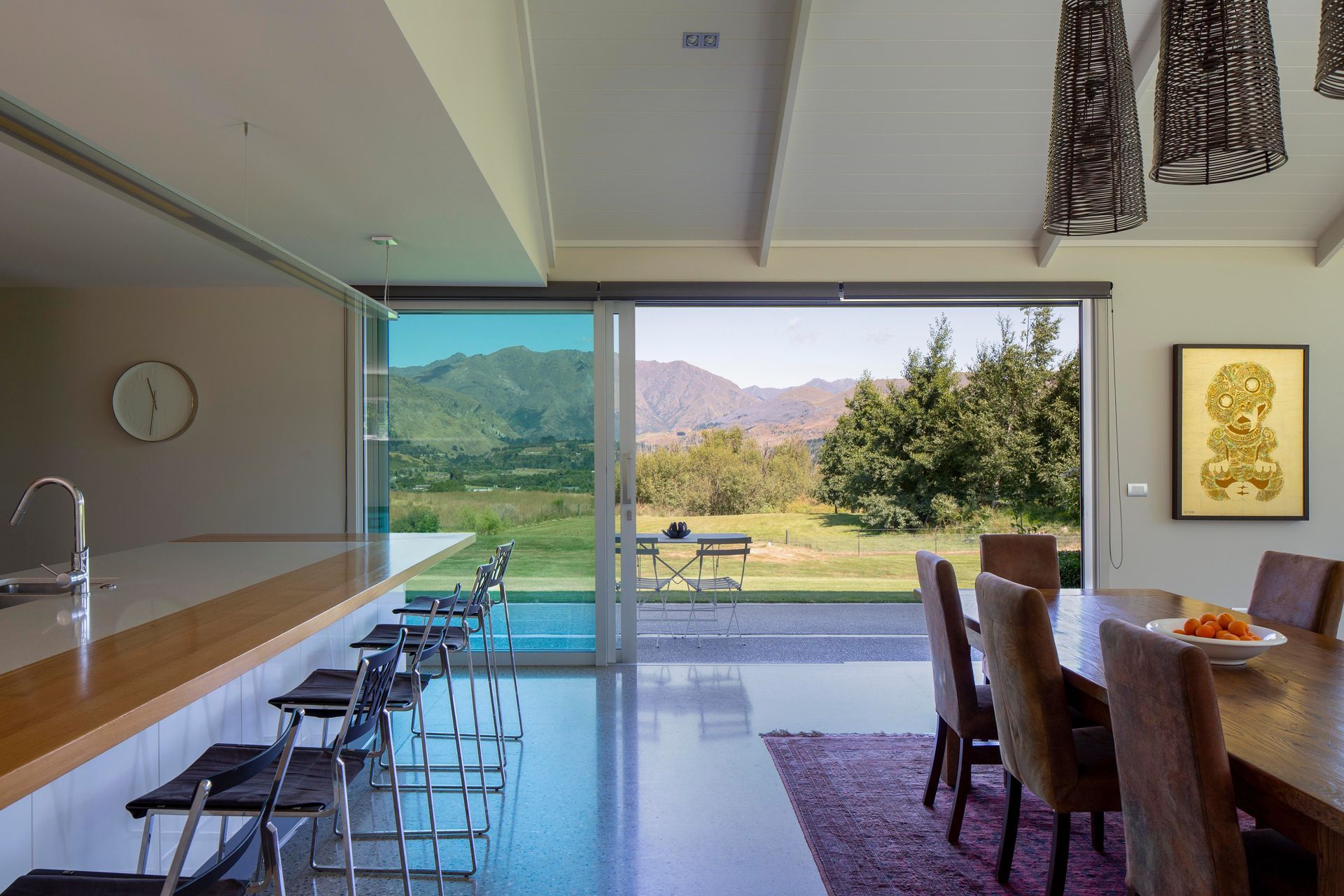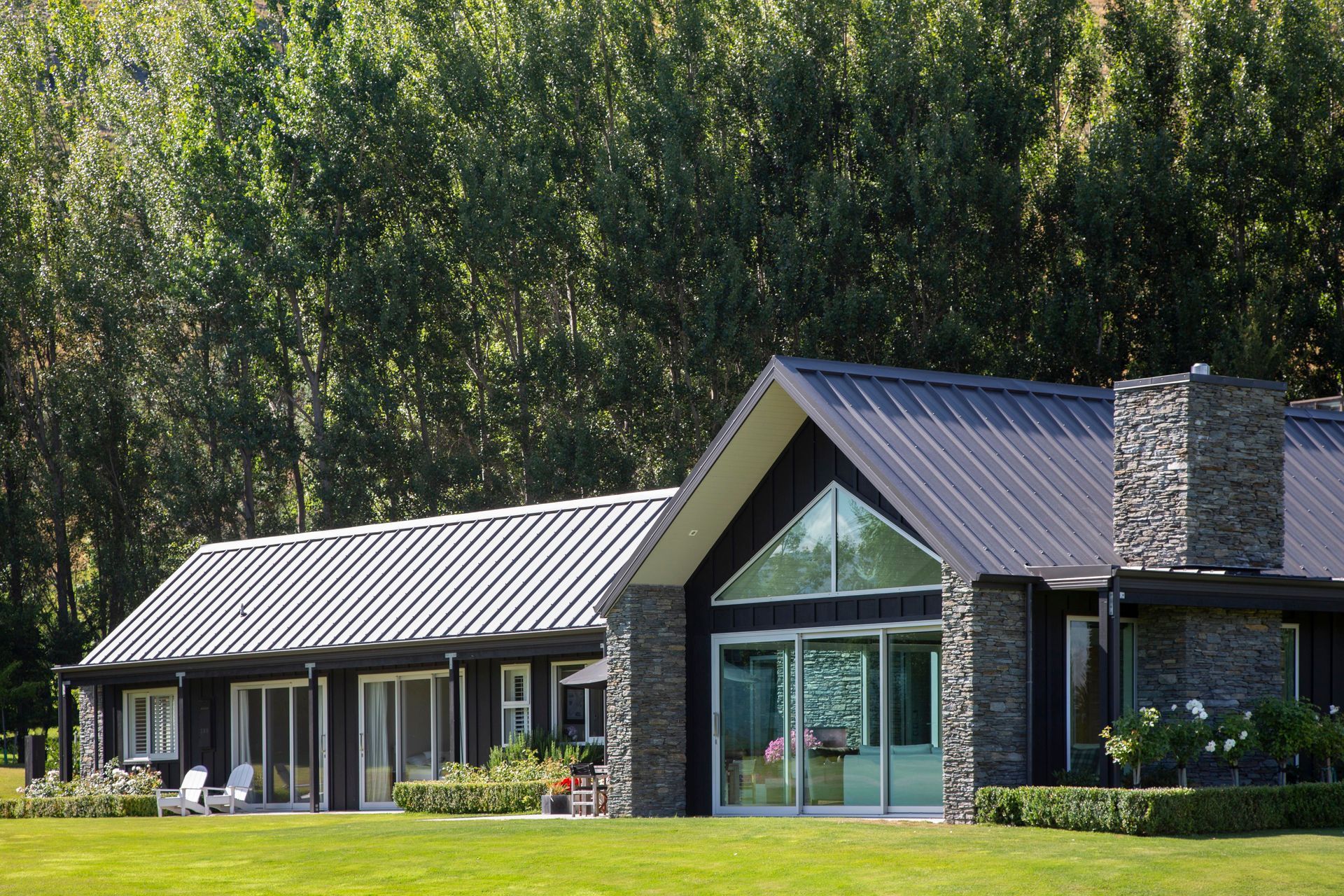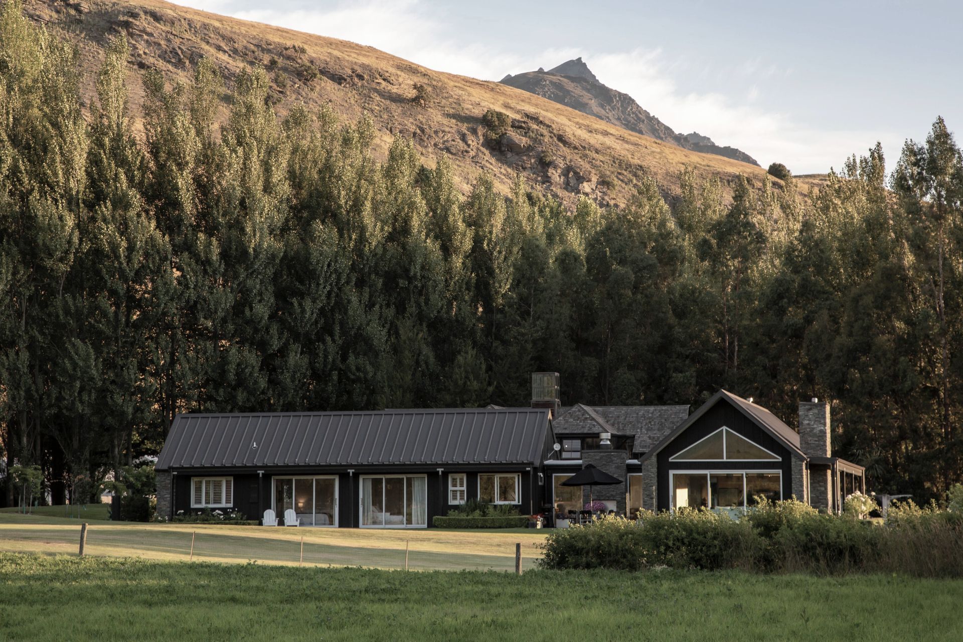 ArchiPro Project Summary - A stunning rural retreat in Queenstown featuring two independent dwellings connected by a covered walkway, seamlessly blending into the picturesque countryside.