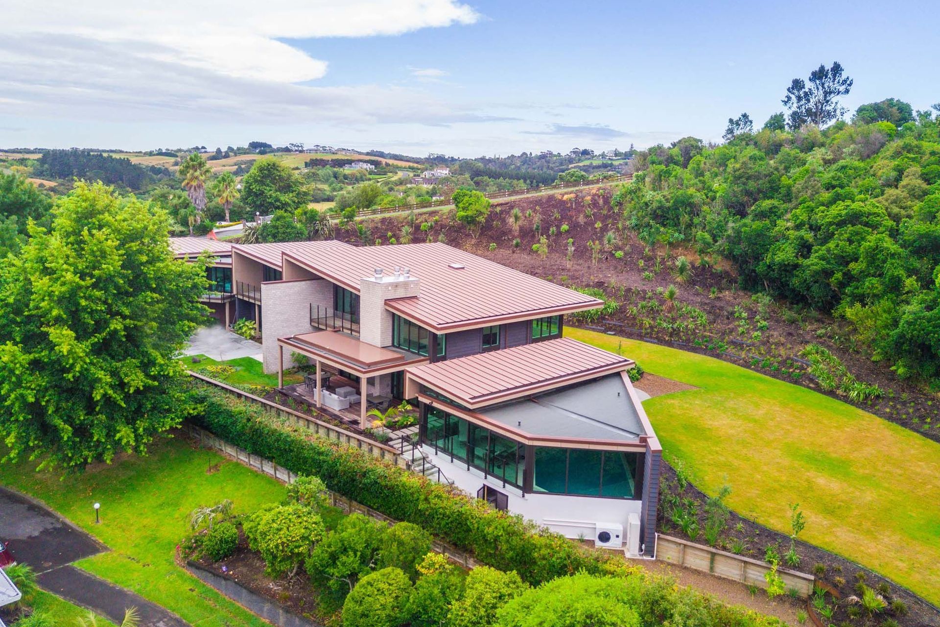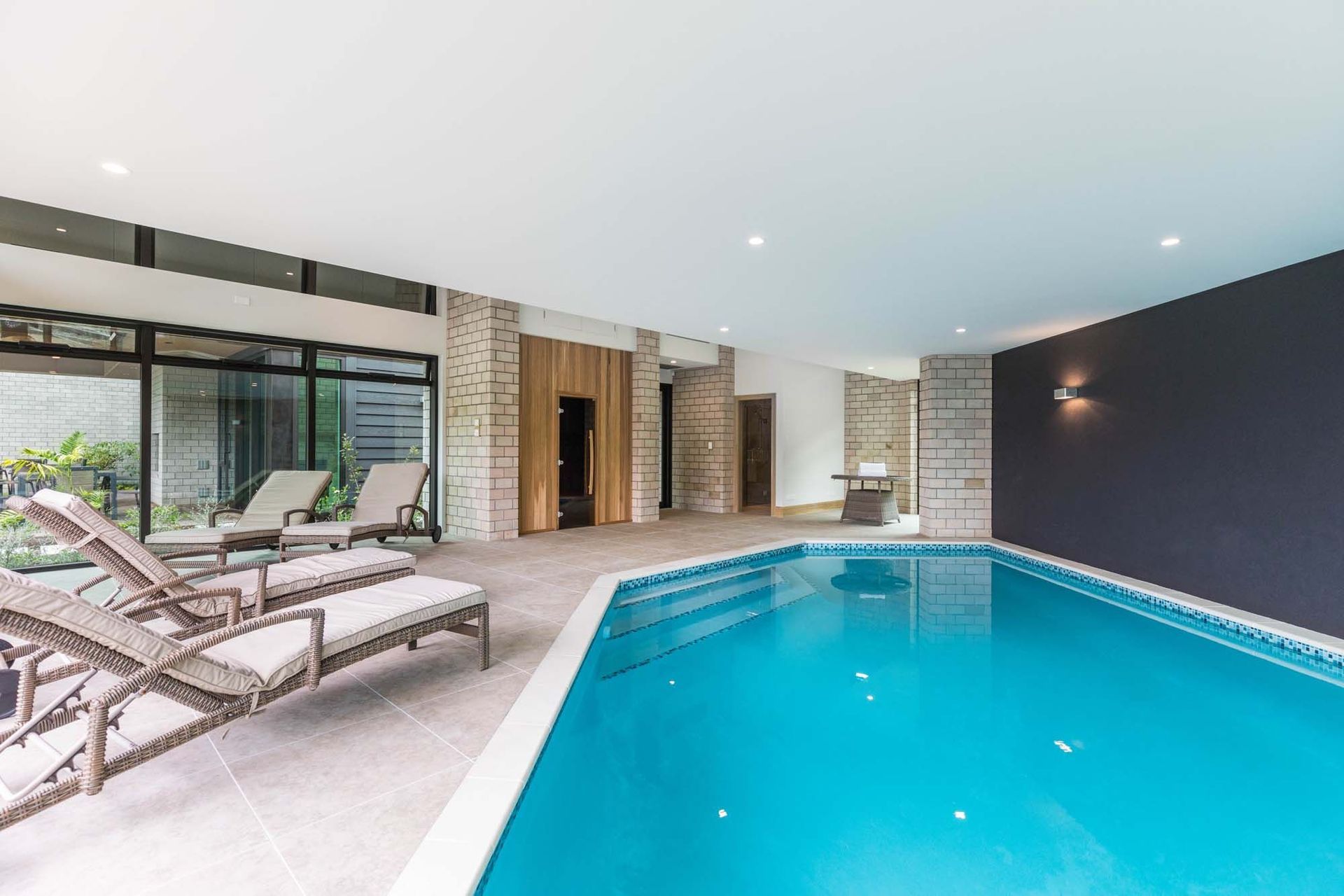 ArchiPro Project Summary - A luxurious 1000sqm residence featuring Canadian Red Cedar, Brick, and Aluminium, with 6 bedrooms, 7-8 bathrooms, variable living spaces, a dedicated guest wing, and an indoor swimming pool with a Finnish Sauna.