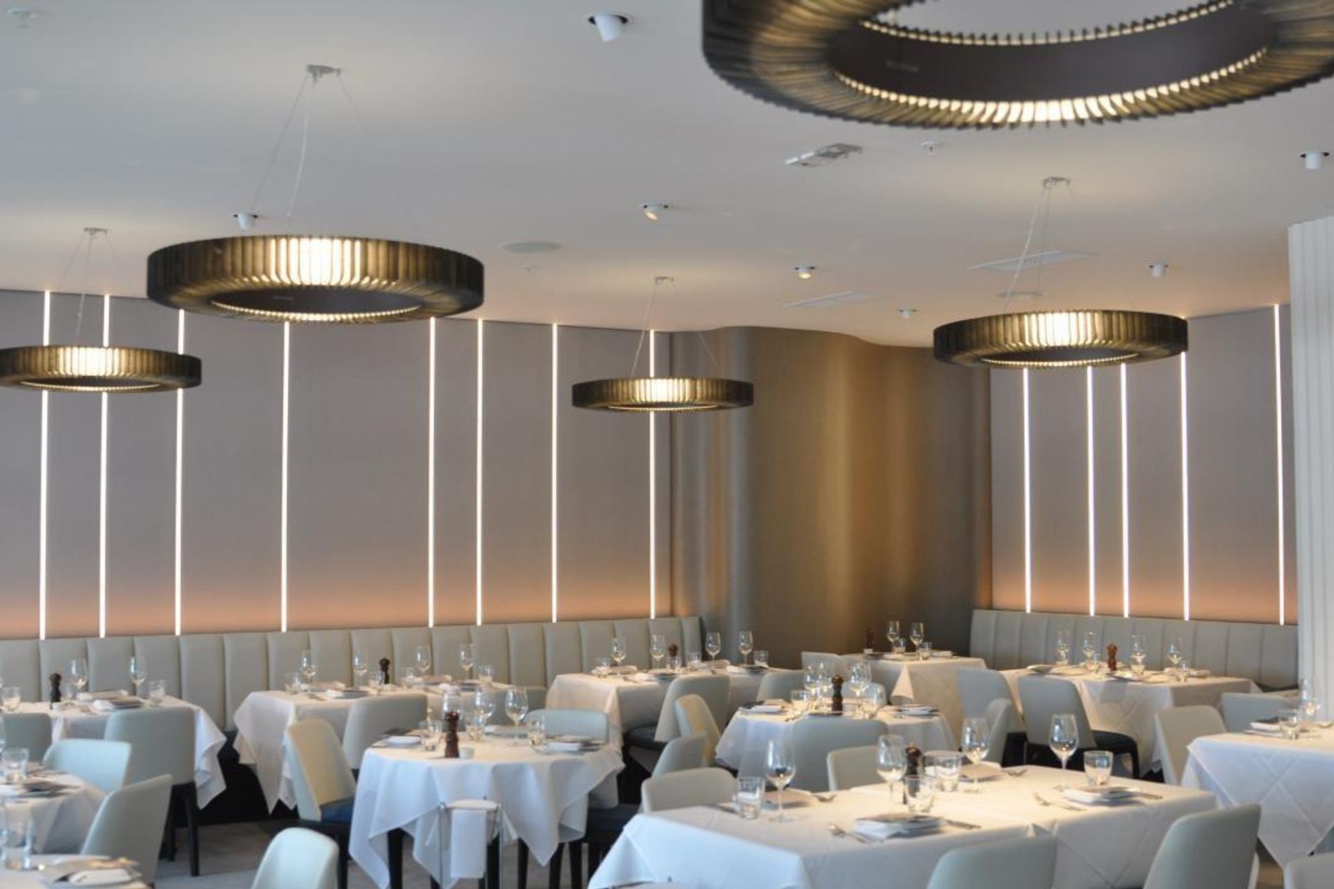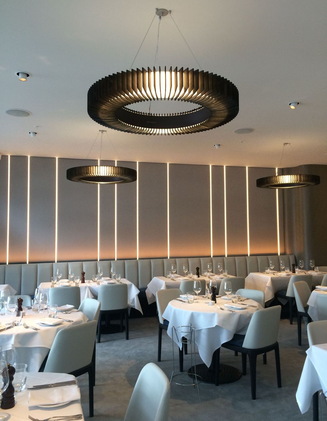 ArchiPro Project Summary - Soul Bar features elegant Fin lights and a captivating LED wall installation, designed by James Russ, creating a sophisticated ambiance that enhances the dining experience.