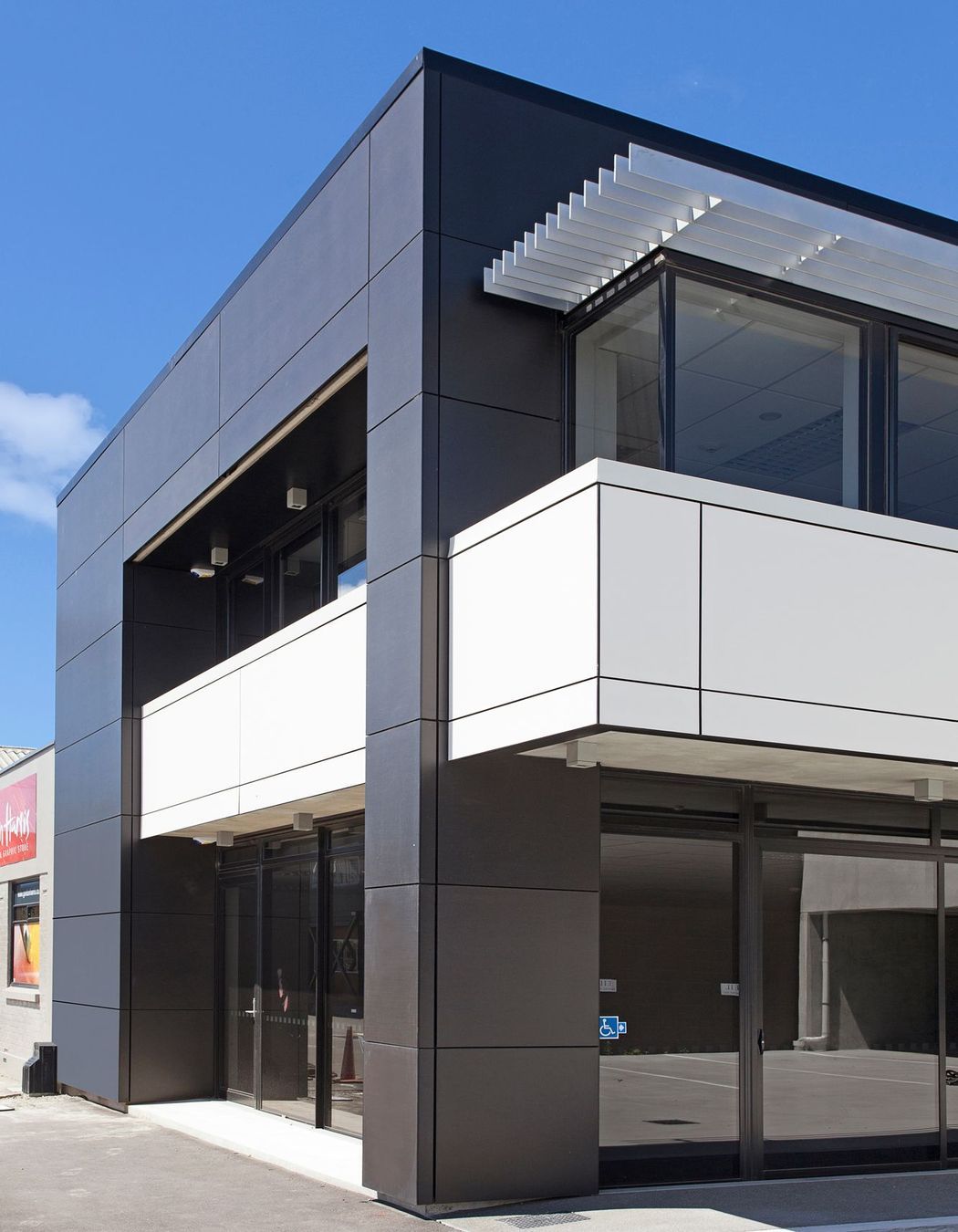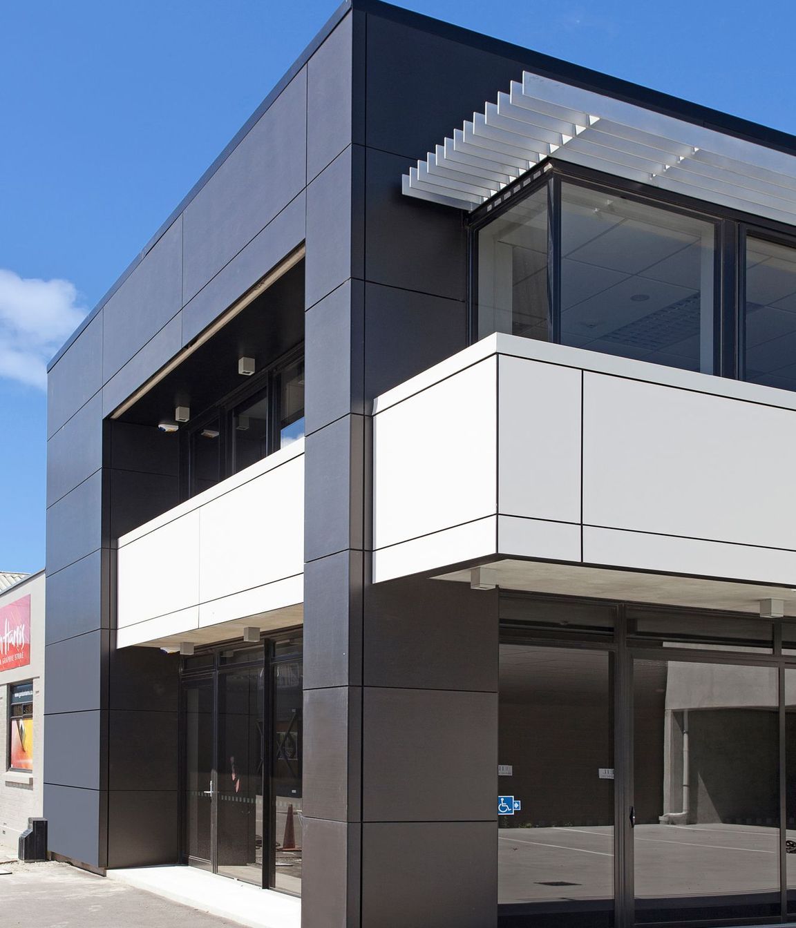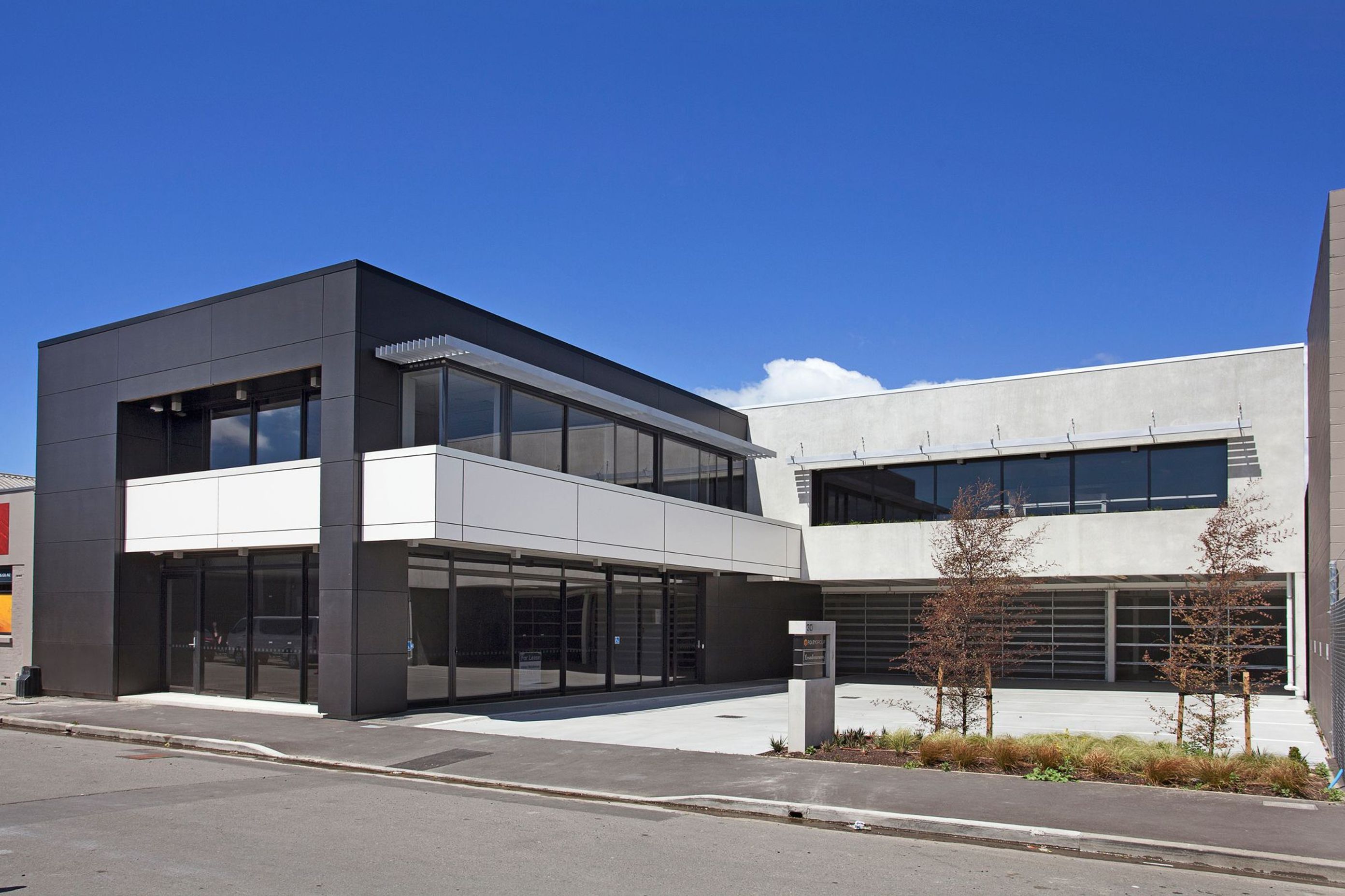 ArchiPro Project Summary - A contemporary two-story office block in central Christchurch, meticulously rebuilt to meet the latest structural codes following the Christchurch earthquakes, showcasing excellence in architecture, interior design, and landscape design.