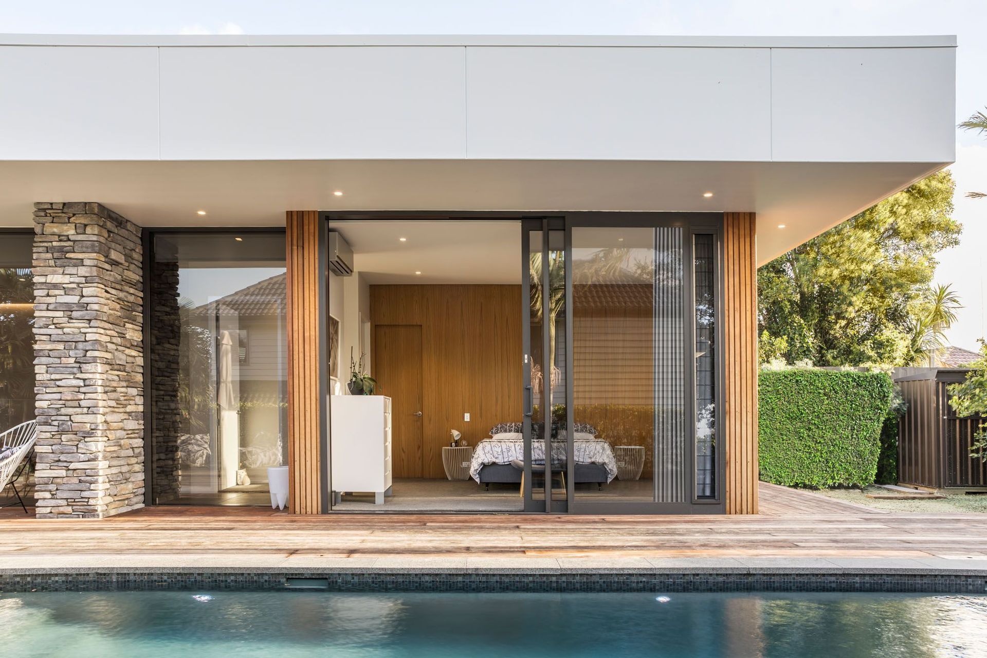 ArchiPro Project Summary - Thoughtfully designed contemporary addition to a 1950s home in Hillcrest, featuring a new master bedroom, kitchen, open plan living, and swimming pool, while preserving the original architectural style and enhancing outdoor connectivity.