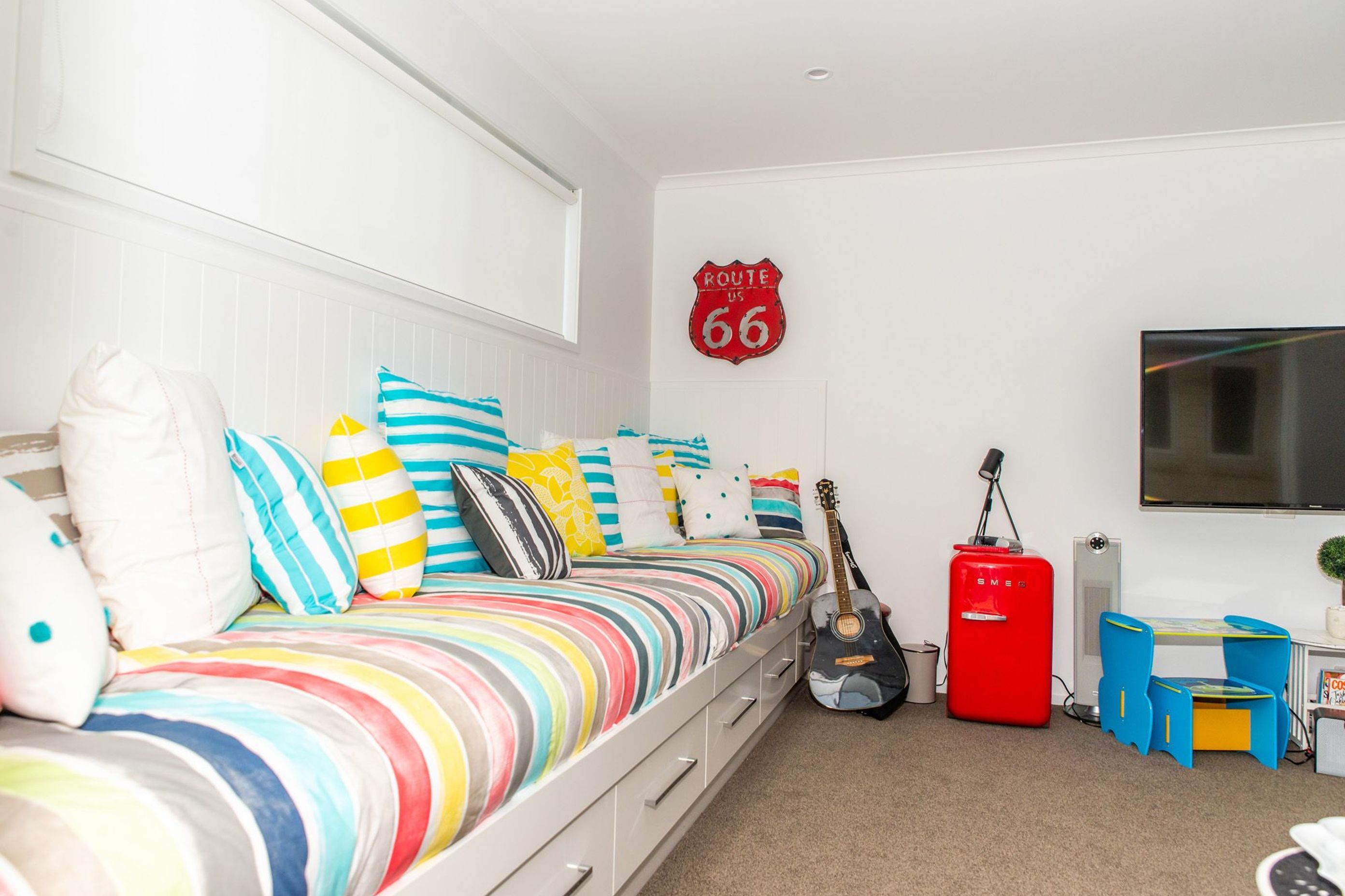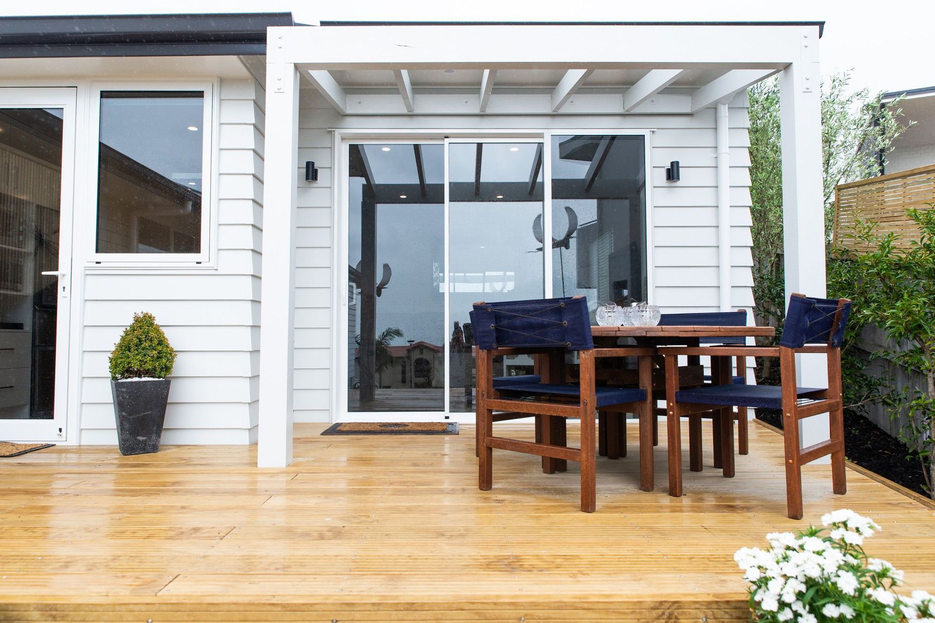 ArchiPro Project Summary - A beautifully designed minor dwelling in Spinnaker Bay, featuring 2 bedrooms, a lounge/dining area, and a kitchen, seamlessly connected to the main house, offering stunning views of Waiheke and a perfect retreat for guests.