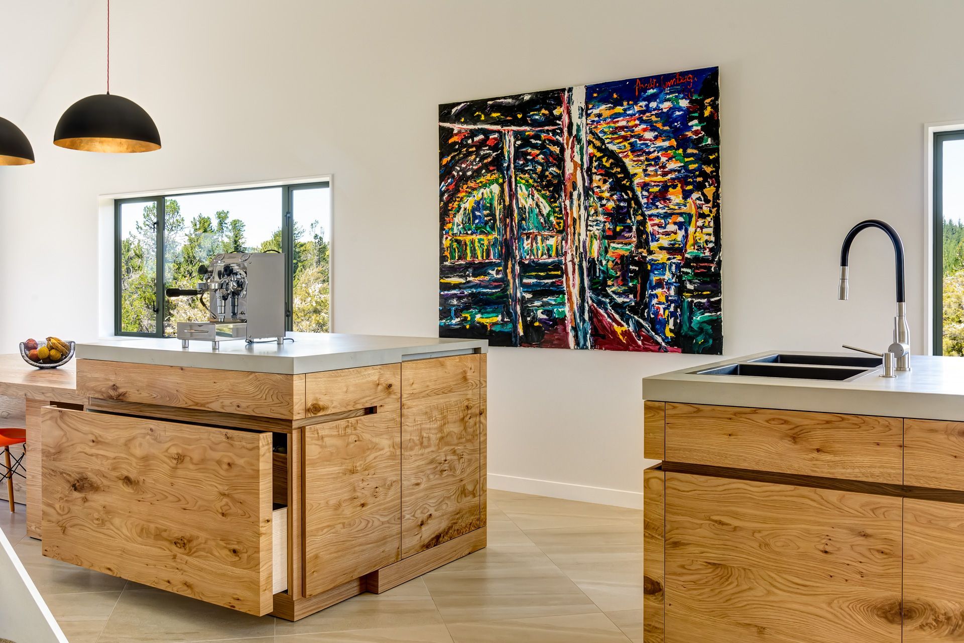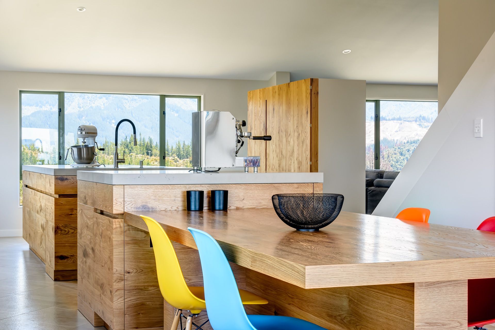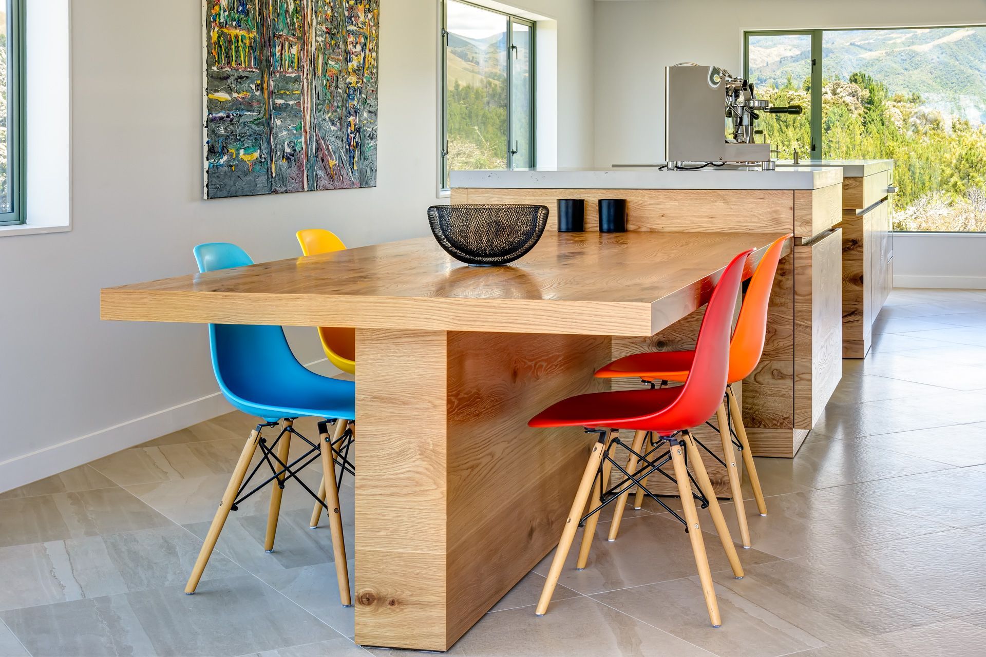 ArchiPro Project Summary - A transformative renovation of the Split Apple Eco Lodge, enhancing natural light and space with a stunning open kitchen design, featuring dual islands and integrated appliances, all while preserving breathtaking views of the Abel Tasman landscape.